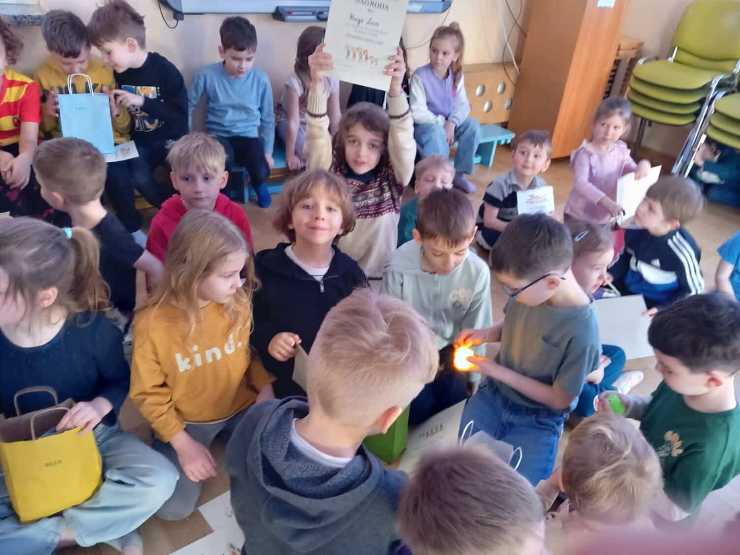 06.02.2025 w naszej grupie odbyło się rozstrzygnięcie konkursu plastycznego pt. ,,Gimnastyka z mamą i tatą” na które zostali zaproszeni uczniowie z szkoły podstawowej nr.9. Przedszkolaki zaśpiewały piosenkę i wyrecytowały przygotowany wiersz, a następnie odbyło się wręczenie dyplomów i nagród za udział w konkursie. Całość spotkania zakończyła wspólna zabawa przedszkolaków i uczniów przy muzyce.