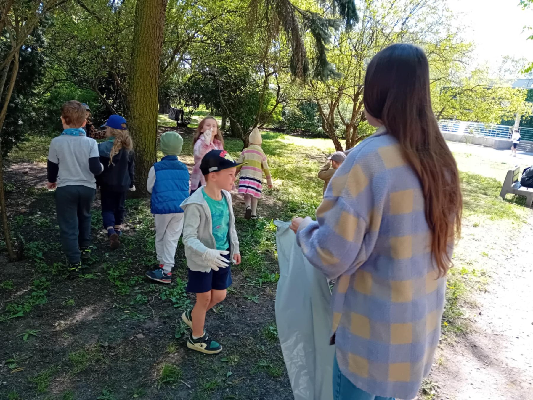 Dzieci pamiętały o zasadach segregacji odpadów, dbając o to, by każdy znaleziony śmieć trafił do odpowiedniego worka.