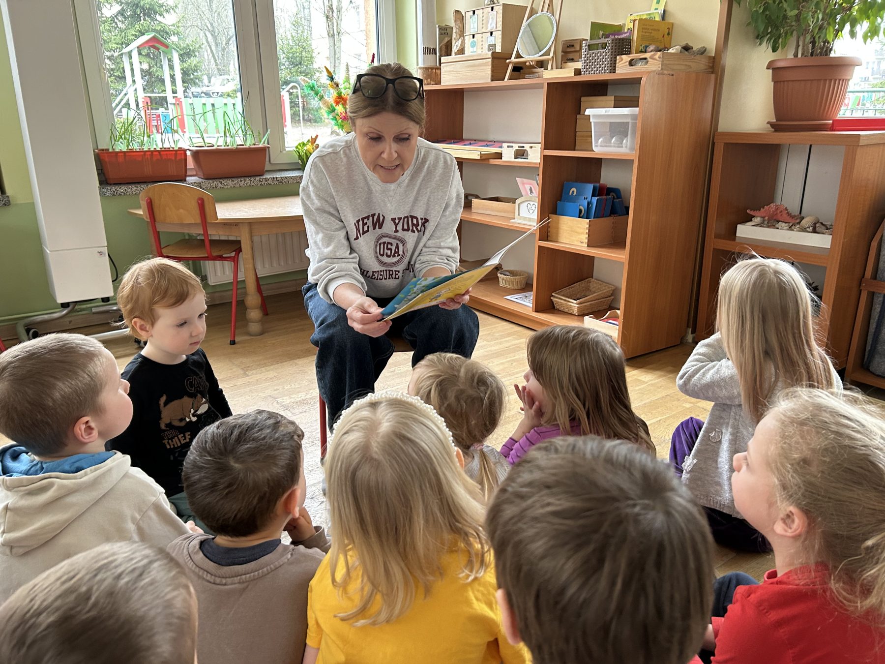 Przedszkolaki zawsze są ciekawe i zainteresowane, gdy przychodzą do nas członkowie rodzin koleżanek lub kolegów z grupy. Tym razem odwiedziła nas babcia Lidzi, która przeczytała dzieciom dwie książeczki o zwierzętach na wsi oraz przygody Kici Koci. Dzieci z zainteresowaniem wysłuchały opowiadań, podzieliły się ich treścią oraz zadawały pytania. Serdecznie dziękujemy za wizytę babci Lidii i czekamy na kolejne:)
