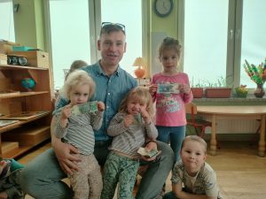Spotkanie z tatą Neli, Wiktorii i Poli – Opowieść opowieść o Afryce i jej egzotycznych zwierzętach. Pan Bogumił pokazał dzieciom na globusie, gdzie znajduje się kontynent, o którym opowiadał, a następnie z pomocą rzutnika przedstawił nagrania afrykańskich zwierząt. Po obejrzeniu filmów dzieci mogły zobaczyć i dotknąć banknoty – dolary amerykańskie i randy.