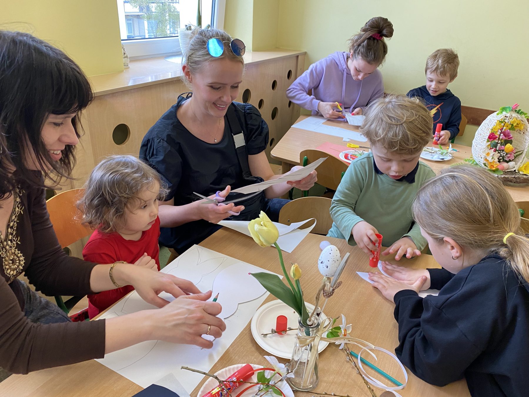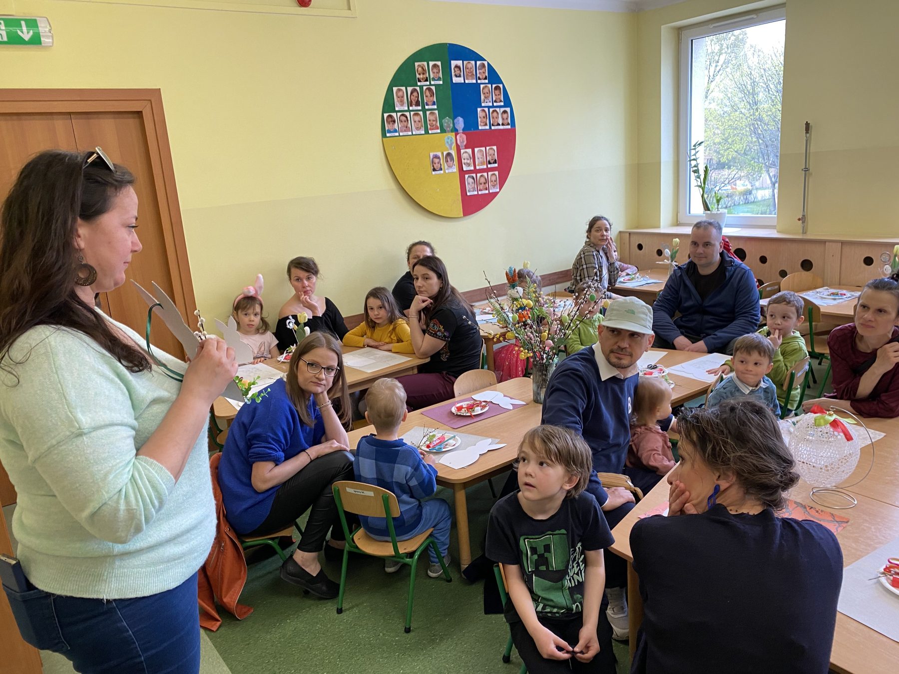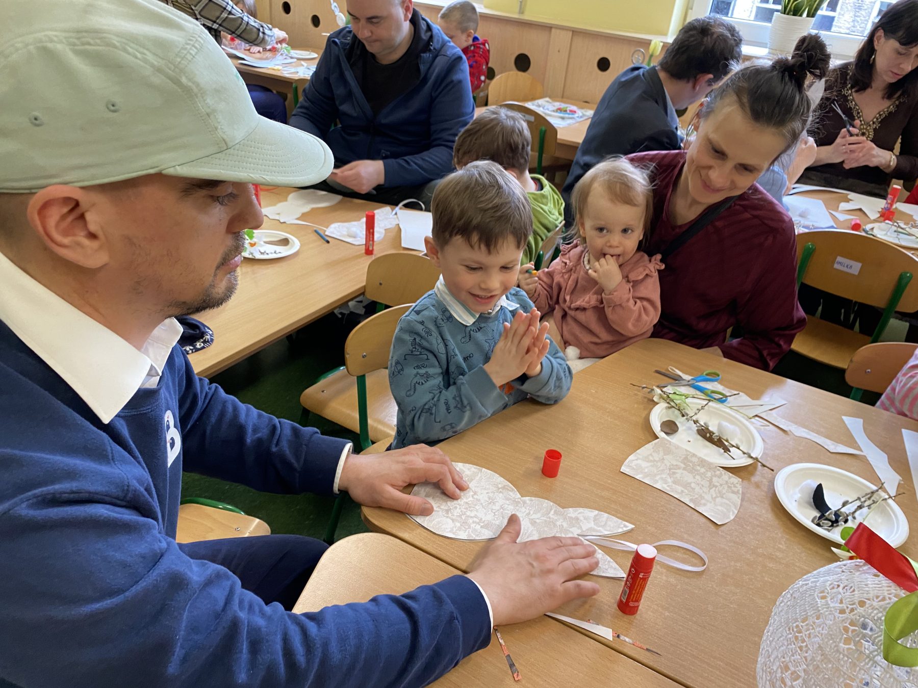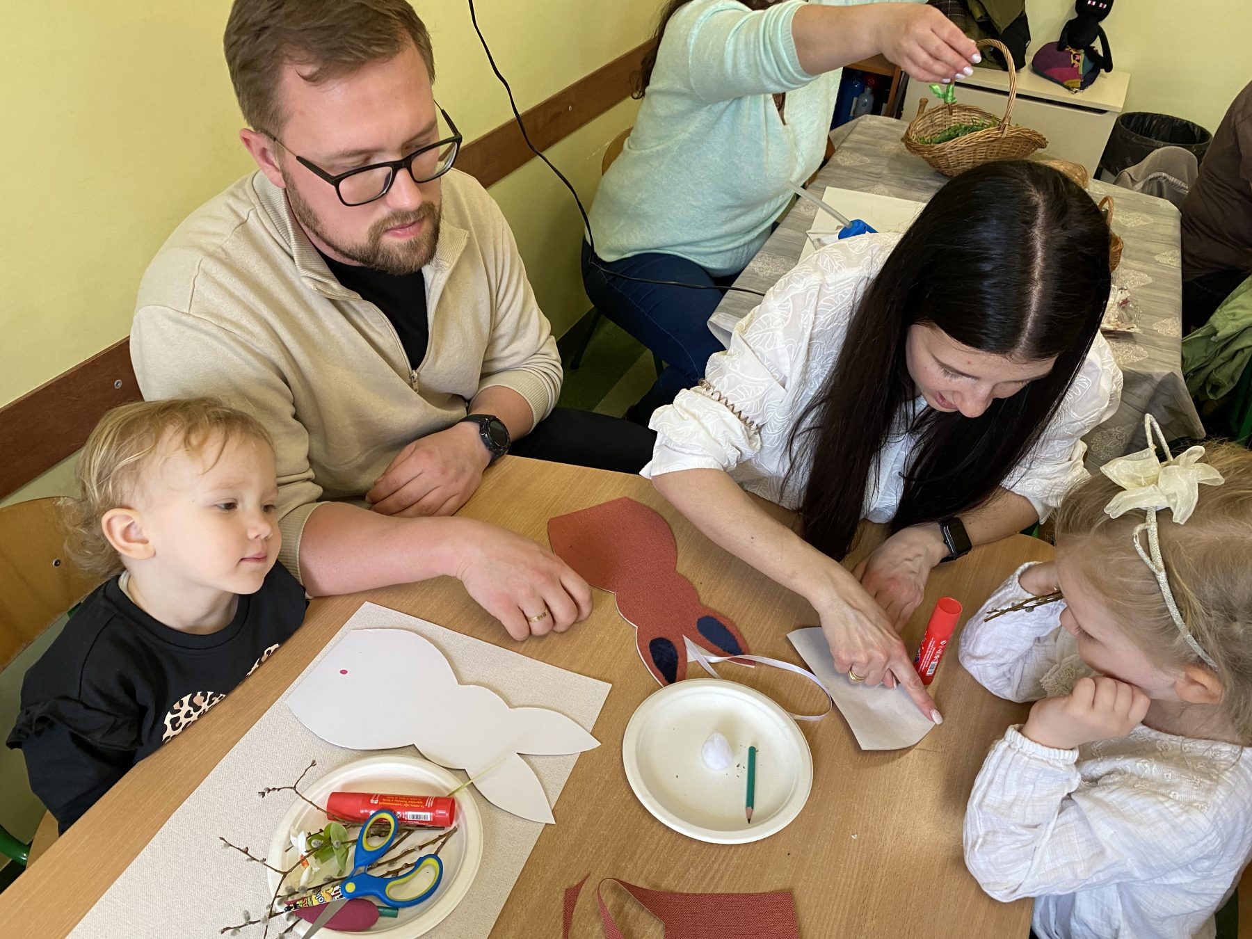 Z radością dzielimy się fotorelacją z naszych wielkanocnych warsztatów z udziałem rodziców, które odbyły się 16 kwietnia w grupie V! Podczas wspólnego spotkania dzieci wraz z najbliższymi tworzyły urocze zajączki wielkanocne, wykorzystując różnorodne materiały – m.in. próbki tapet, jajka styropianowe, sztuczne kwiaty i gałązki bukszpanu oraz prawdziwe bazie. Zapanował prawdziwie rodzinny klimat – pełen kolorów, śmiechu i wielkanocnych inspiracji! Zobaczcie, jak wyglądała ta wyjątkowa chwila pełna ciepła i twórczej zabawy!