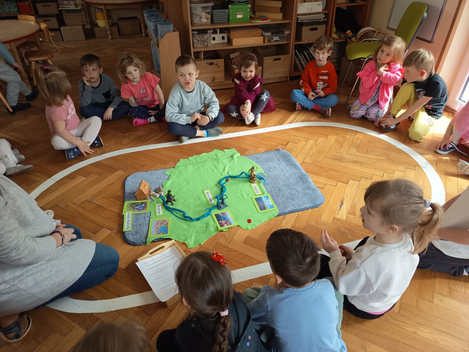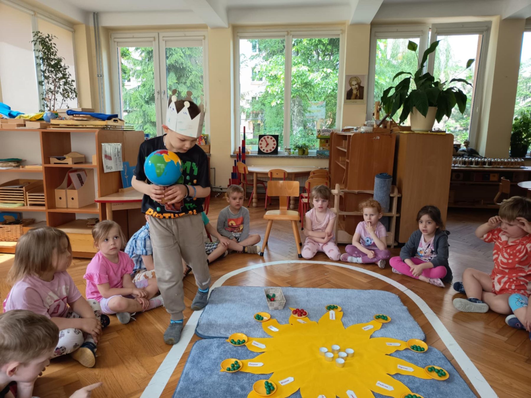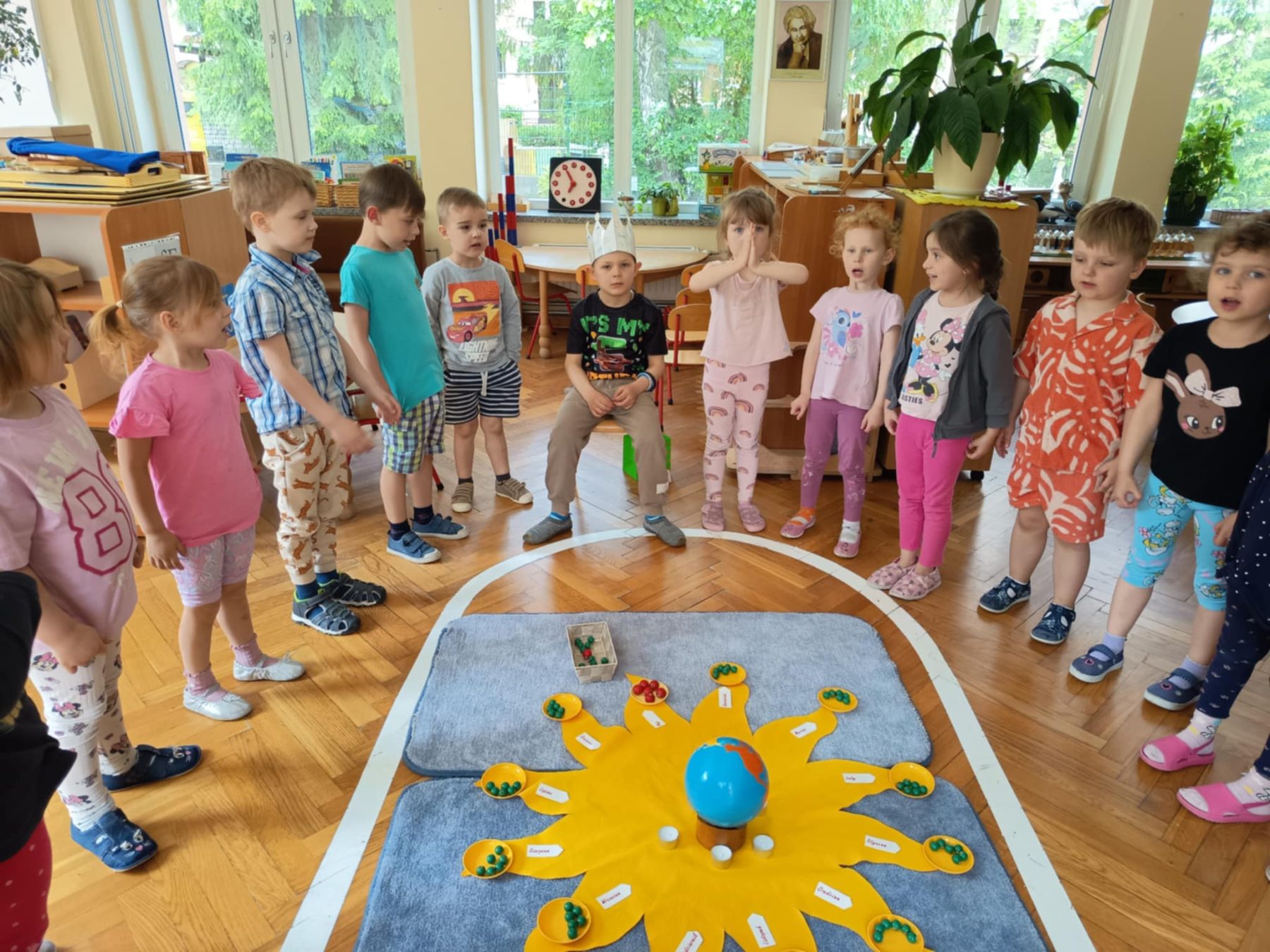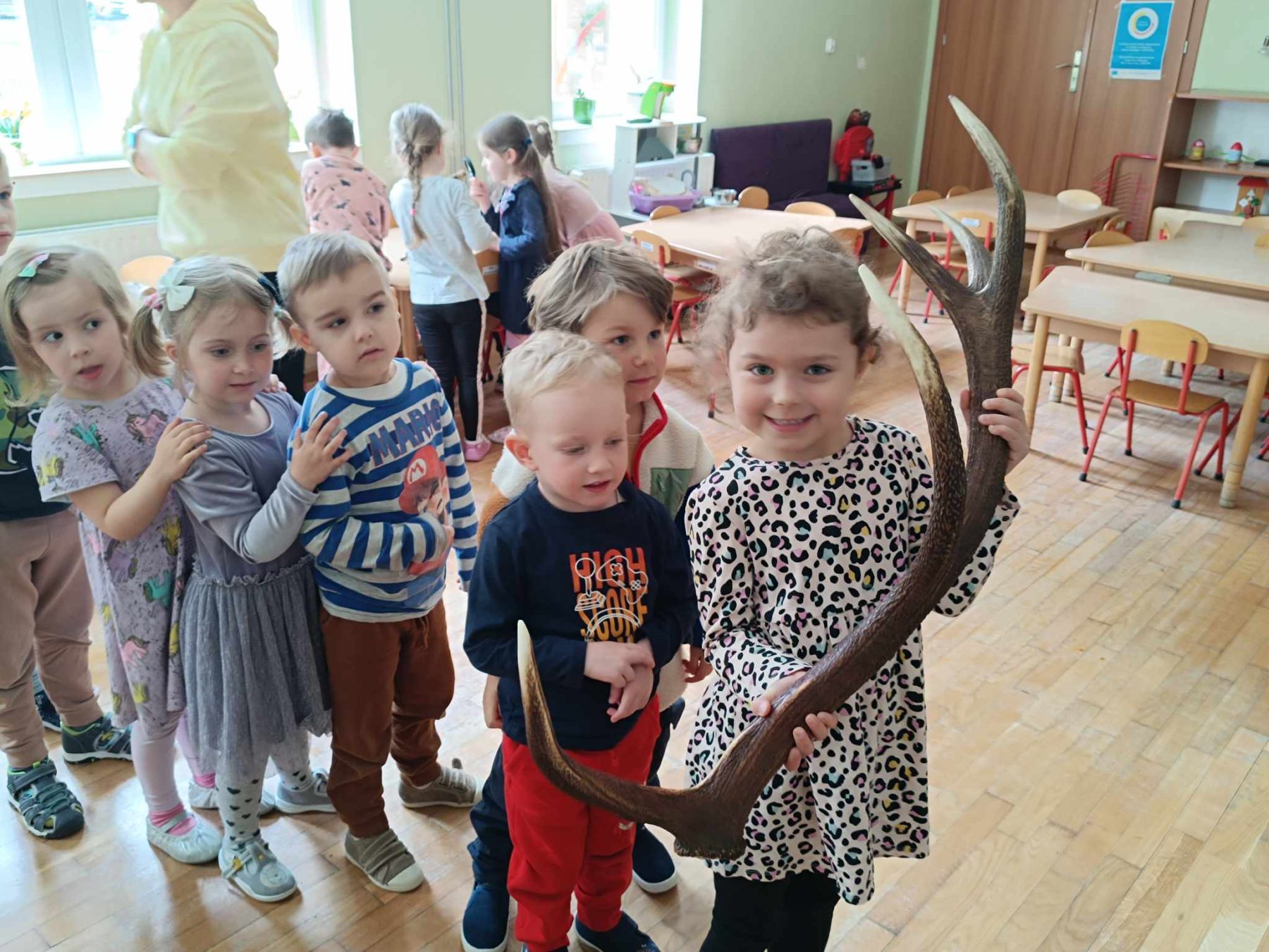 Maj w naszej grupie miną jak zwykle szybko. Zaczęliśmy od bardzo ważnych świąt. Na wycieczce w wojsku mama Sary opowiadała nam o symbolach narodowych, a także dowiedzieliśmy się co to konstytucja. Mama Oliwki zaprosiła nas do Miejskiej Komendy Policji na zajęcia o bezpieczeństwie dzieci na drodze. W ogródku naszej grupy posadziliśmy pierwsze kwiaty od Czarka. Pielęgnujemy je, podlewamy i obserwujemy. Świętowaliśmy urodziny Stefana i Kacpra. Odwiedziła nas Pani, która opowiadała ciekawe historie o lesie i jego mieszkańcach.