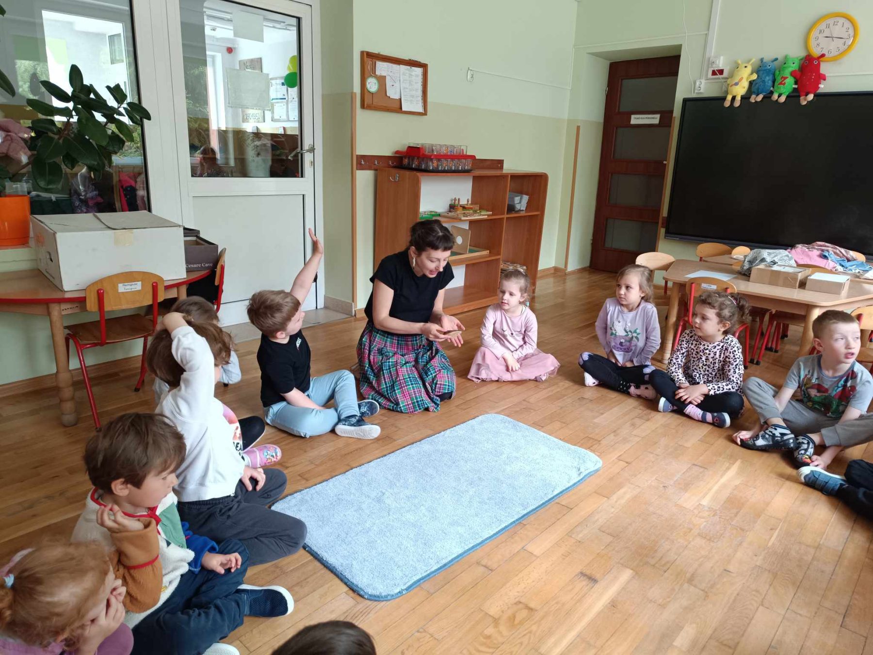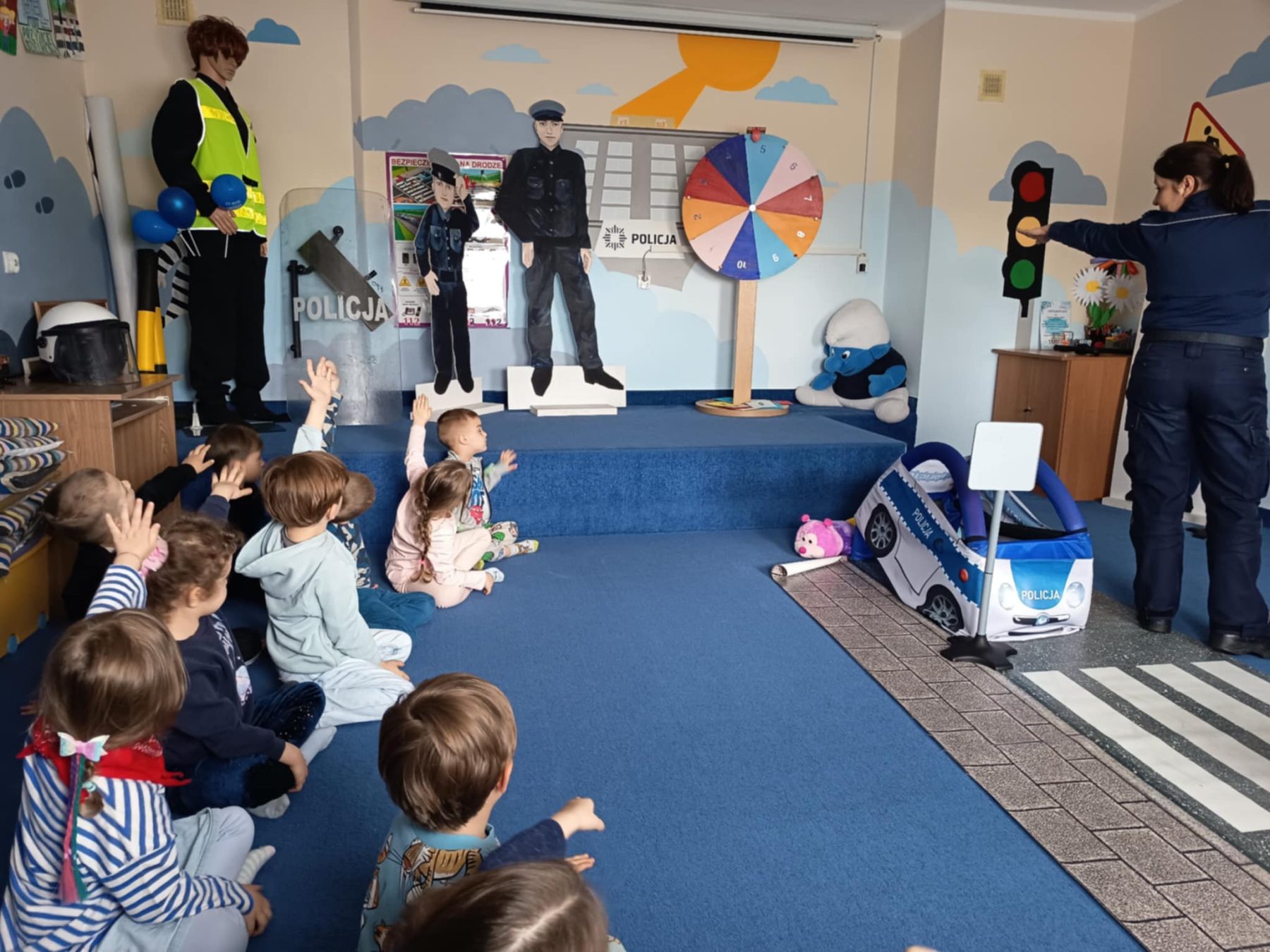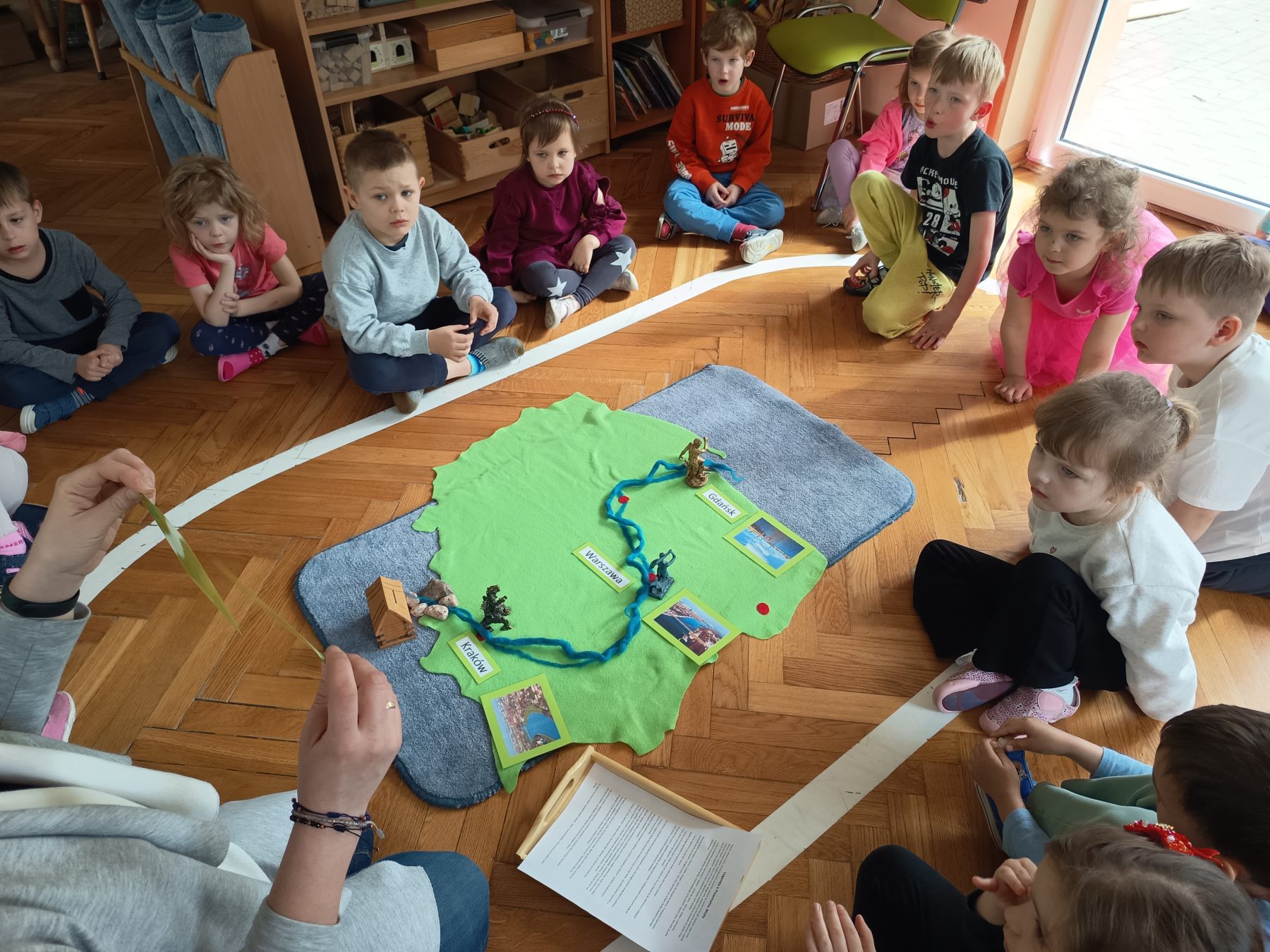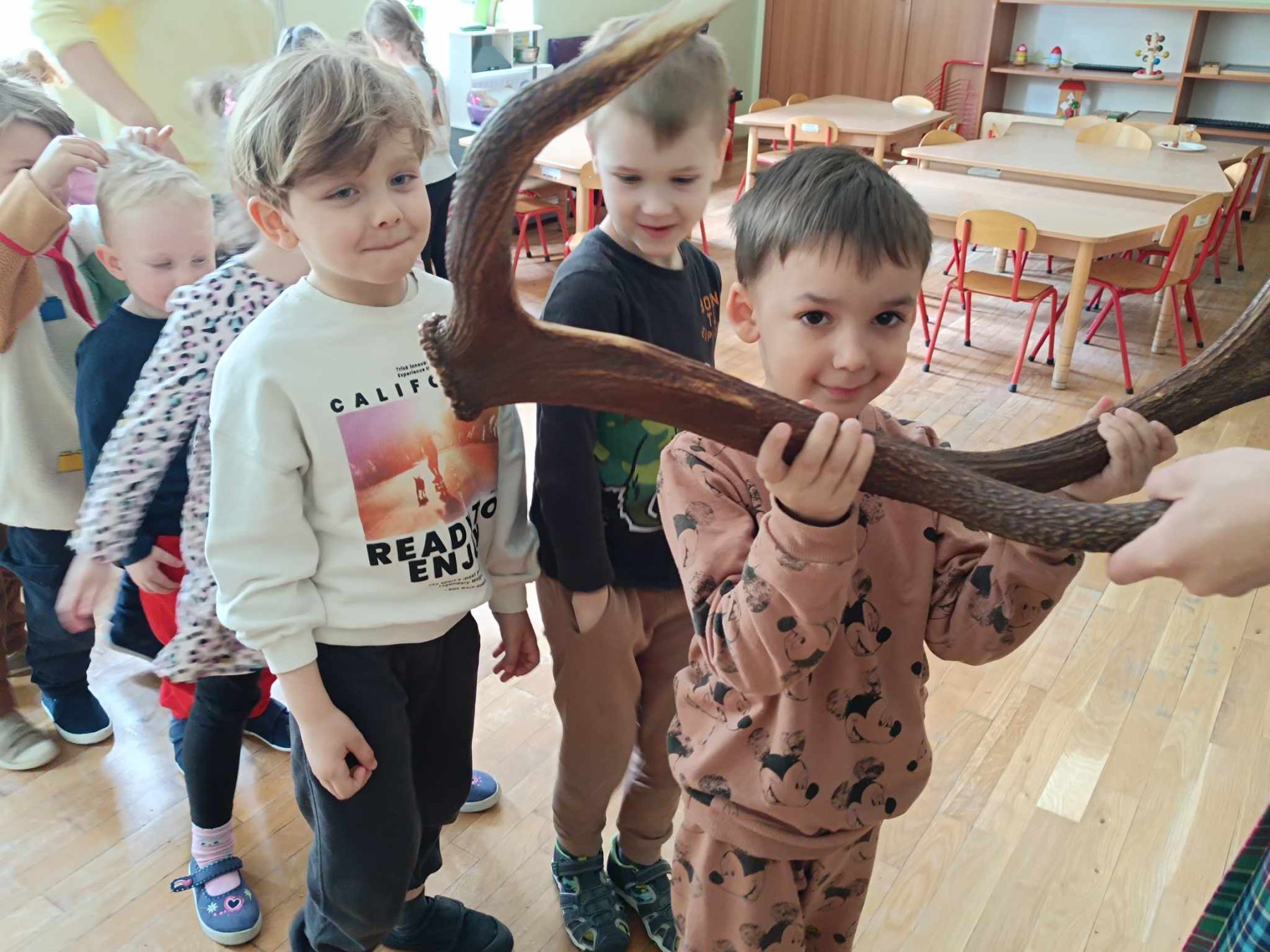 Maj w naszej grupie miną jak zwykle szybko. Zaczęliśmy od bardzo ważnych świąt. Na wycieczce w wojsku mama Sary opowiadała nam o symbolach narodowych, a także dowiedzieliśmy się co to konstytucja. Mama Oliwki zaprosiła nas do Miejskiej Komendy Policji na zajęcia o bezpieczeństwie dzieci na drodze. W ogródku naszej grupy posadziliśmy pierwsze kwiaty od Czarka. Pielęgnujemy je, podlewamy i obserwujemy. Świętowaliśmy urodziny Stefana i Kacpra. Odwiedziła nas Pani, która opowiadała ciekawe historie o lesie i jego mieszkańcach.