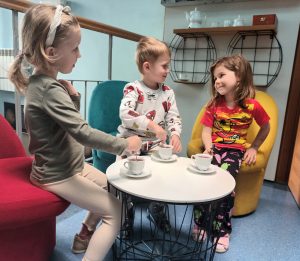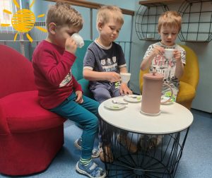 W Przedszkolu Montessori rozwój społeczny następuje naturalnie. Dzieci uczą się żyć w społeczeństwie i dla społeczeństwa. Grupy zróżnicowane wiekowo stanowią odwzorowanie naturalnego środowiska społecznego. Dają też możliwość odnalezienia się w różnych rolach społecznych. Dzieci młodsze naturalnie czerpią z obecności dzieci starszych, ale ogromną korzyść wynoszą też dzieci starsze. Możliwość pomocy młodszemu koledze, nauczenia go czegoś co już się umie buduje osobowość, wzmacnia wiarę we własne siły, budzi wrażliwość na potrzeby innych – to jest pełna integracja. W Przedszkolu dzieci uczą się działania bez przemocy oraz pokojowego rozwiązywania konfliktów. W czasie prac projektowych uczą się jak przewodzić, a także jak być częścią zespołu – to całkowite zaprzeczenie wychowania do bezwzględnej rywalizacji. Nie są porównywane, oceniane, nagradzane. Podejmują aktywność dla własnej satysfakcji, czerpią radość z własnych osiągnięć, a nie z porażek innych.