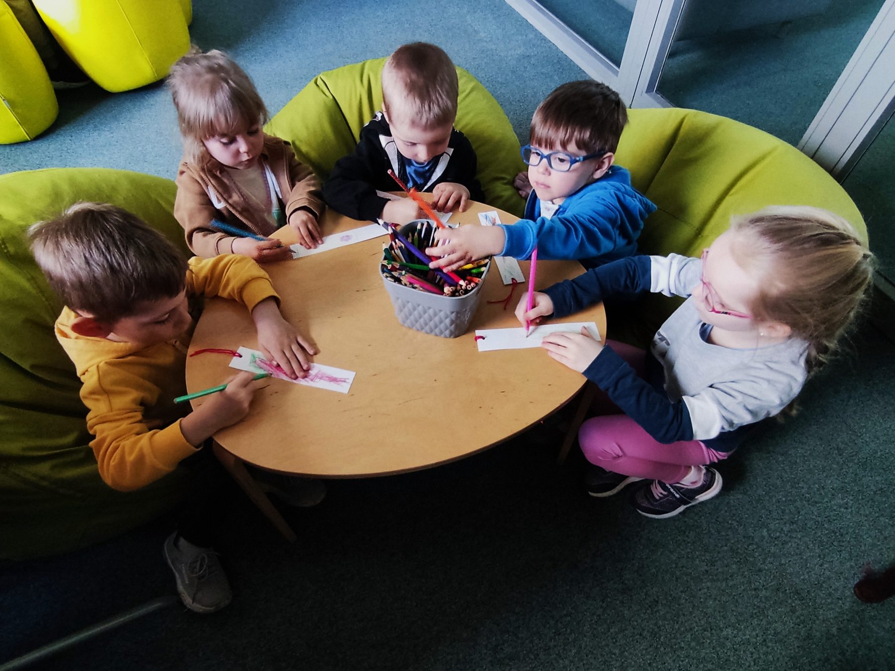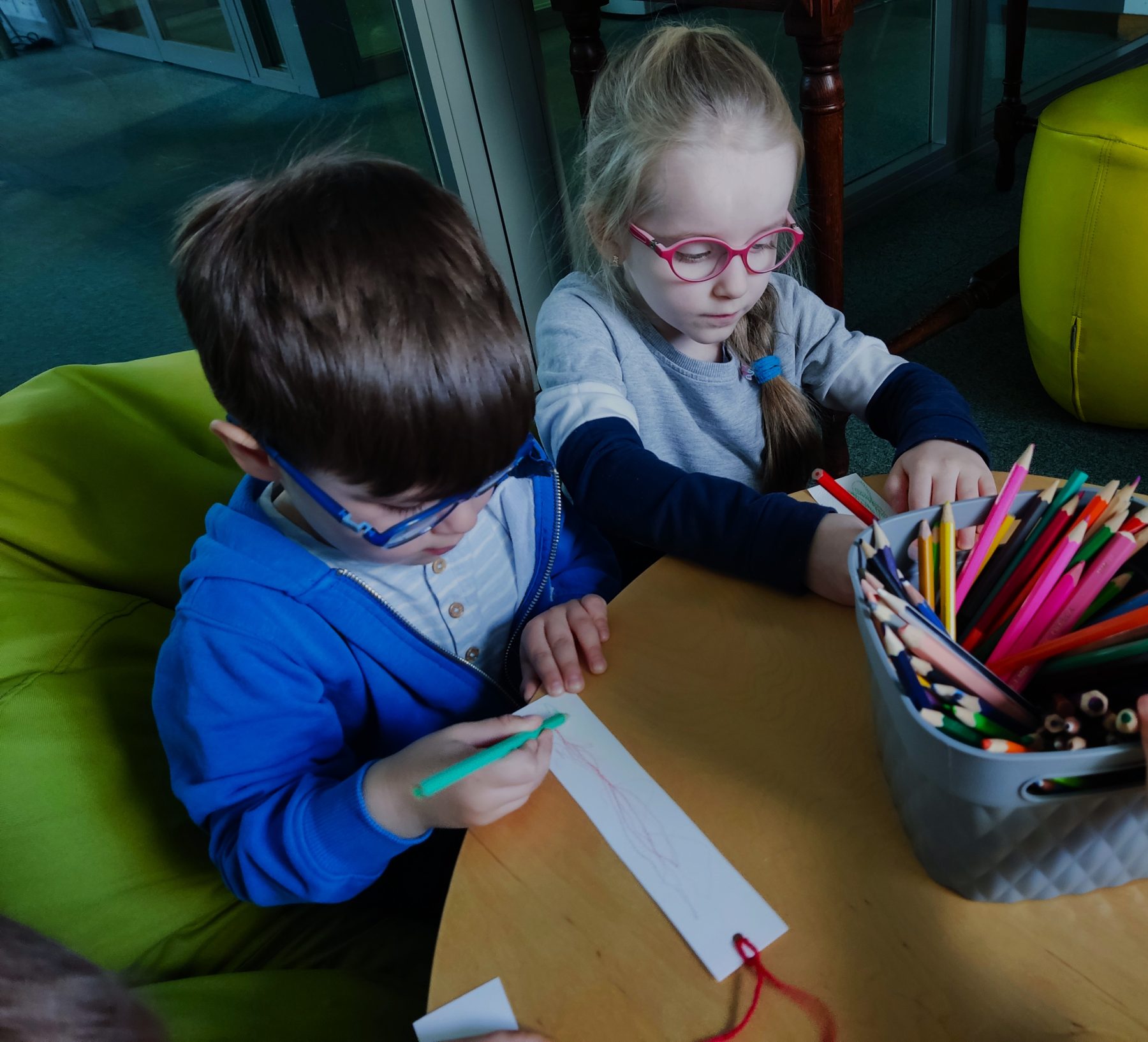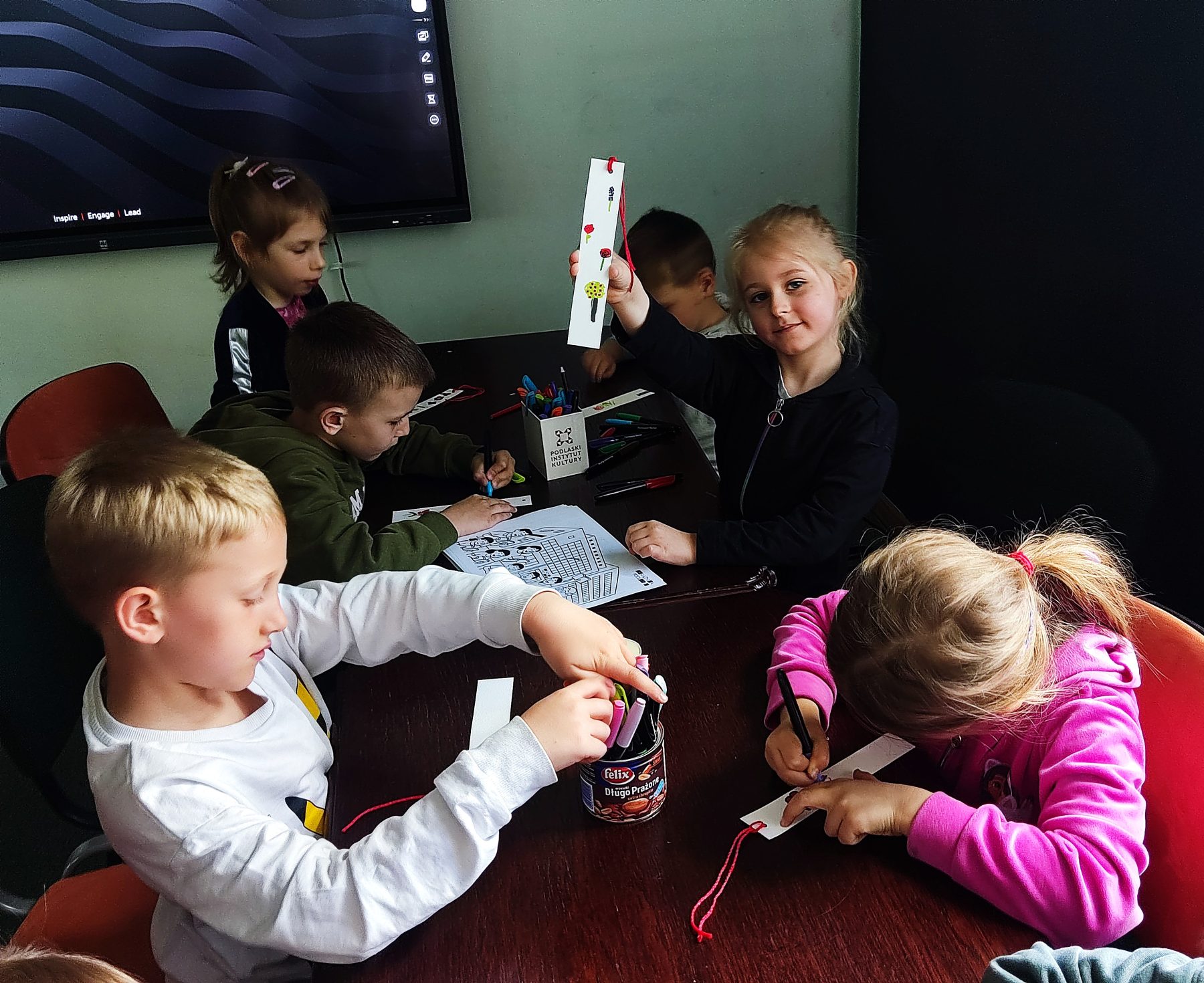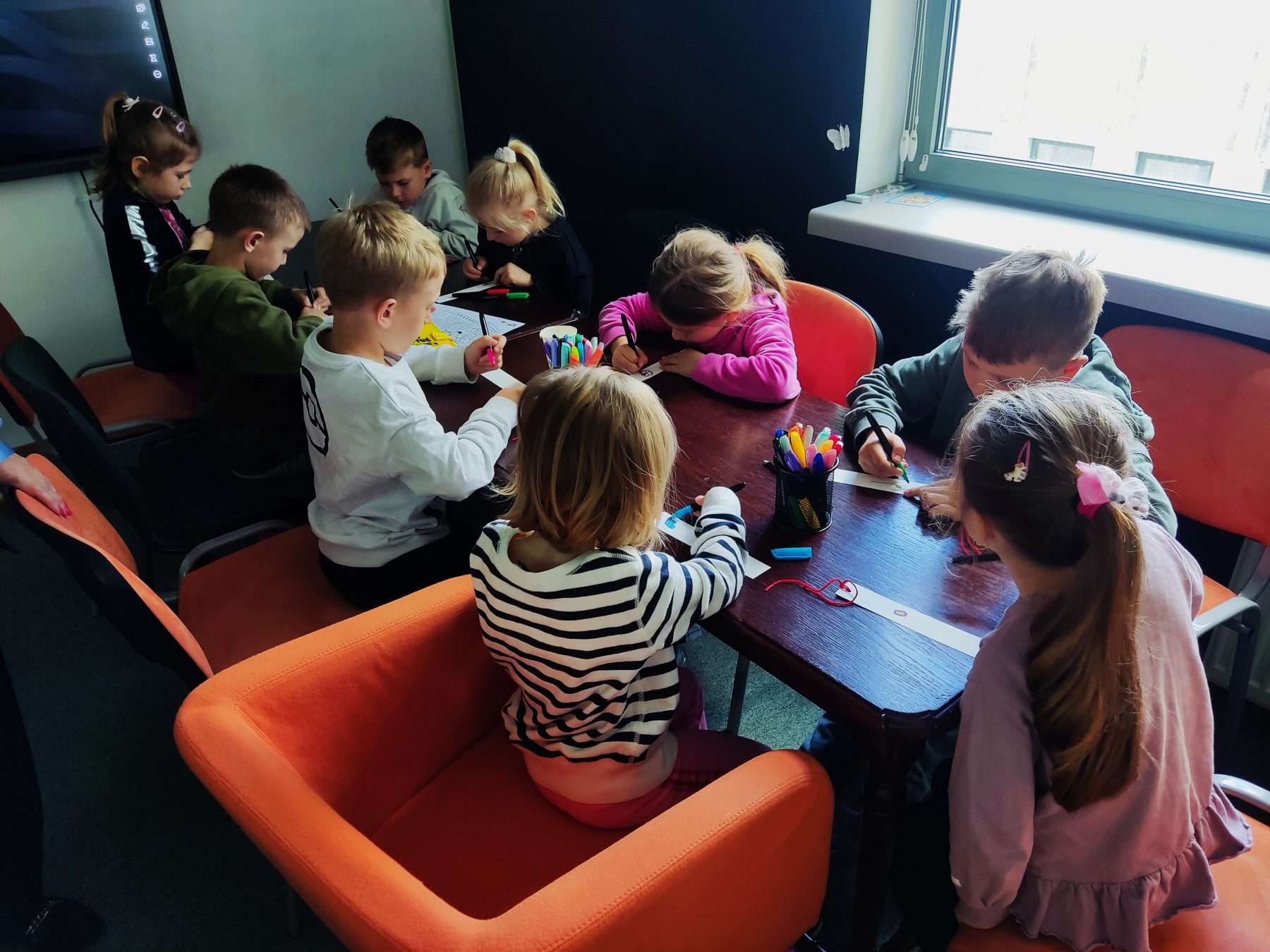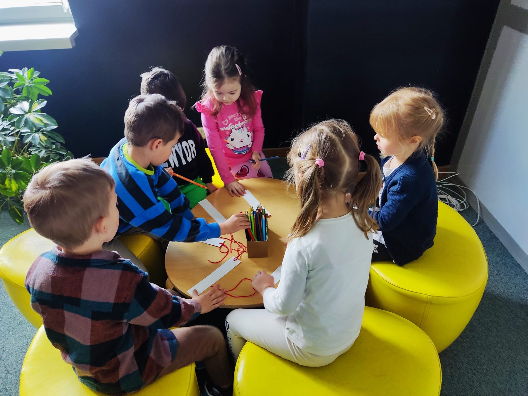 Dzieci z grupy II odbyły wycieczkę do Książnicy Podlaskiej, gdzie uczestniczyły w zajęciach czytelniczych. Na początku spotkania przedszkolaki wysłuchały słuchowiska pt. „Rozalka i kwiaty”, które wzbudziło ich duże zainteresowanie oraz wywołało wiele emocji. Po zakończeniu opowieści dzieci chętnie rozmawiały o jej treści, dzieliły się swoimi przemyśleniami oraz odpowiadały na pytania dotyczące historii Rozalki. Następnie przedszkolaki wykonały zakładki do książek, wykazując się dużą kreatywnością i zaangażowaniem. Serdecznie dziękujemy Pani prowadzącej za miłe spotkanie oraz ciekawe zajęcia czytelnicze.
