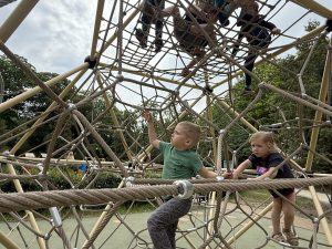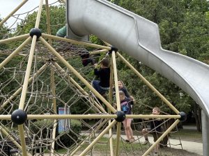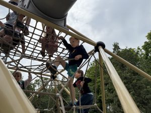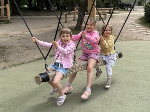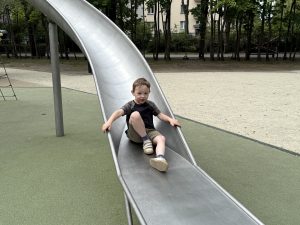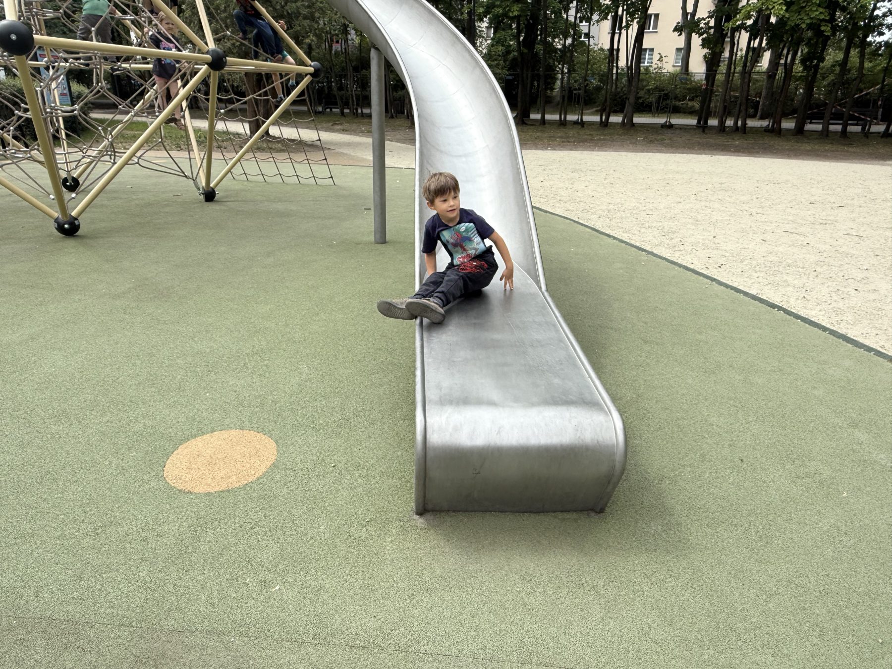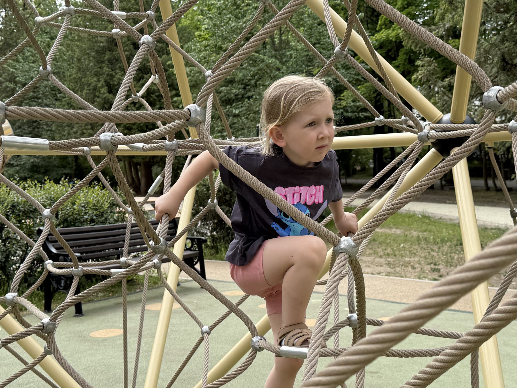 Maluchy z ogromnym entuzjazmem korzystały z atrakcji – zjeżdżalni, huśtawek i kolorowych konstrukcji do wspinaczki. Radości nie było końca! Spacer był także świetną okazją do obserwowania przyrody i rozmów o zasadach bezpiecznego zachowania się w przestrzeni publicznej.