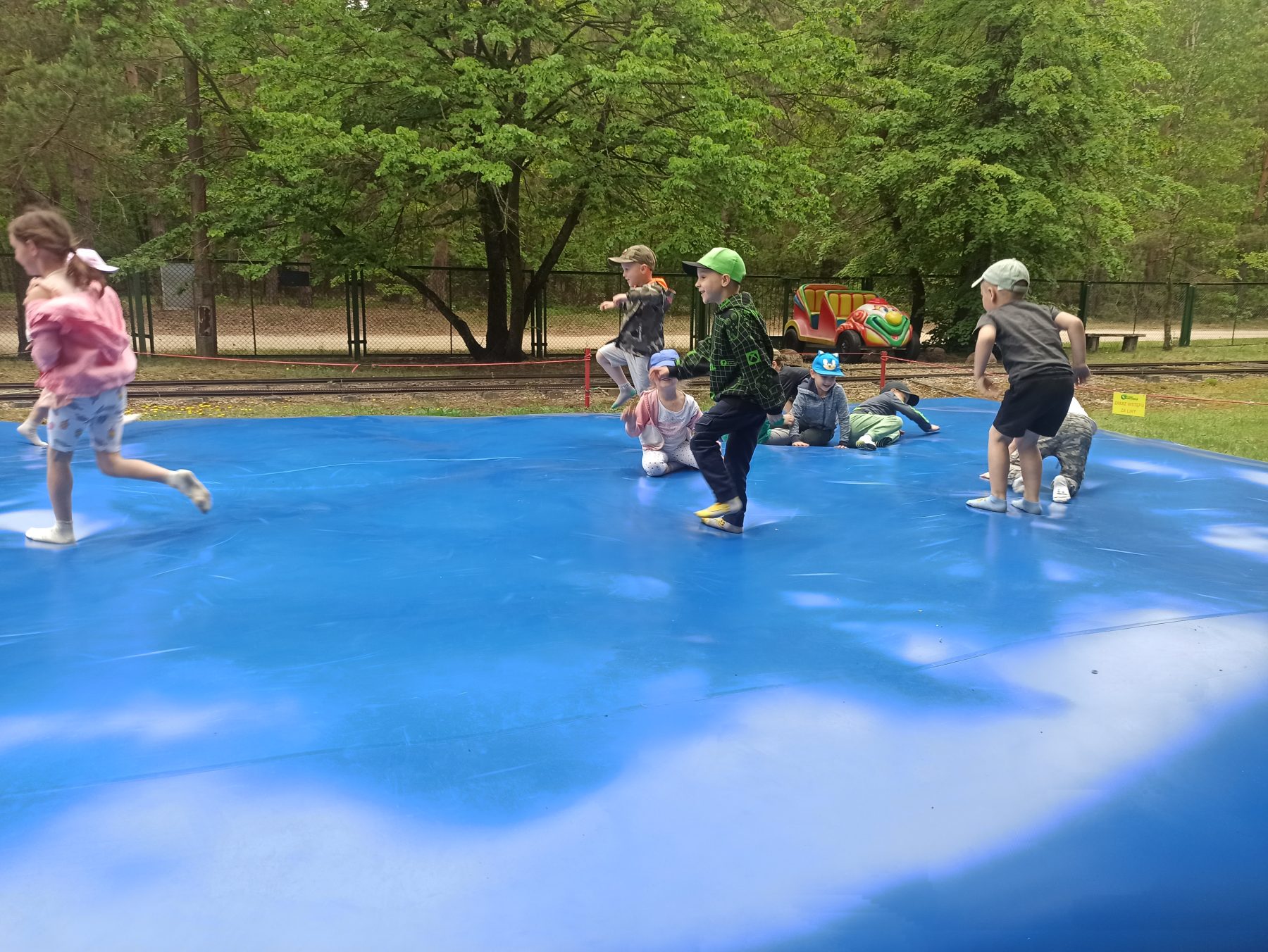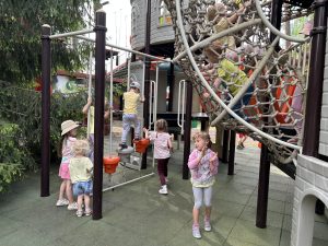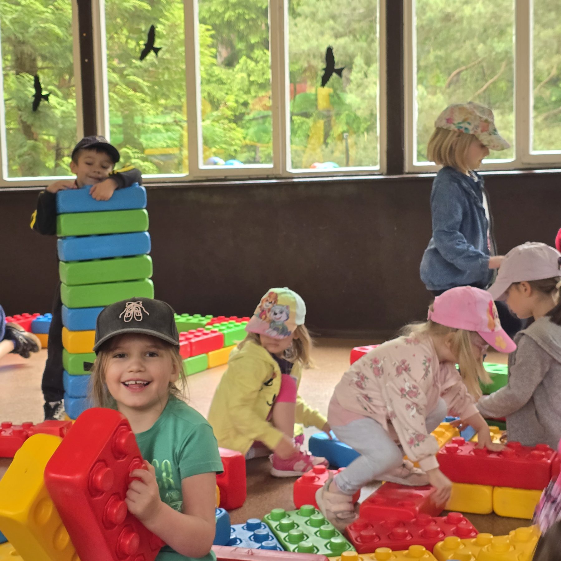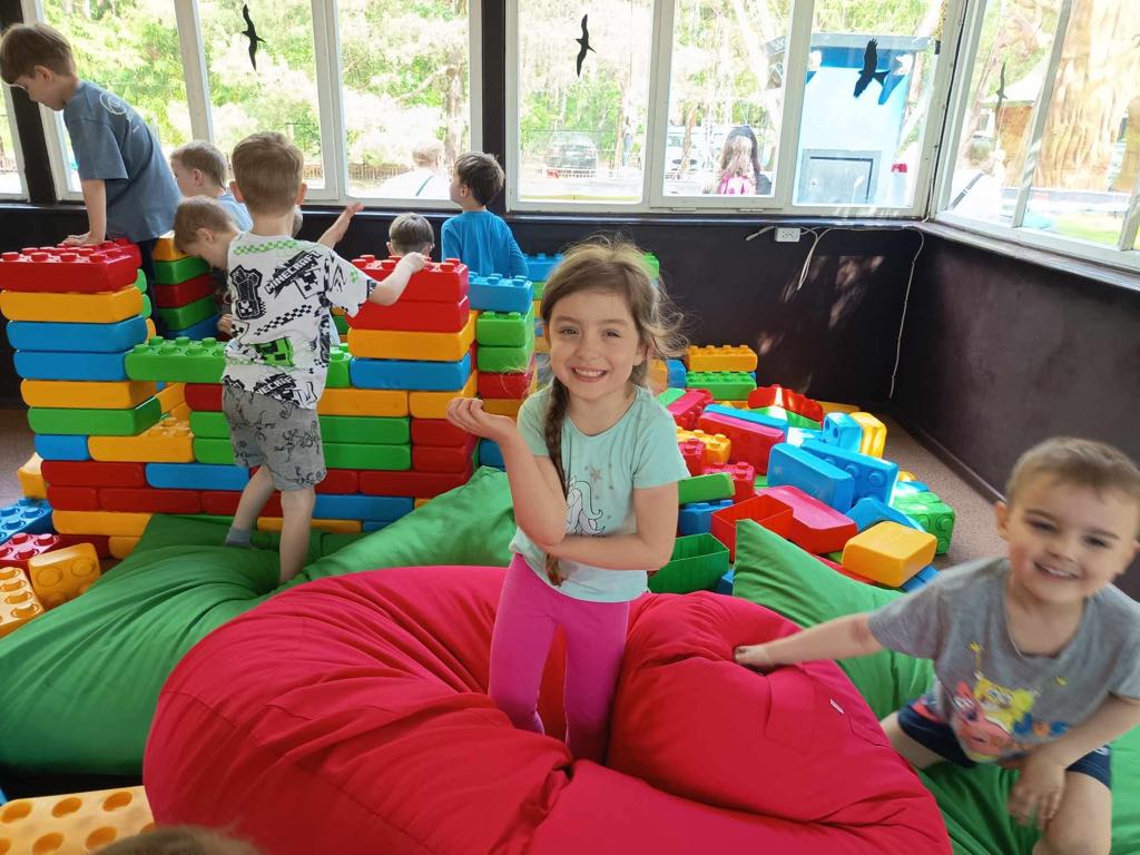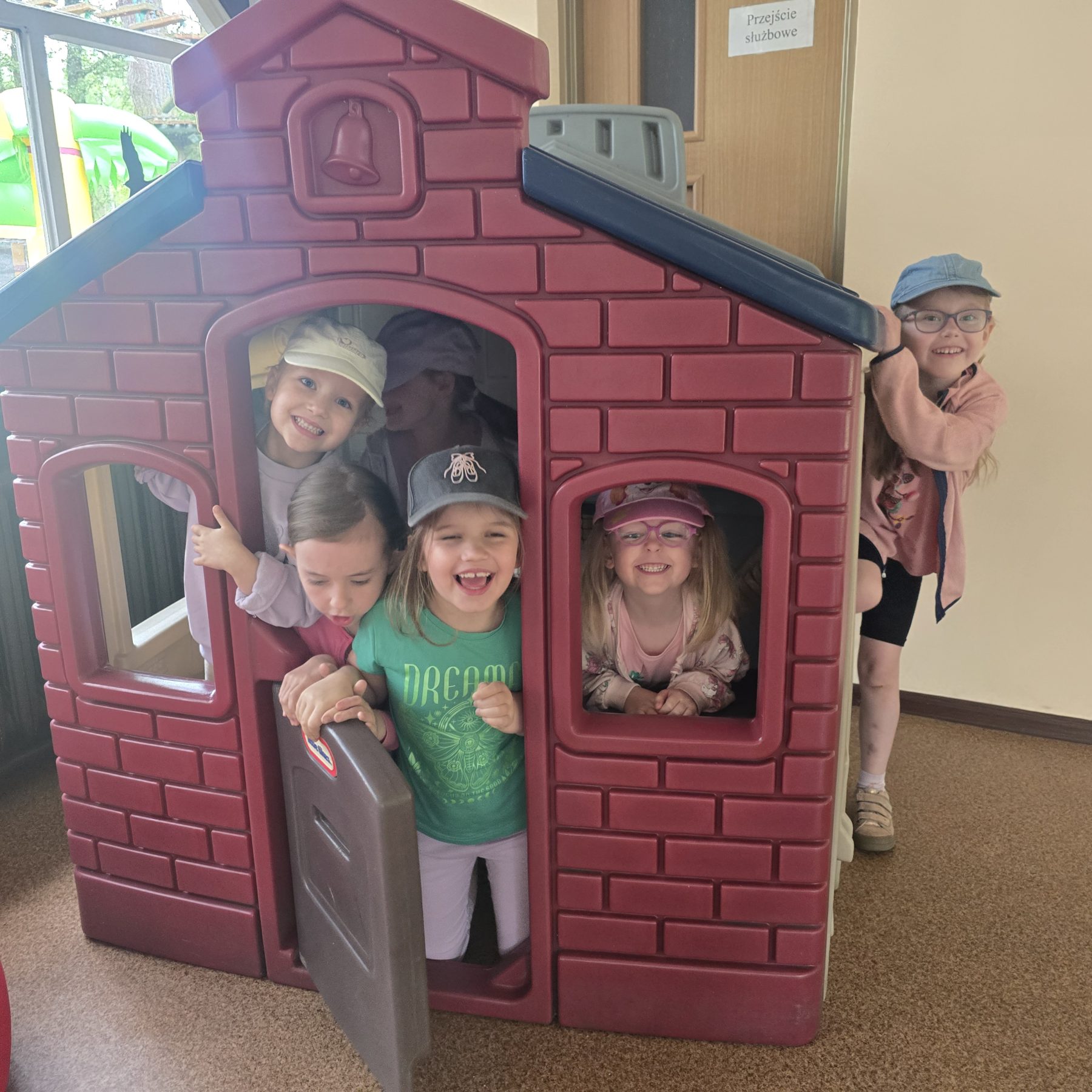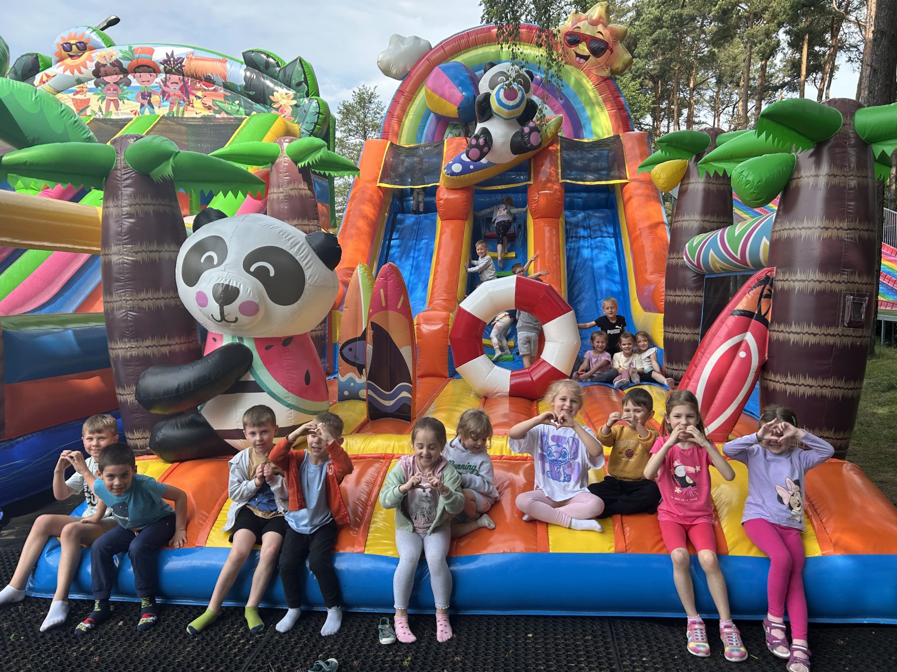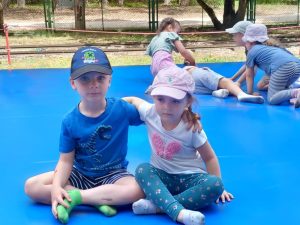 Dzieci świetnie się bawiły, korzystając z licznych atrakcji: Zamku – gdzie mogły poczuć się jak mali rycerze i księżniczki, odkrywając jego zakamarki, Trasy w siatkach – rozwijającej sprawność i koordynację,Trampolin – które dostarczyły mnóstwo radości i energicznych skoków, Dmuchańców – pełnych śmiechu i zabawy, Klockarni – miejsca, gdzie kreatywność nie znała granic! Nie zabrakło również zabaw integracyjnych, które sprzyjały współpracy i wzmacniały przedszkolne przyjaźnie.
