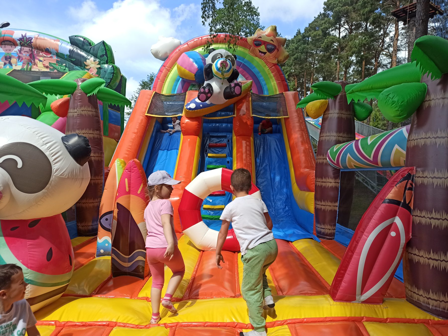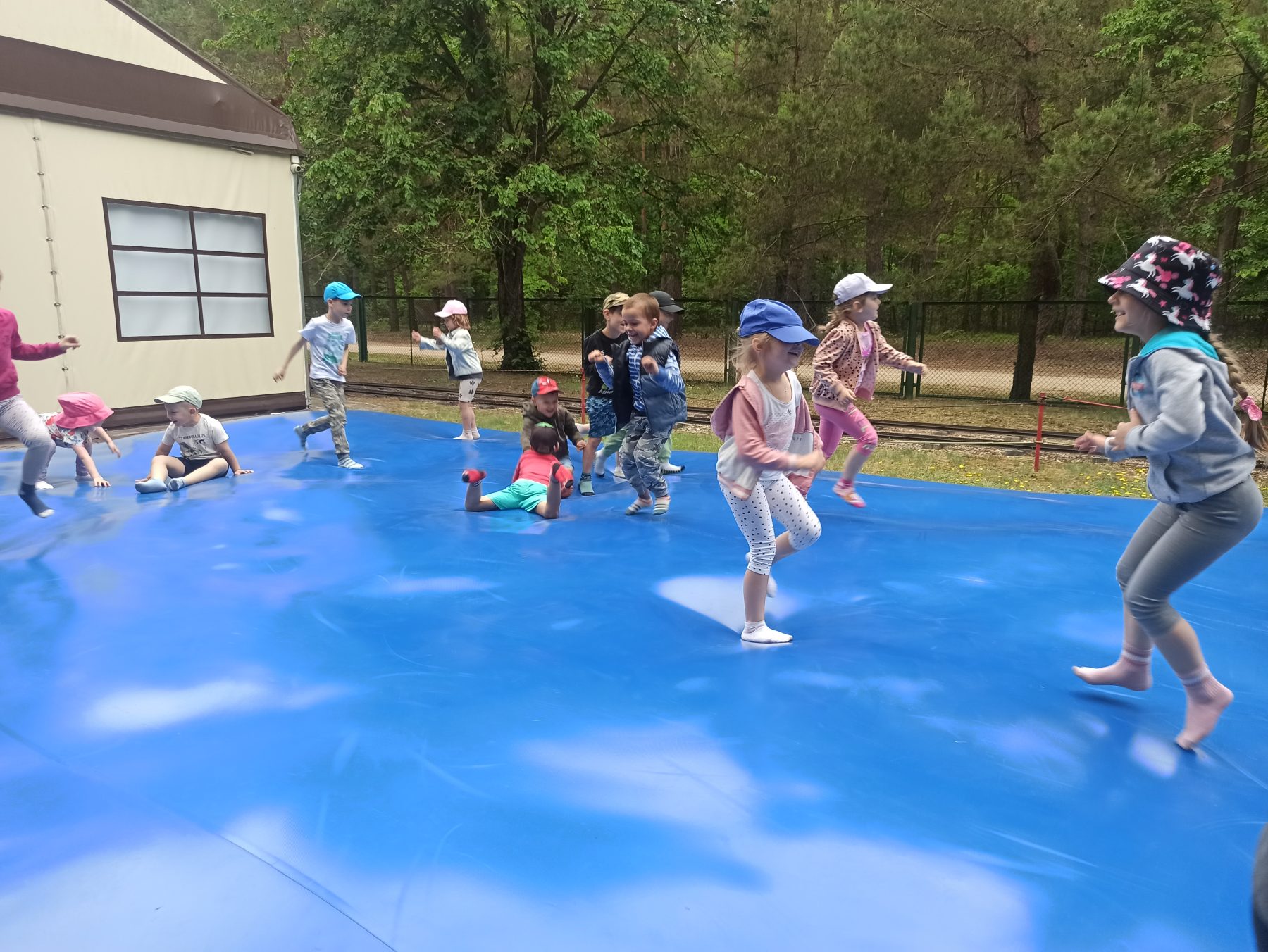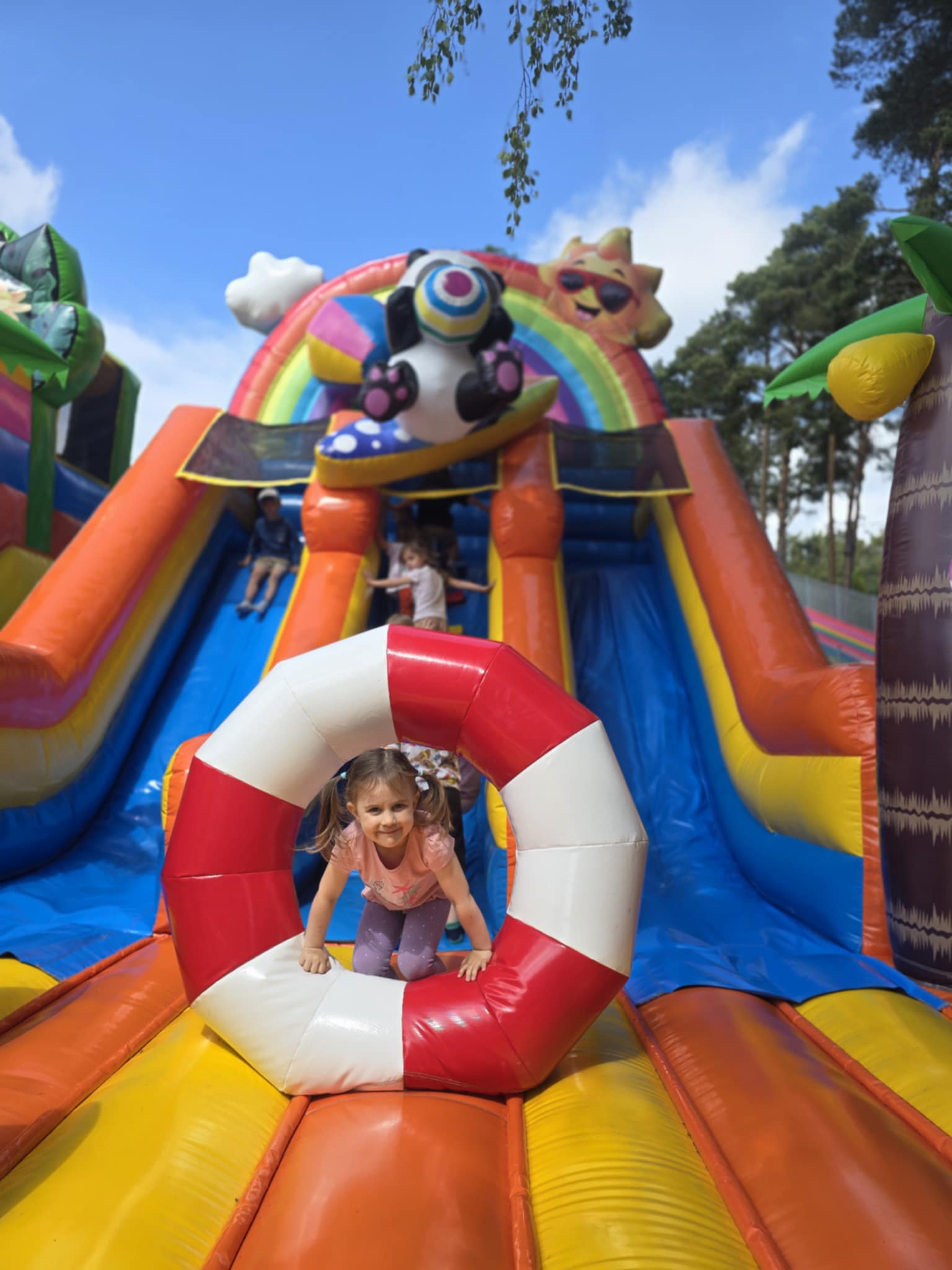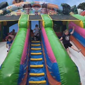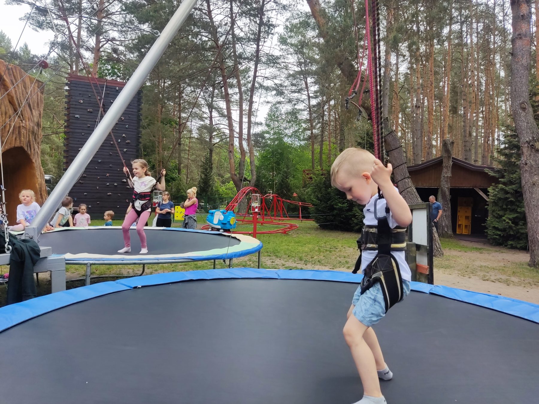 Dzieci świetnie się bawiły, korzystając z licznych atrakcji: Zamku – gdzie mogły poczuć się jak mali rycerze i księżniczki, odkrywając jego zakamarki, Trasy w siatkach – rozwijającej sprawność i koordynację,Trampolin – które dostarczyły mnóstwo radości i energicznych skoków, Dmuchańców – pełnych śmiechu i zabawy, Klockarni – miejsca, gdzie kreatywność nie znała granic! Nie zabrakło również zabaw integracyjnych, które sprzyjały współpracy i wzmacniały przedszkolne przyjaźnie.