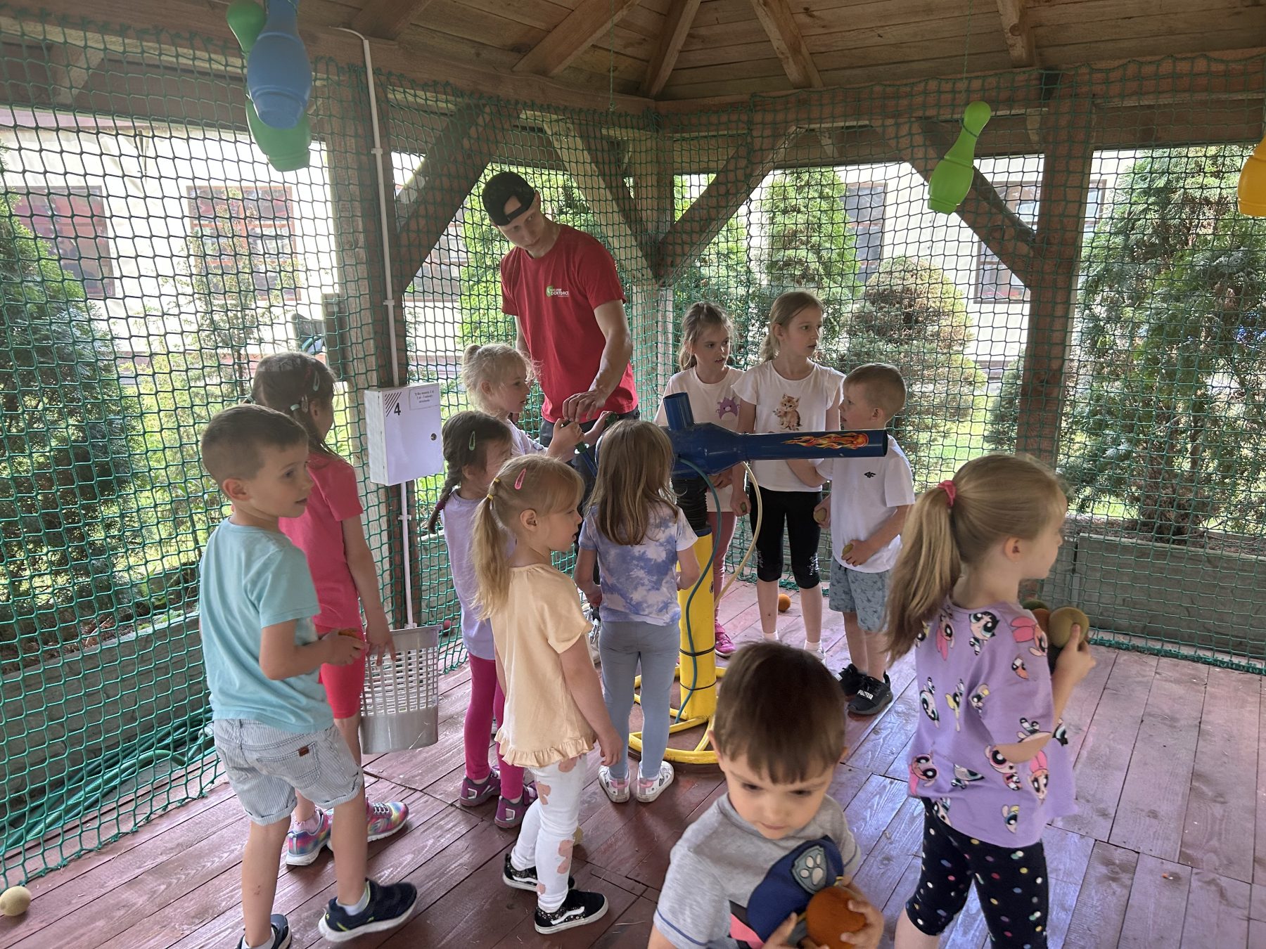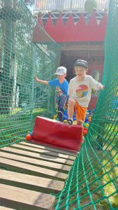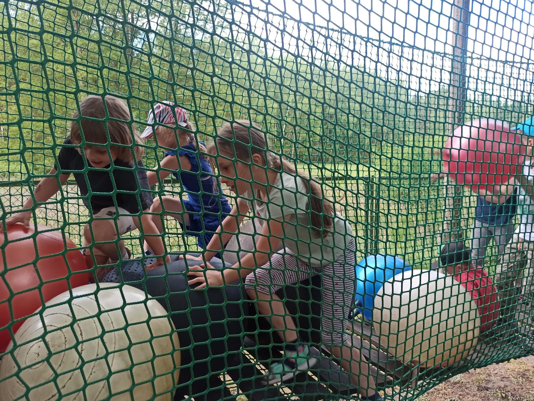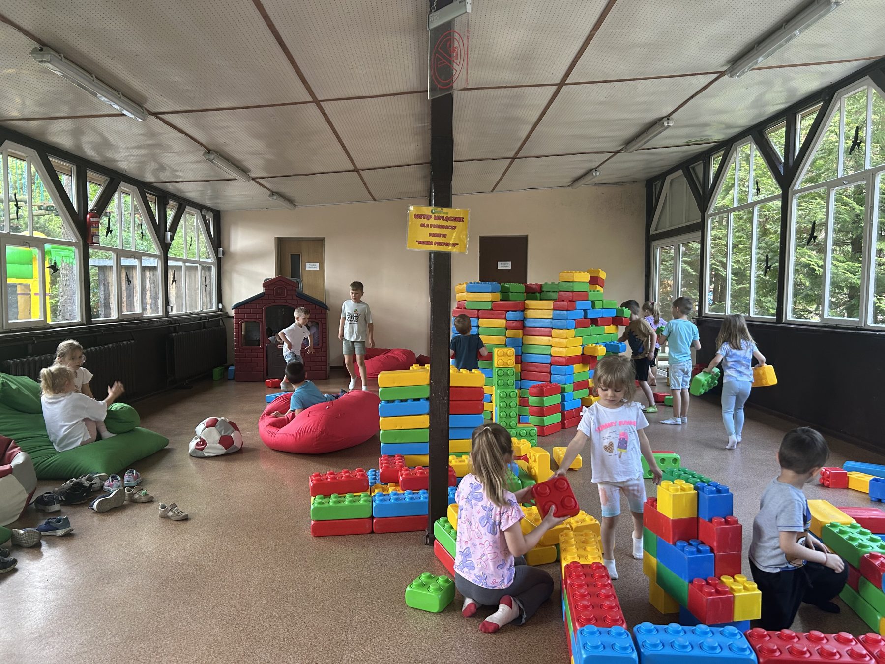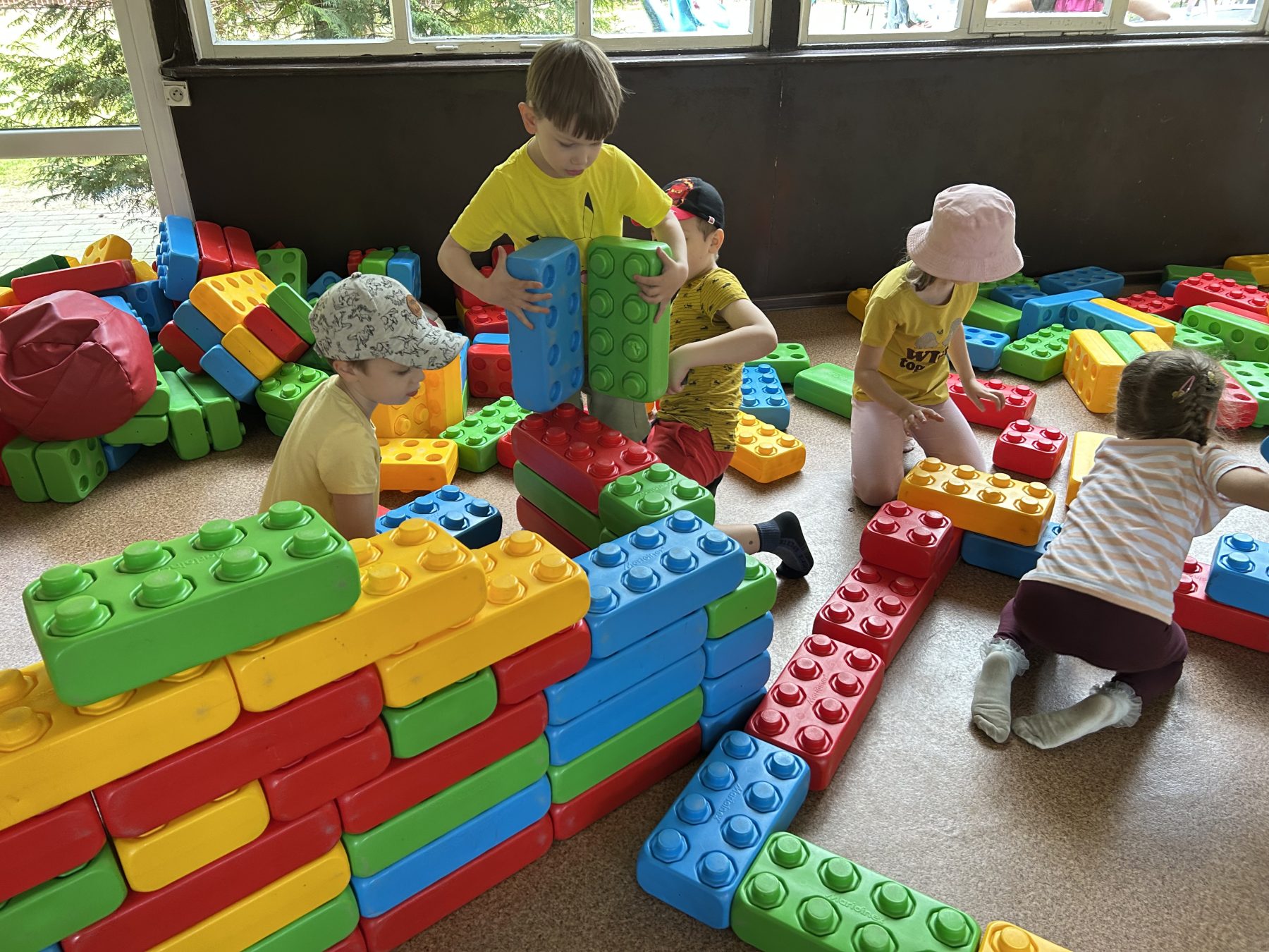 Dzieci świetnie się bawiły, korzystając z licznych atrakcji: Zamku – gdzie mogły poczuć się jak mali rycerze i księżniczki, odkrywając jego zakamarki, Trasy w siatkach – rozwijającej sprawność i koordynację,Trampolin – które dostarczyły mnóstwo radości i energicznych skoków, Dmuchańców – pełnych śmiechu i zabawy, Klockarni – miejsca, gdzie kreatywność nie znała granic! Nie zabrakło również zabaw integracyjnych, które sprzyjały współpracy i wzmacniały przedszkolne przyjaźnie.