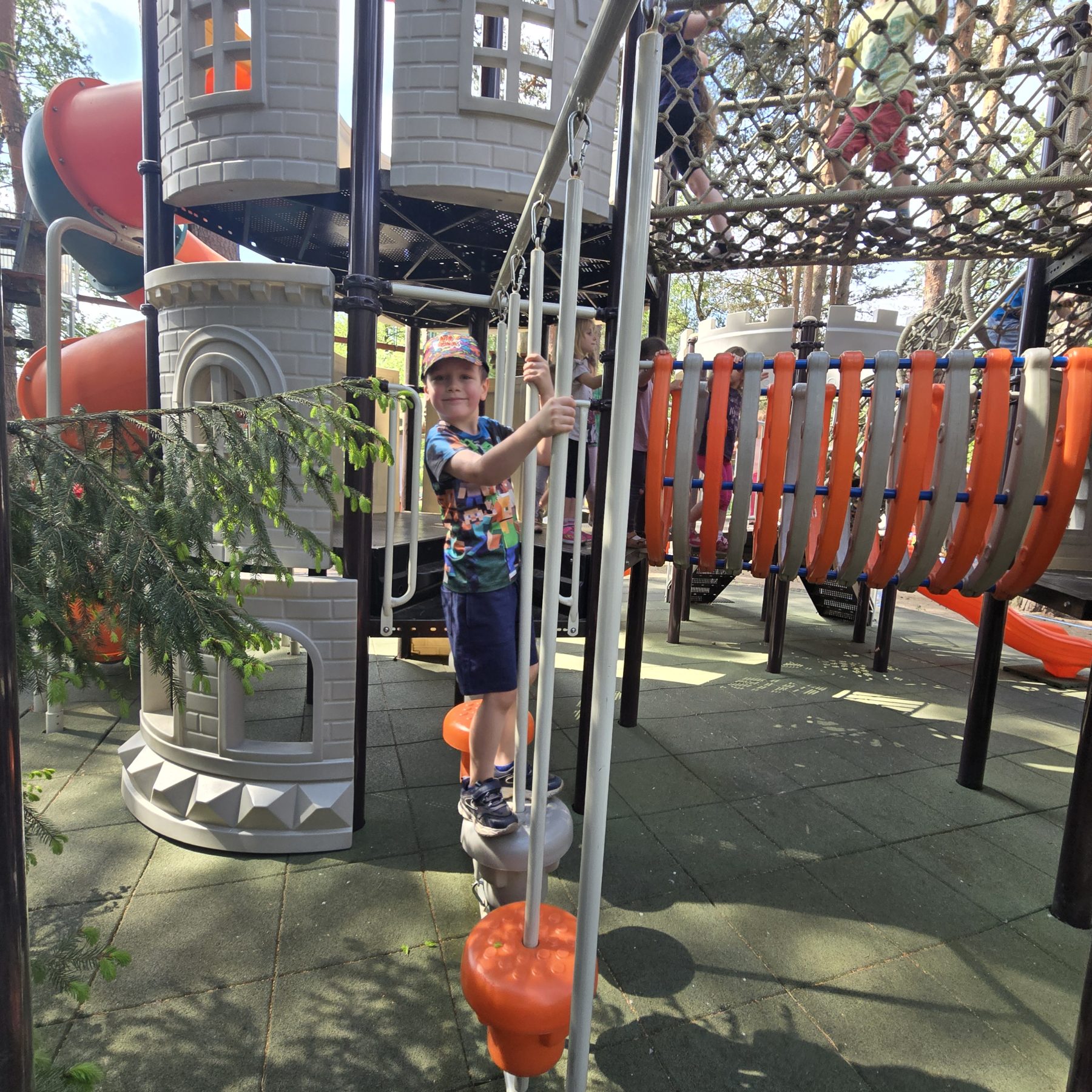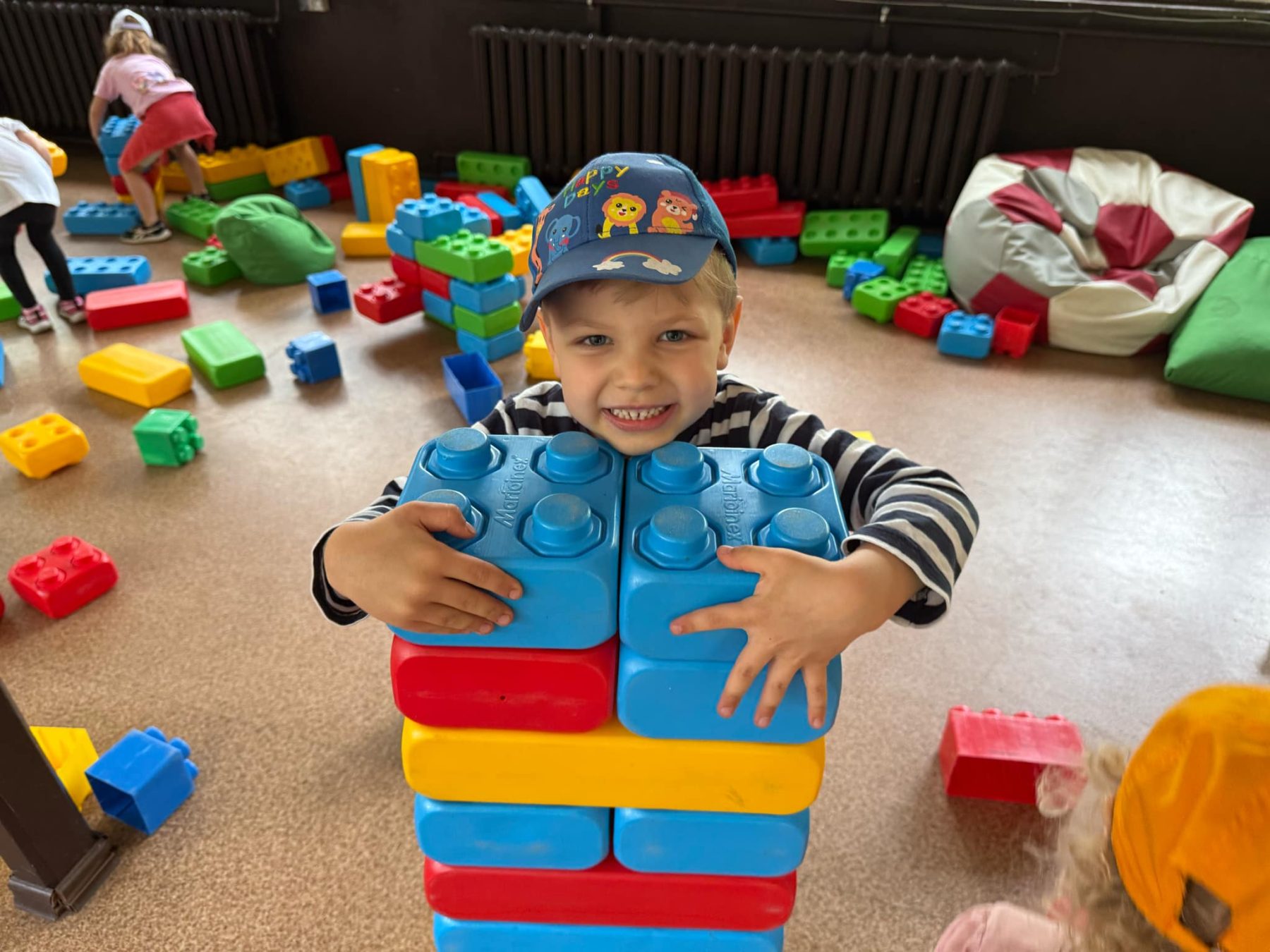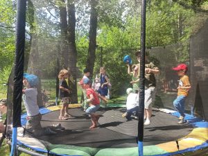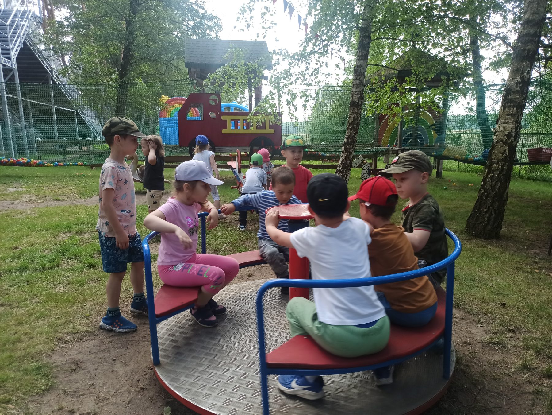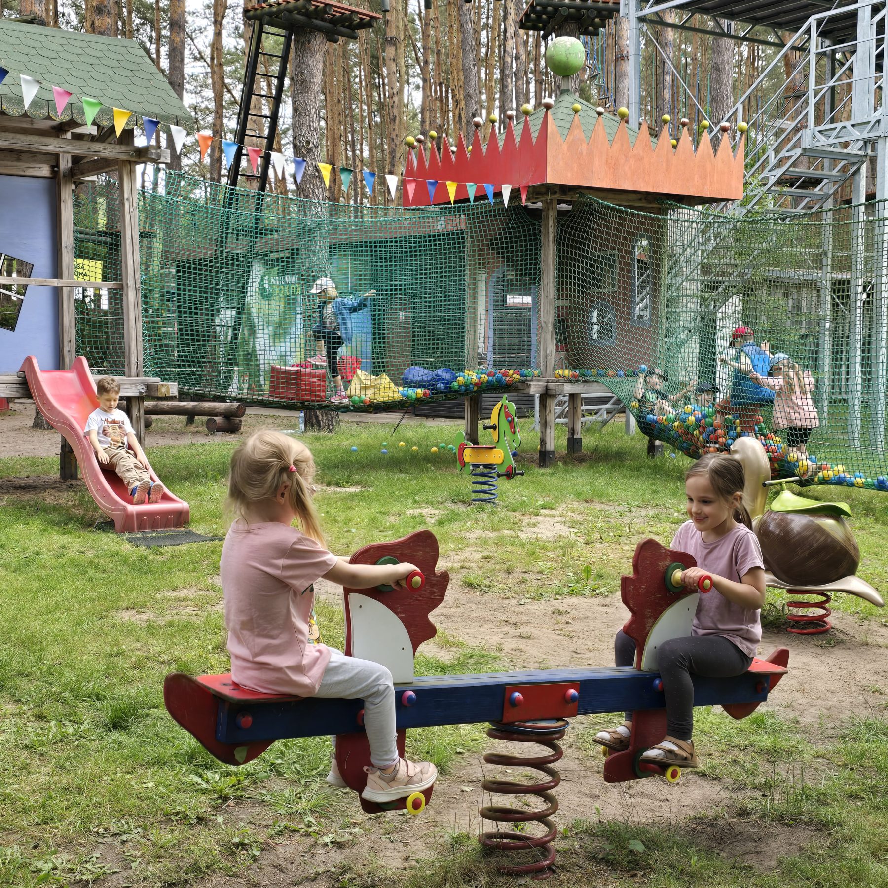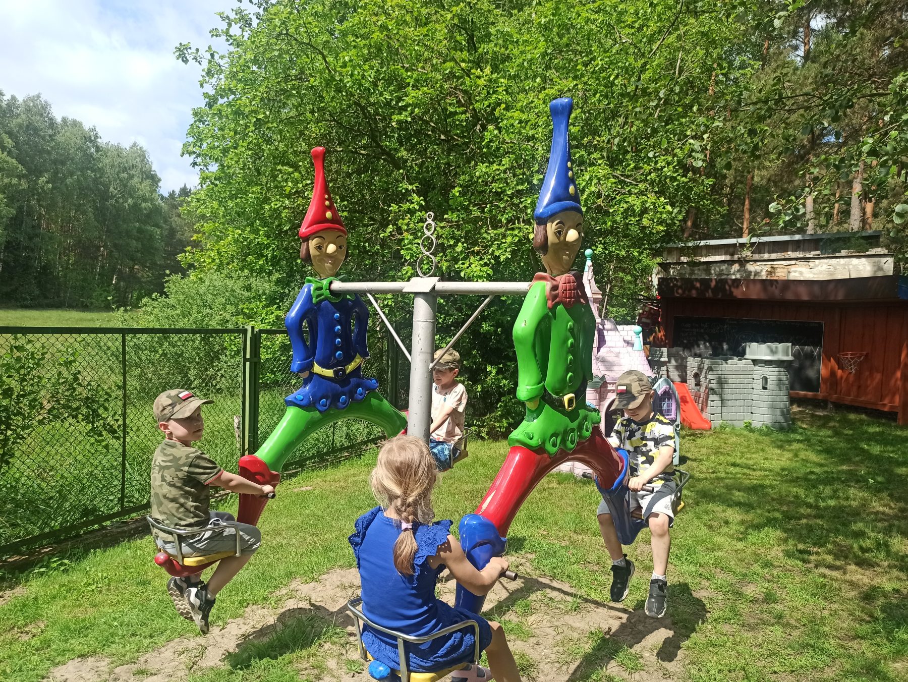 Dzieci świetnie się bawiły, korzystając z licznych atrakcji: Zamku – gdzie mogły poczuć się jak mali rycerze i księżniczki, odkrywając jego zakamarki, Trasy w siatkach – rozwijającej sprawność i koordynację,Trampolin – które dostarczyły mnóstwo radości i energicznych skoków, Dmuchańców – pełnych śmiechu i zabawy, Klockarni – miejsca, gdzie kreatywność nie znała granic! Nie zabrakło również zabaw integracyjnych, które sprzyjały współpracy i wzmacniały przedszkolne przyjaźnie.