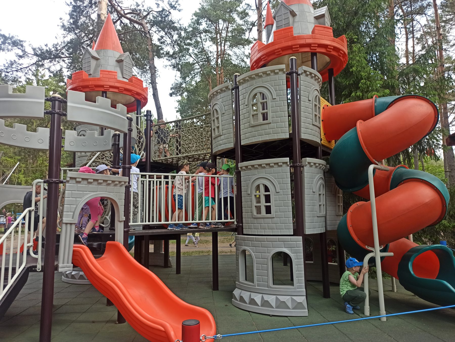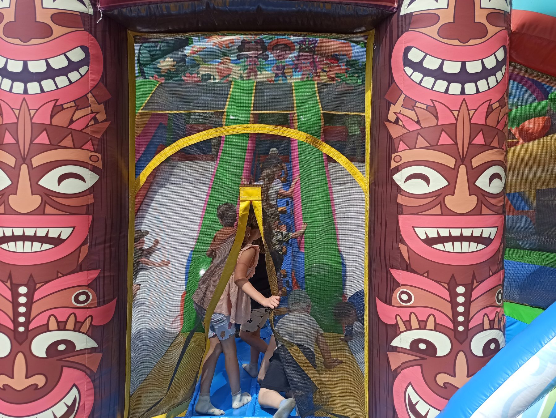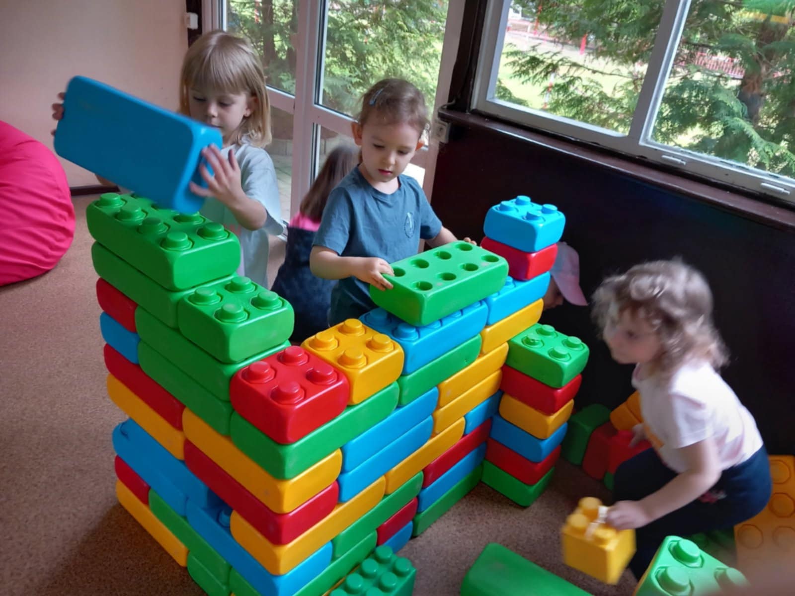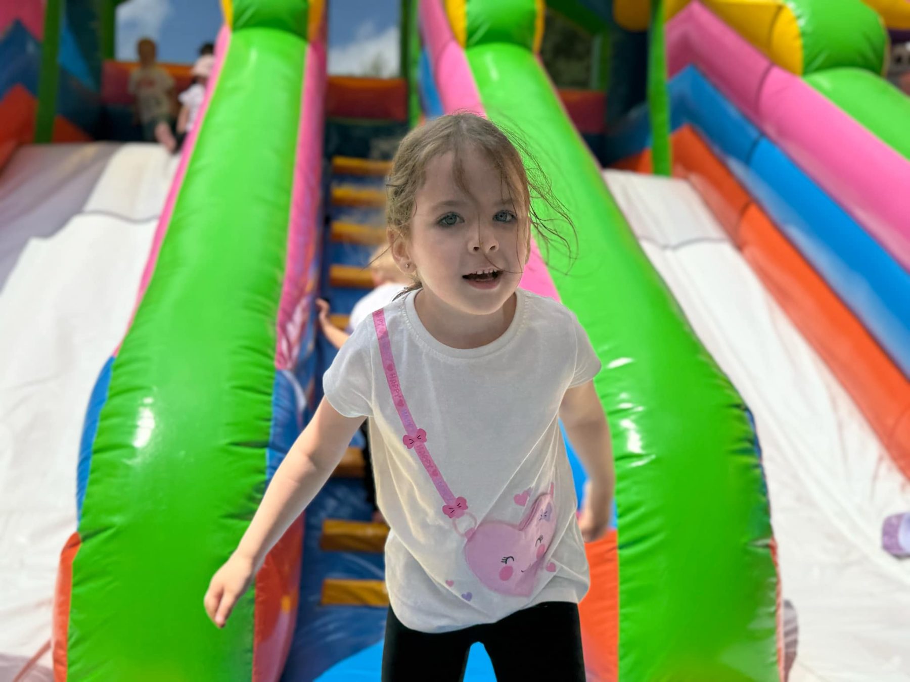 Dzieci świetnie się bawiły, korzystając z licznych atrakcji: Zamku – gdzie mogły poczuć się jak mali rycerze i księżniczki, odkrywając jego zakamarki, Trasy w siatkach – rozwijającej sprawność i koordynację,Trampolin – które dostarczyły mnóstwo radości i energicznych skoków, Dmuchańców – pełnych śmiechu i zabawy, Klockarni – miejsca, gdzie kreatywność nie znała granic! Nie zabrakło również zabaw integracyjnych, które sprzyjały współpracy i wzmacniały przedszkolne przyjaźnie.