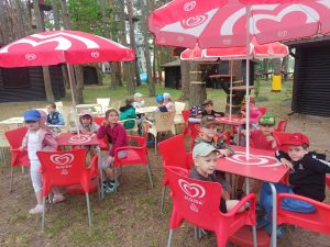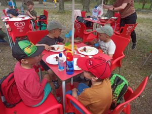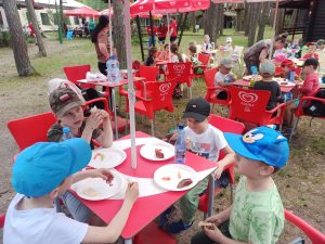 W trakcie wspaniałej zabawy dzieci miały czas na przerwę, podczas której na dzieci czekała pyszna, ciepła kiełbaska z grilla, przygotowana przez nasze wspaniałe kucharki.