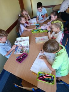 Starszaki z wielkim zaangażowaniem rozpoczęły również naukę z książkami. Ćwiczenia dostosowane do ich wieku rozwijały umiejętność logicznego myślenia, spostrzegawczość oraz przygotowywały do dalszej edukacji.