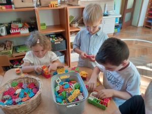 W ciągu tygodnia dzieci uczestniczyły w różnorodnych zajęciach: wspólnie bawiliśmy się klockami, układankami, rysowaliśmy oraz pracowaliśmy pomocami rozwojowymi.. Nie zabrakło także zabaw ruchowych, które cieszyły się ogromnym zainteresowaniem.