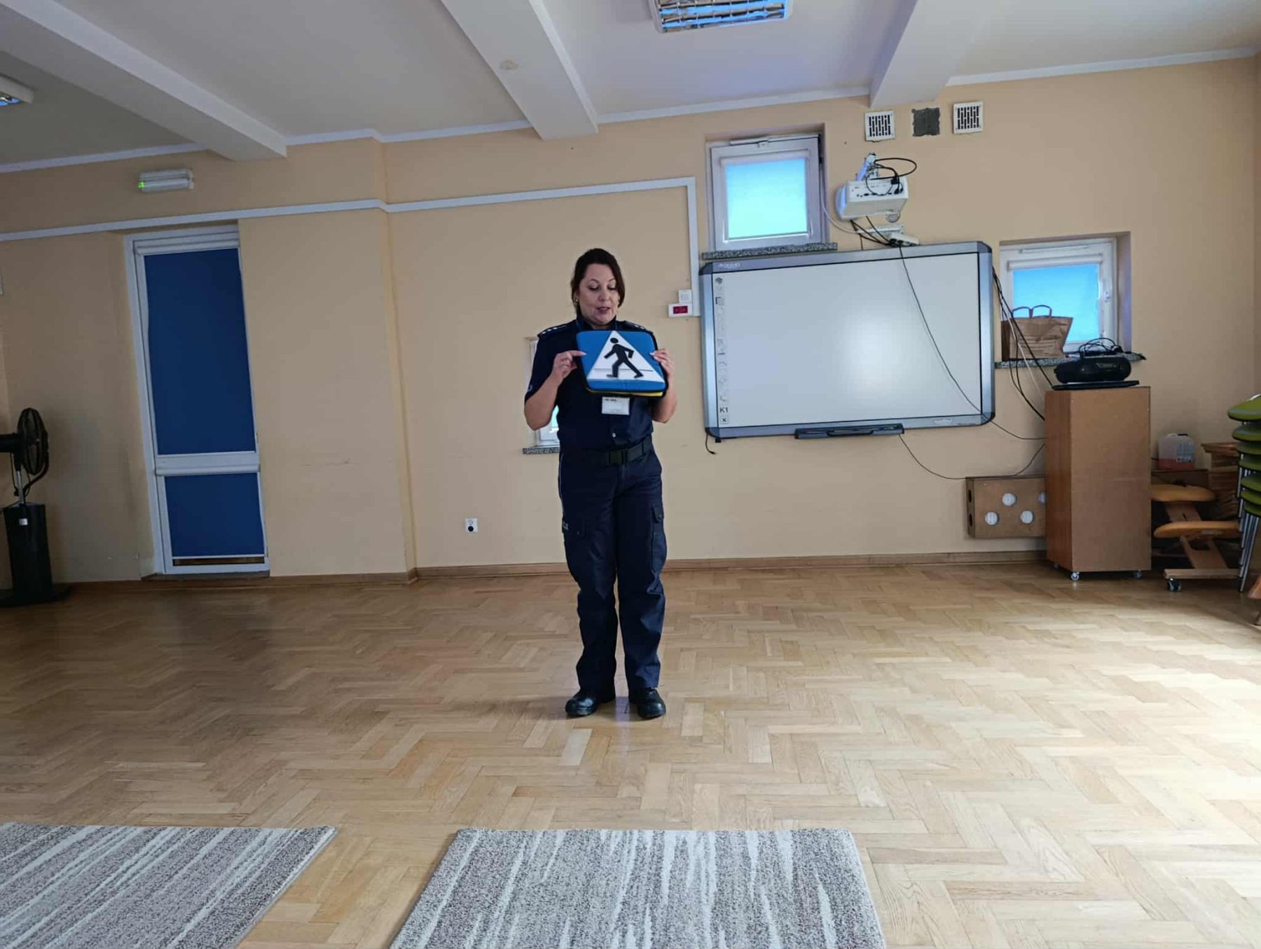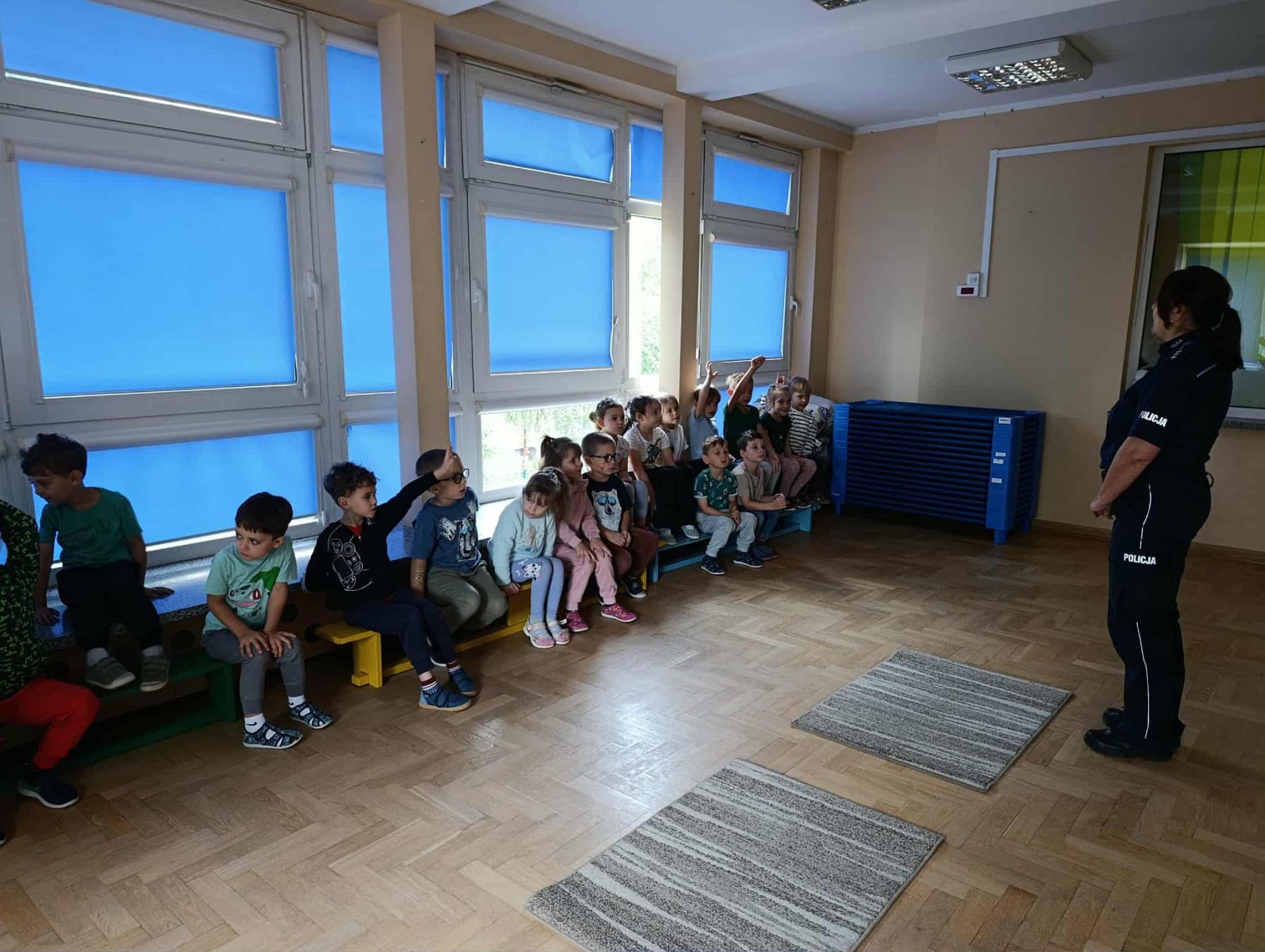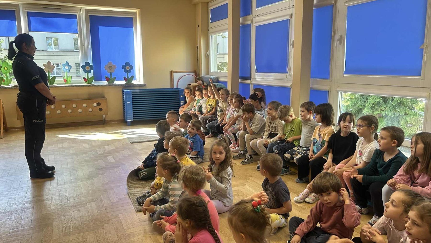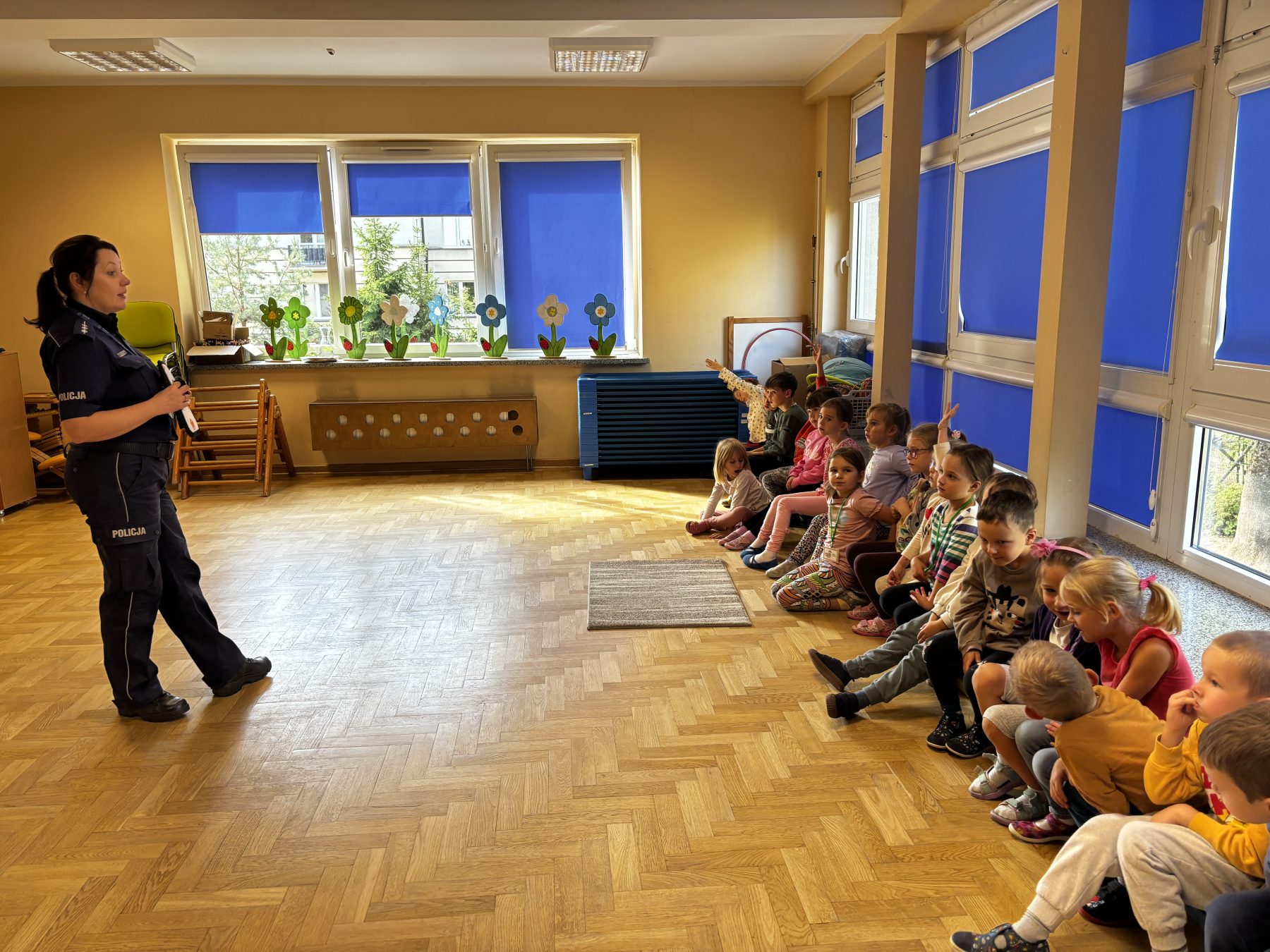 W naszym przedszkolu odbyło się spotkanie z funkcjonariuszem Policji na temat „Uwaga! Przedszkolak na drodze”. Podczas wizyty dzieci miały okazję porozmawiać o zasadach bezpiecznego poruszania się po drogach. Przedszkolaki dowiedziały się, jak prawidłowo przechodzić przez jezdnię, dlaczego warto nosić elementy odblaskowe oraz jak należy zachować się w różnych sytuacjach na drodze.