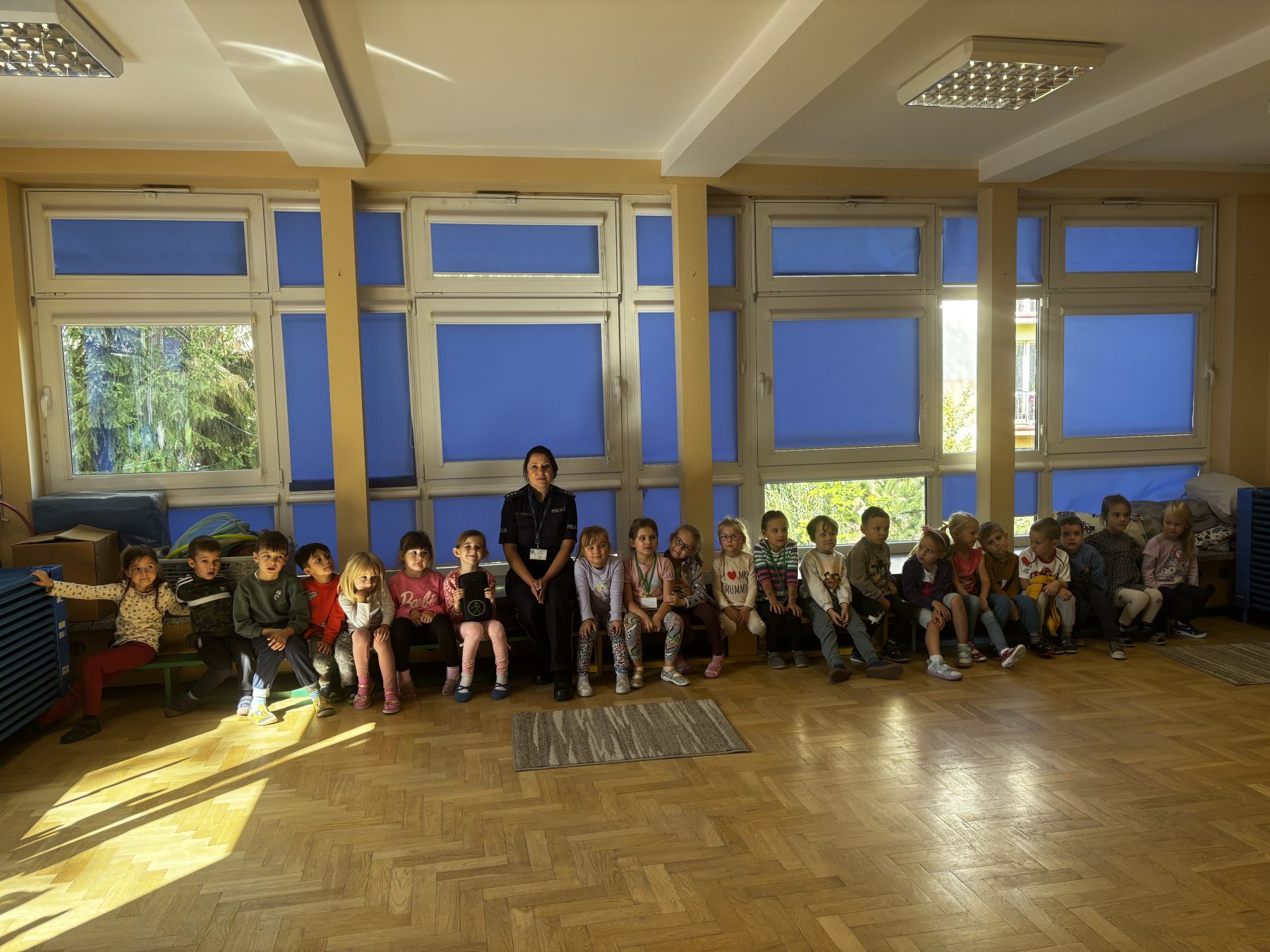 Serdecznie dziękujemy funkcjonariuszowi Policji za możliwość przeprowadzenia prelekcji, która wzbogaciła wiedzę naszych przedszkolaków.