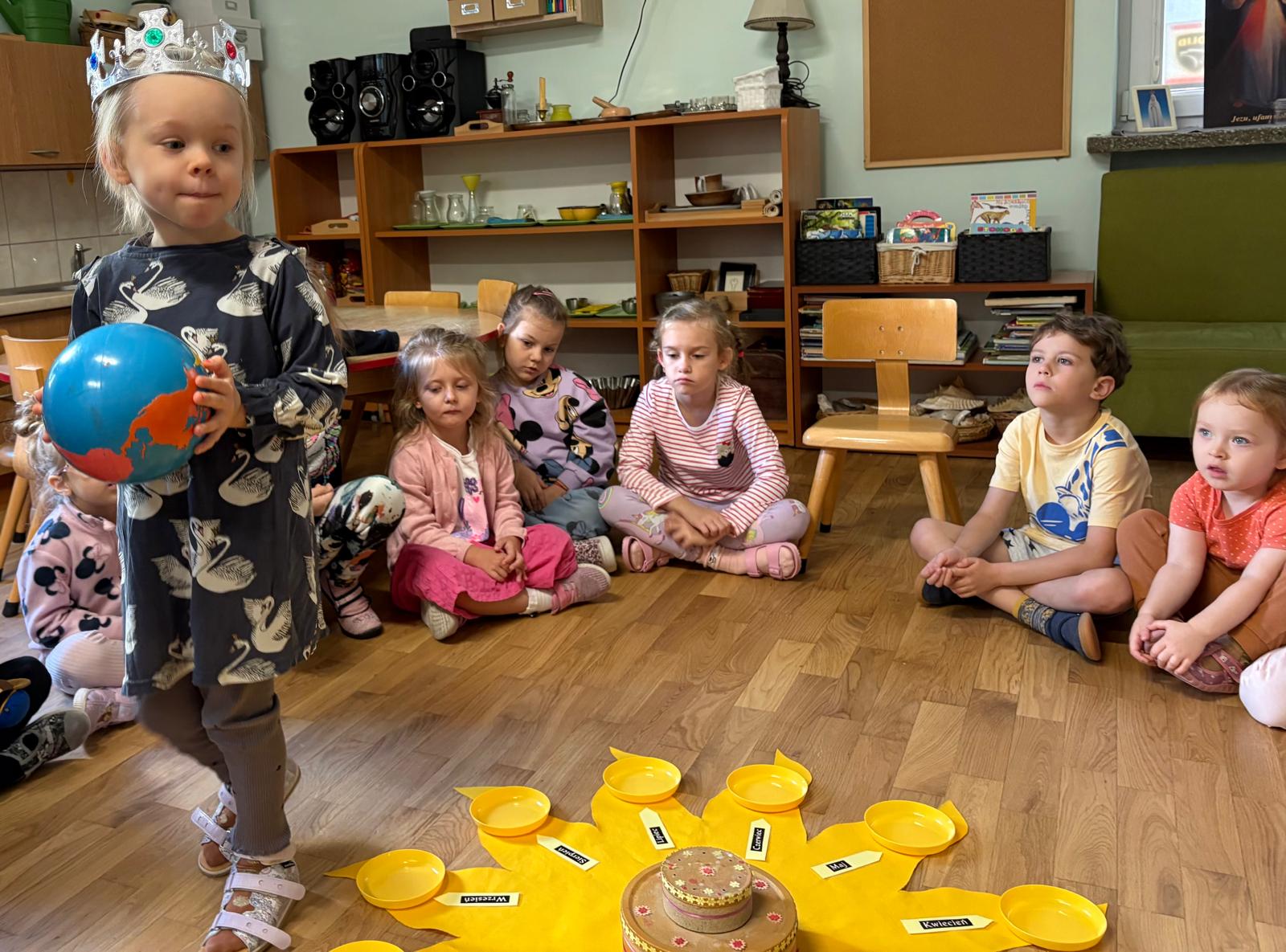 W ostatnim czasie obchodziliśmy urodziny Klary oraz Anieli. Jak zawsze, towarzyszyła nam tradycja „urodzinowego słoneczka”. Solenizantki symbolicznie okrążały Słońce z globusem w dłoni — tyle razy, ile kończyły lat. Ten wyjątkowy moment pomaga dzieciom lepiej zrozumieć mijający czas.