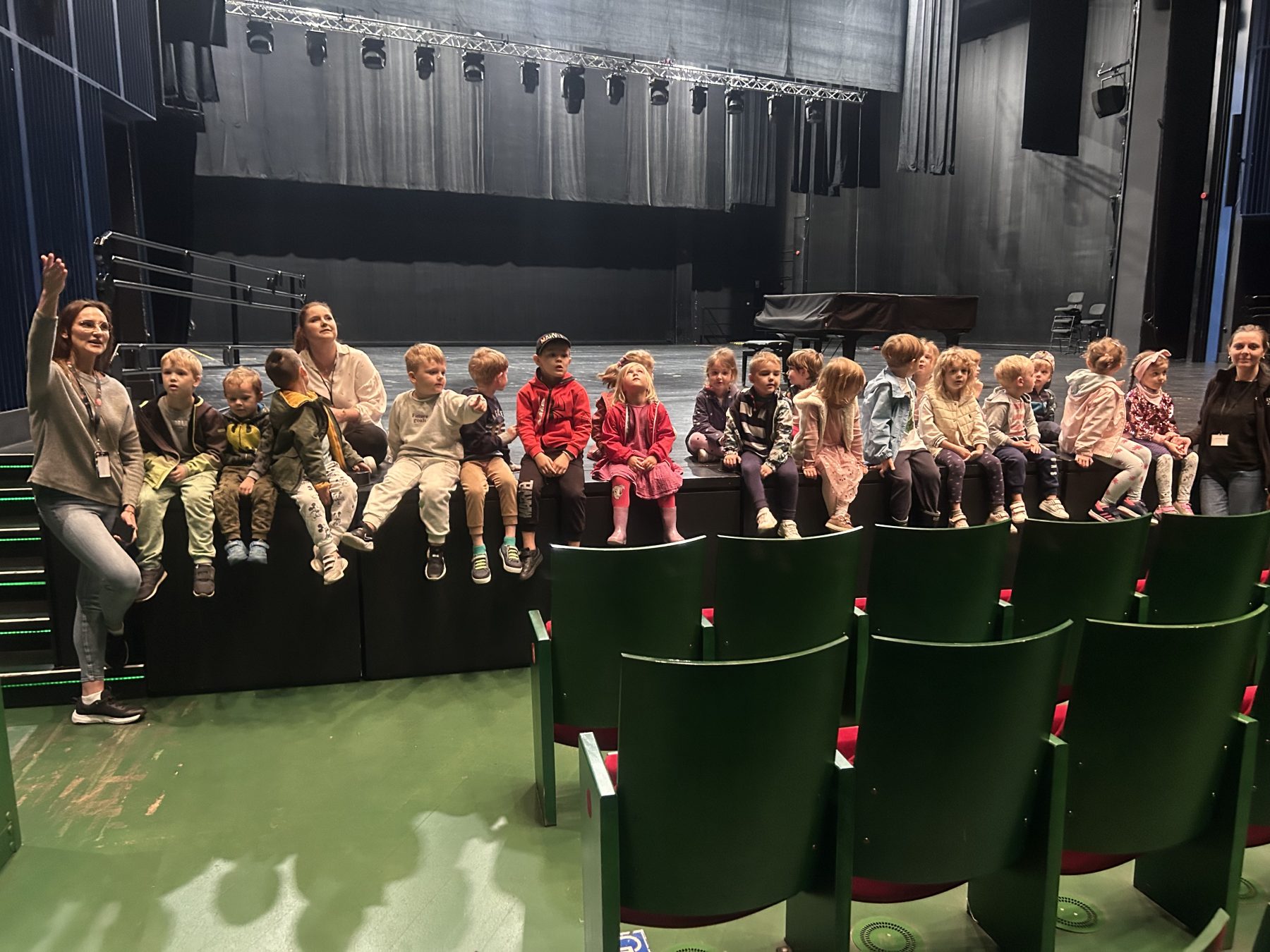 We wrześniu mama Amelki zaprosiła nas do Opery Podlaskiej. Mieliśmy okazję zwiedzić wiele ciekawych miejsc i dowiedzieć się jak wygląda praca w Operze. Byliśmy w sali prób orkiestry, a także na wielkiej scenie głównej, gdzie poczuliśmy się jak prawdziwi artyści. Wjechaliśmy również na taras na dachu, skąd mogliśmy podziwiać piękne widoki. Bardzo podobała nam się makieta Opery zbudowana z klocków LEGO. Wizyta była bardzo udana i ciekawa. Dziękujemy za zaproszenie!