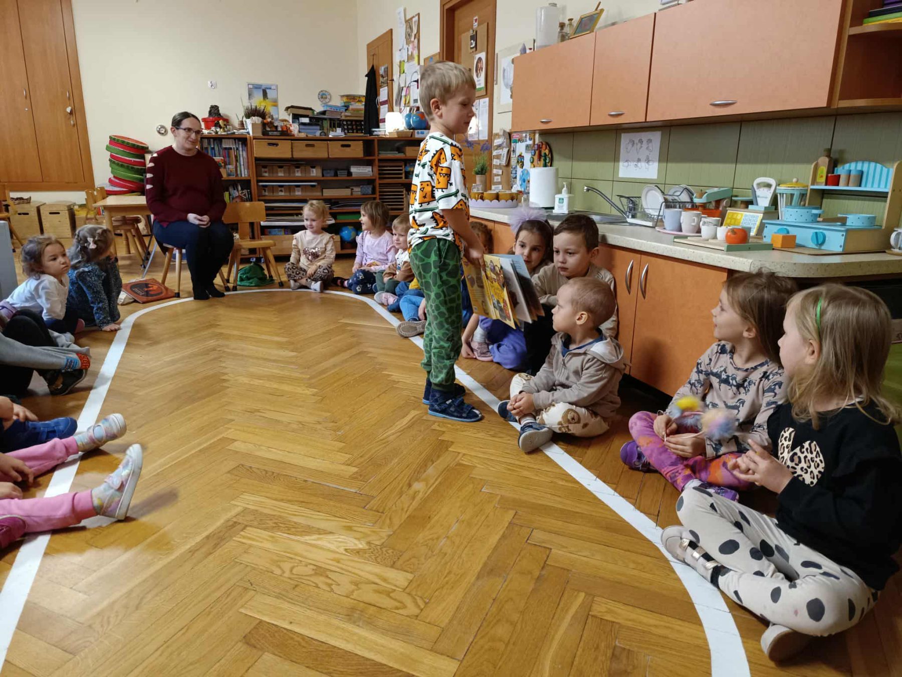 Bajki-pomagajki to niezwykłe historie, które wspierają i dają poczucie bezpieczeństwa, zawierają wiele praktycznych wskazówek, opowiadają mądrze o świecie dziecięcych emocji i konkretnych problemach, z którymi dzieci się borykają. Najmłodsi czytelnicy mogą utożsamić się z bohaterem i przeżyć z nim daną historię, a także dowiedzieć, jak zachować się w danej sytuacji. Dziękujemy mamie Ernesta za wizytę w Grupie V w ramach Akcji Cała Polska Czyta Dzieciom. Przedszkolaki słuchały z bardzo dużym zainteresowaniem opowiadań o wiewiórce i autach.