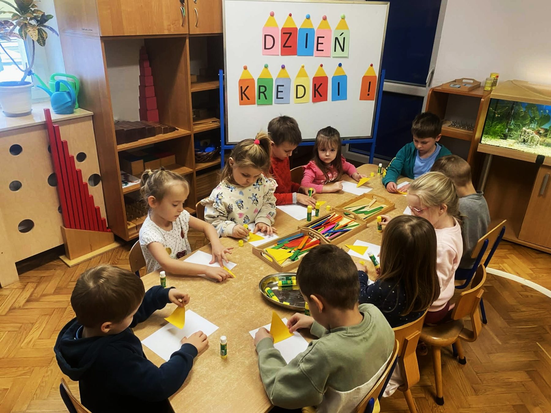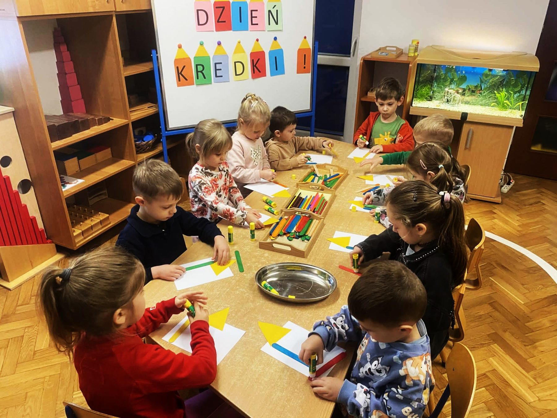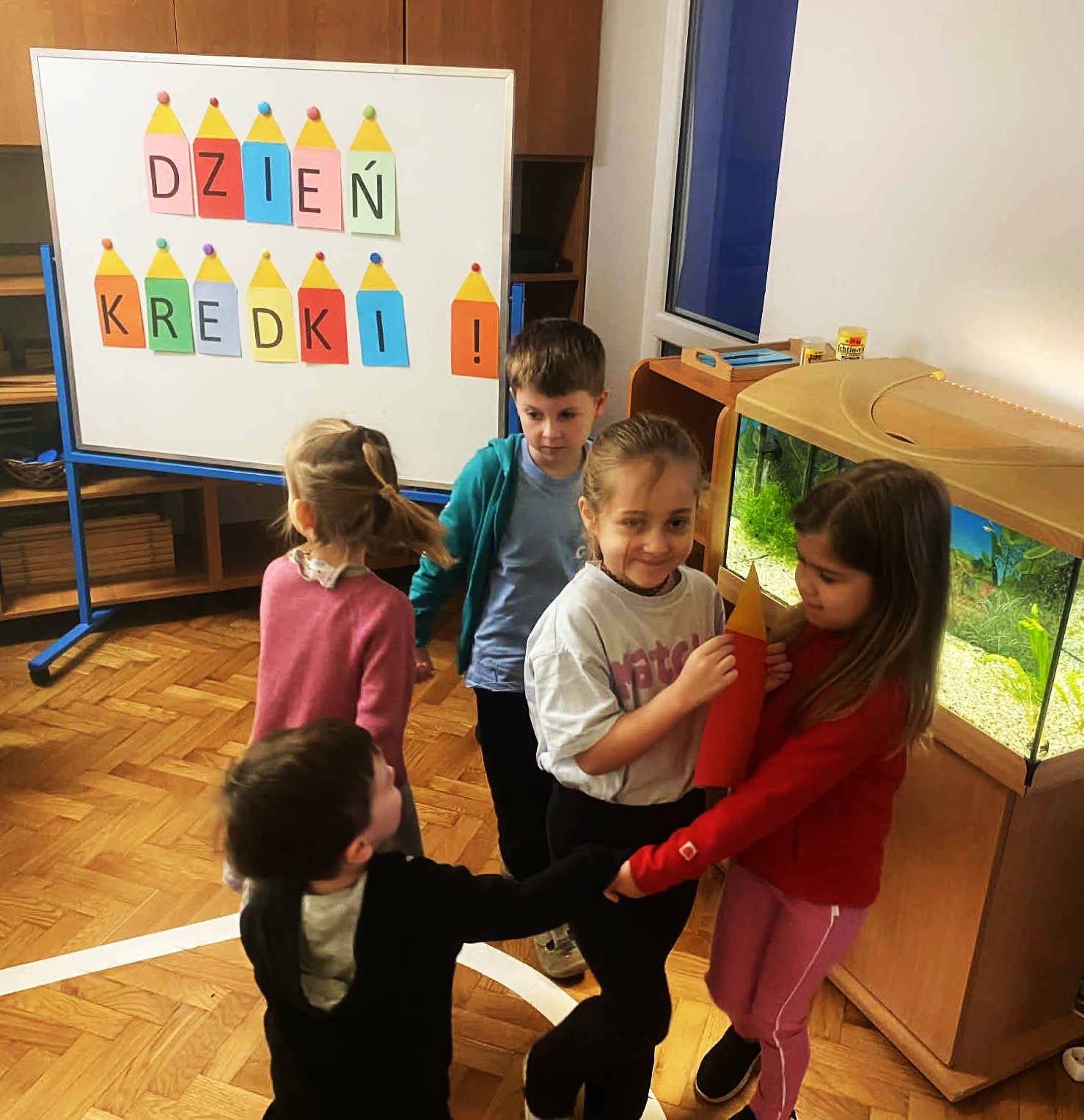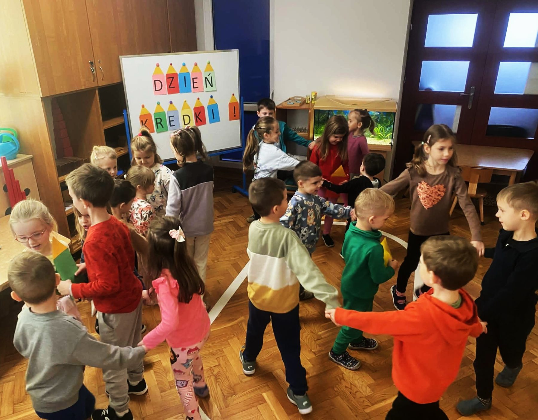 Dnia 24.11.2025 r. w naszej grupie obchodziliśmy Dzień Kredki. Dzieci dowiedziały się, dlaczego ten dzień jest wyjątkowy i jakie ma znaczenie. Utrwaliły nazwy kolorów, segregowały kredki według barw oraz przeliczały je. Następnie stworzyły piękne, kolorowe prace plastyczne. Był to twórczy dzień pełen zabawy i nauki.