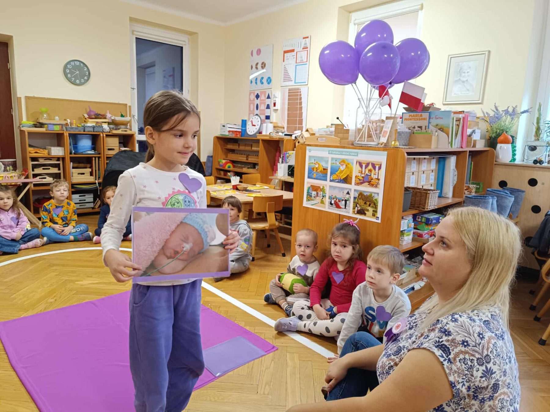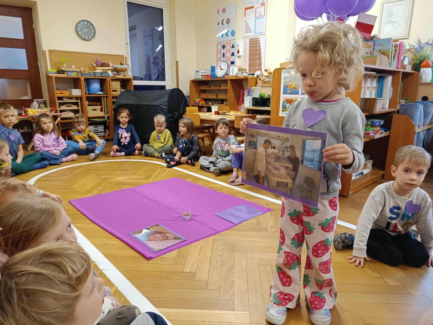 Dziś w naszym przedszkolu rozmawialiśmy o dzieciach przedwcześnie urodzonych. Dzieci uczestniczyły w zajęciach dydaktycznych skupiających się wokół wcześniaków, usłyszały opowiadanie pt. „Kangurek Oli” oraz wybraliśmy się na „Fioletowy Spacer” w okolice przedszkola. To wszystko z okazji Światowego Dnia Wcześniaka, obchodzonego corocznie 17 listopada. Dzień ten został ustanowiony, aby zwrócić uwagę na wyzwania z jakimi mierzą się dzieci urodzone przedwcześnie oraz na potrzeby ich rodzin.