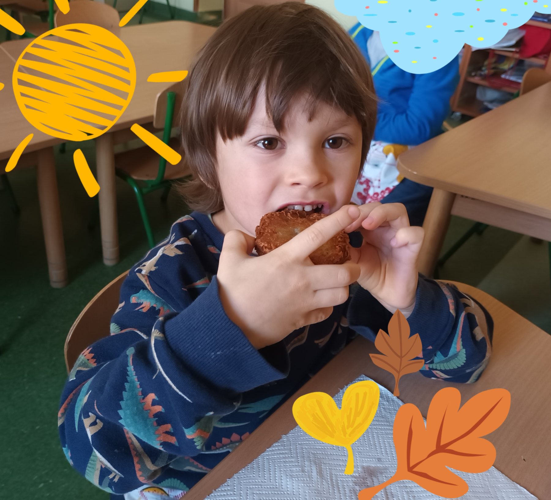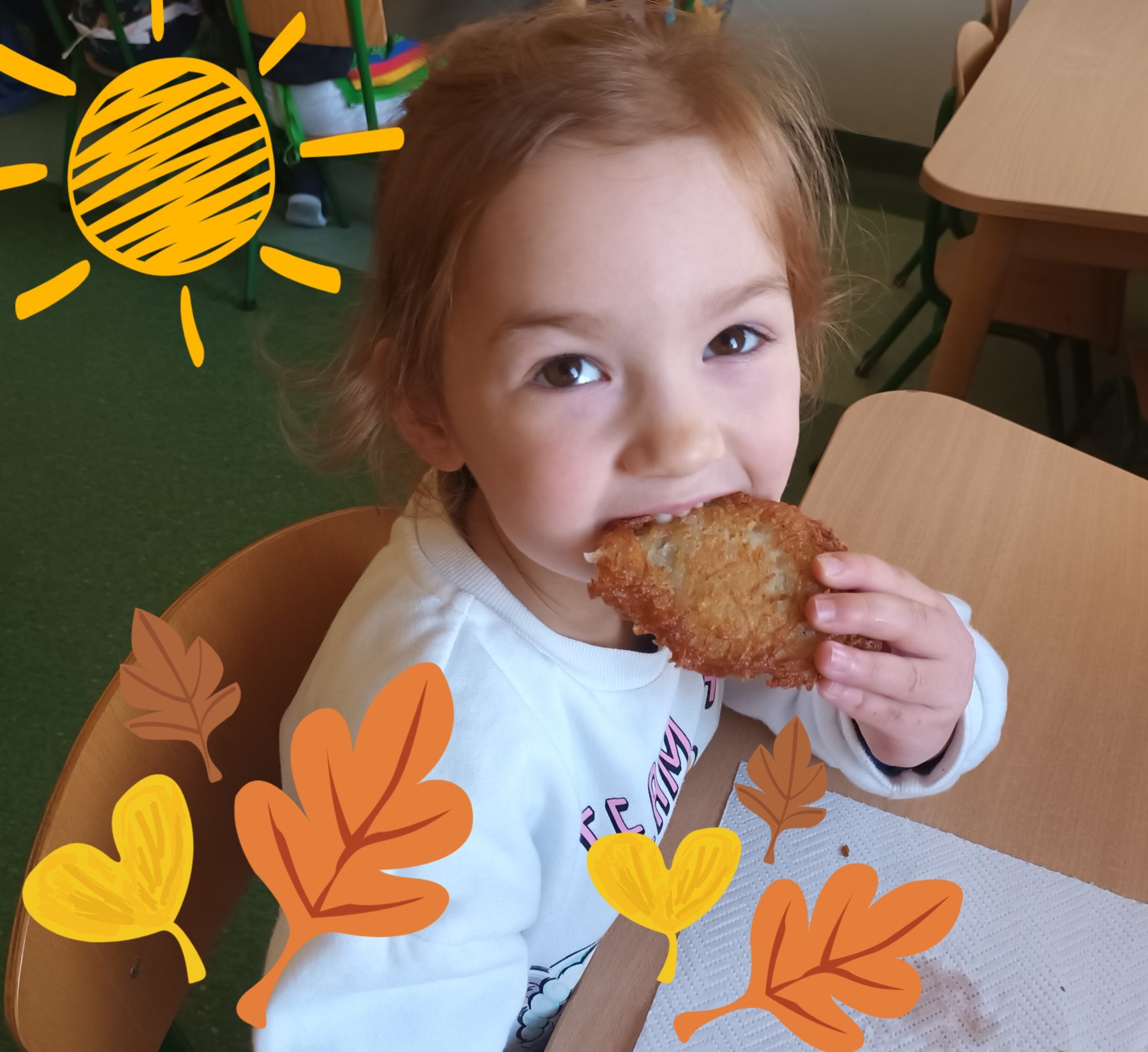 W ramach treści programowych przedszkolaki zostały zaproszone do przedszkolnej kuchni. Dzieci 5 i 6 – letnie z grupy V zawitały do kuchni, aby poznać jej sekrety i zagadki. Tam powitane przez panie kucharki zostały oprowadzone po kuchni i zapoznane ze sprzętami, których używa się w kuchni podczas przygotowywania posiłków. Oglądały jej wyposażenie, rozpoznawały i nazywały znajdujące się tam urządzenia i akcesoria kuchenne potrzebne do pracy. Ogromną frajdą okazało się oglądanie ogromnych garnków, misek i patelni, w których panie kucharki przygotowują przepyszne posiłki. Panie zwróciły uwagę dzieci na swój strój, podkreśliły znaczenie zachowania czystości podczas przygotowywania posiłków. Dzieci zaciekawione skarbnicą kuchni zadawały wiele pytań, na które uzyskały ciekawe odpowiedzi. Na koniec dzieci zostały obdarowane przez panie kucharki regionalnym daniem – plackami ziemniaczanymi. Dzieci z wielkim apetytem zjadły przygotowane placuszki. Przedszkolaki serdecznie dziękują paniom kucharkom za poświęcony czas oraz zaangażowanie i interesujące zajęcia edukacyjne.