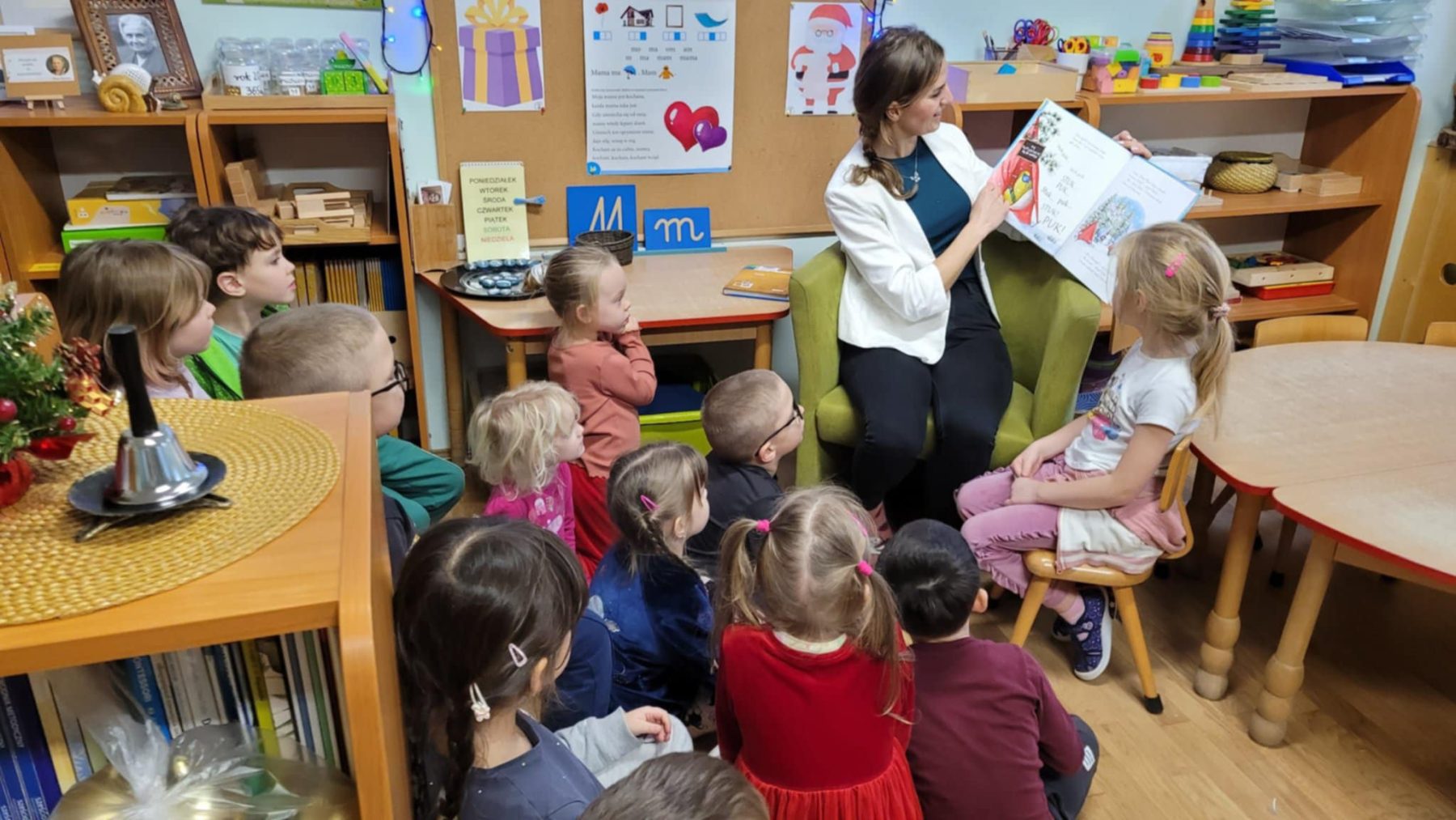 Podczas spotkań panowała ciepła i przyjazna atmosfera. Dzieci z dużym zaciekawieniem słuchały przygotowanych historii, aktywnie odpowiadały na pytania oraz dzieliły się własnymi spostrzeżeniami. Każde czytanie było wyjątkowe – rodzice prezentowali różne książki, a niektórzy wzbogacali swoje wystąpienia o rozmowę o bohaterach, ilustracjach czy krótkie zabawy tematyczne.