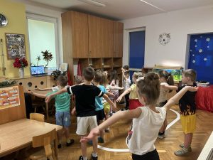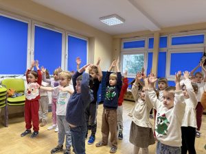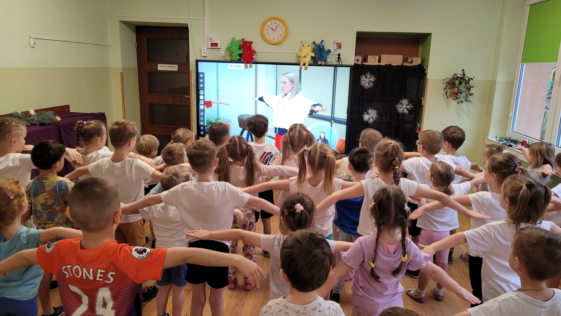 Ruch, uśmiech i zdrowie w najlepszym wydaniu. Nasze przedszkolaki wzięły dziś udział w integracyjnym WF-ie online. Wspólne ćwiczenia połączyły grupy z całej Polski, wypełniając sale energią, radością i dobrą zabawą. Było aktywnie, zdrowo i razem – tak jak lubimy najbardziej.