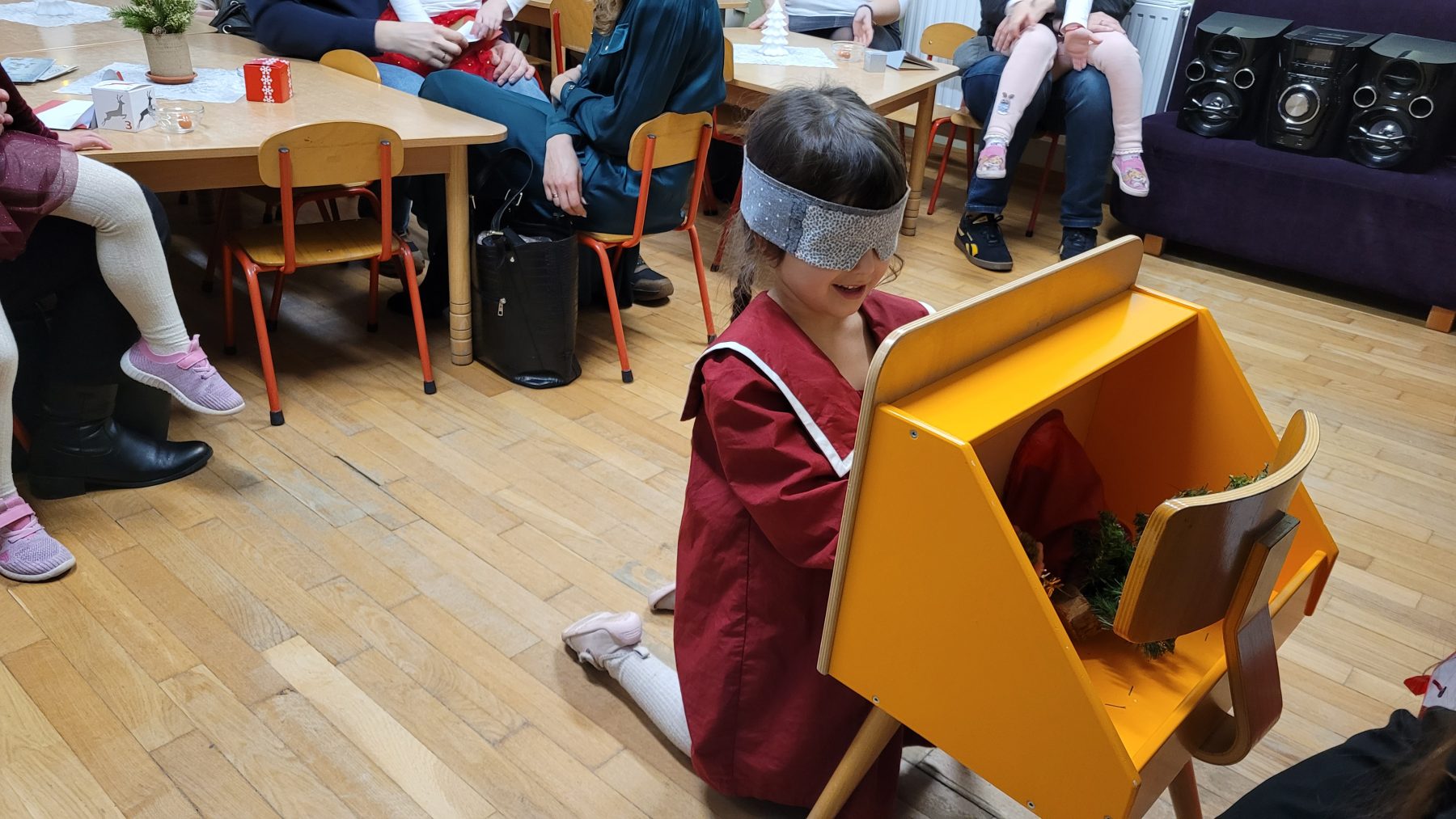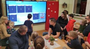 Podczas warsztatów uczestnicy brali udział w świątecznych quizach i zagadkach, które wymagały sprytu, pamięci i współpracy. Nie zabrakło również zagadek muzycznych, w których trzeba było rozpoznać kolędy i świąteczne melodie, oraz zagadek dotykowych i zapachowych, pobudzających wyobraźnię i kreatywność. Dużym zainteresowaniem cieszyła się też gra memory z wykorzystaniem tablicy multimedialnej, która wprowadziła nowoczesny akcent do zabawy i wzbudziła wiele emocji.