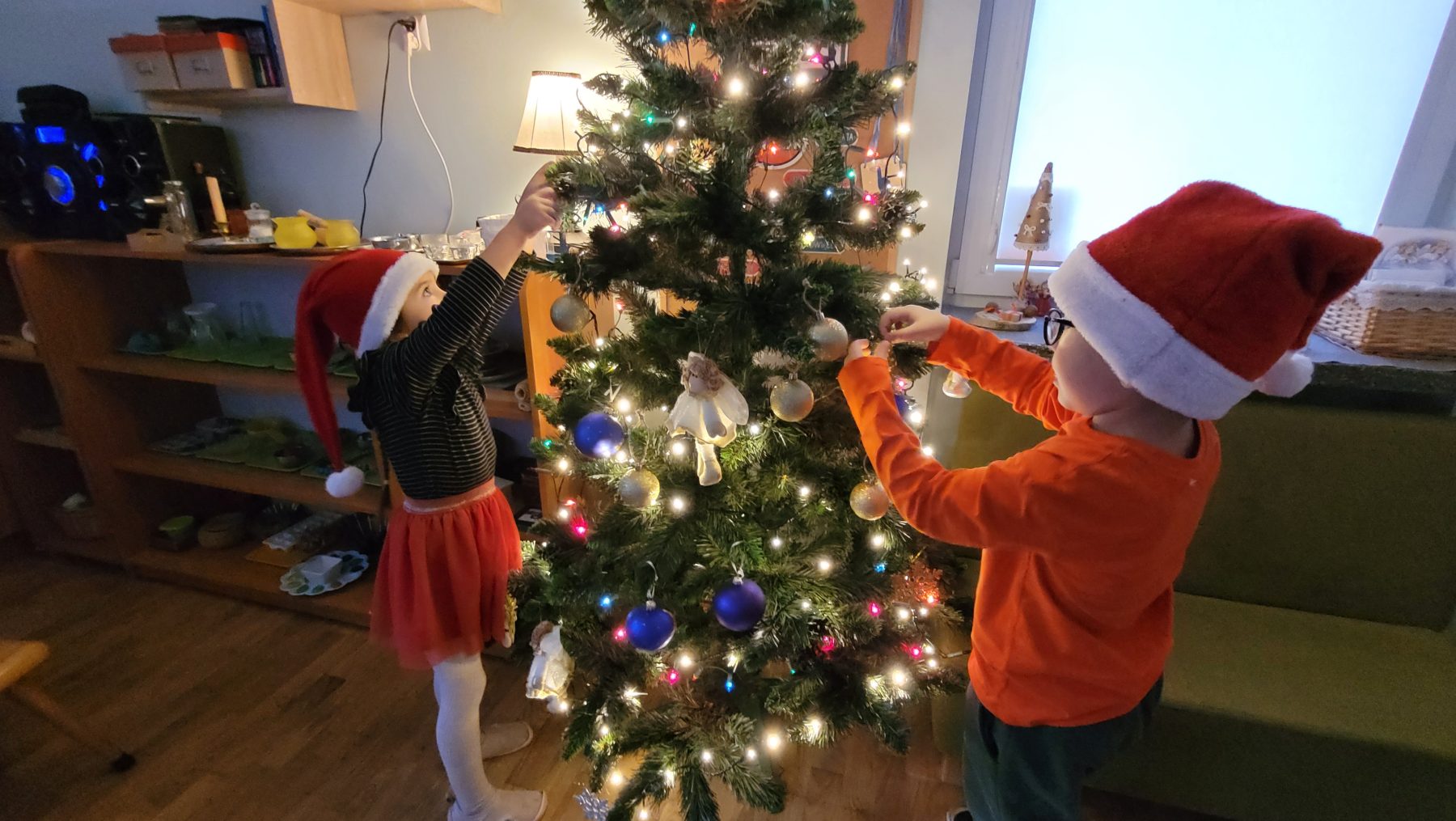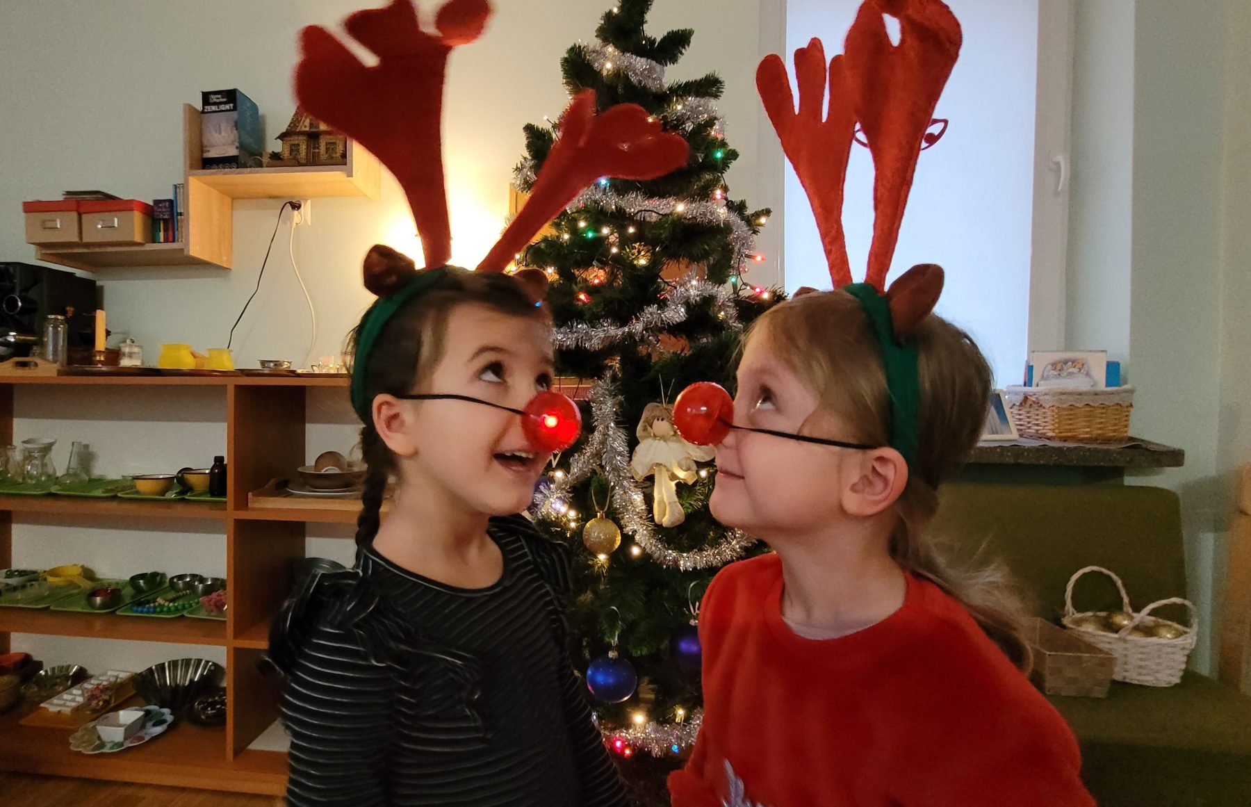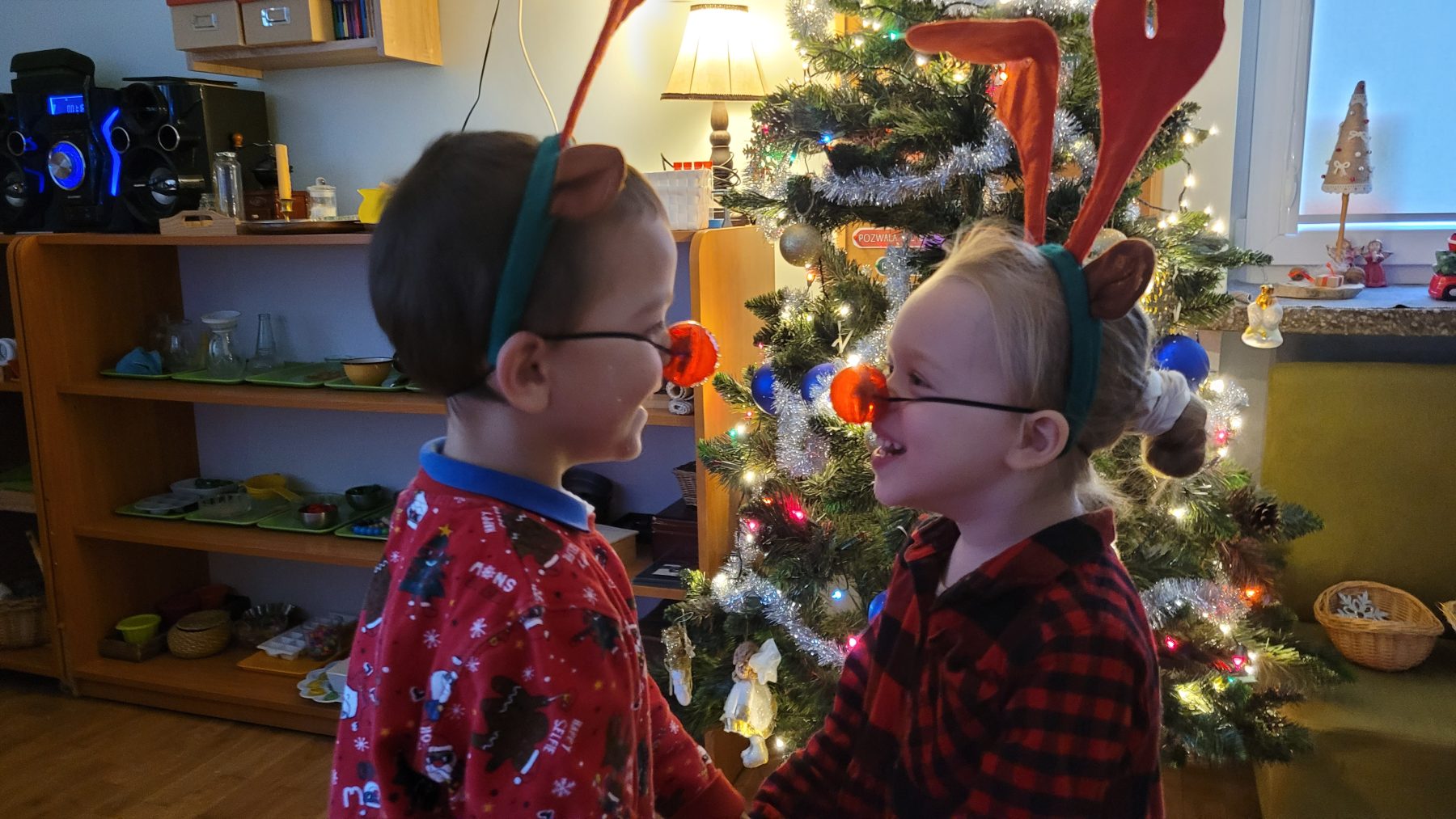 W piątek (05.12.2025 r.) nadszedł długo wyczekiwany przez dzieci dzień. Wszystkie przedszkolaki ubrały się do przedszkola na czerwono, a ich głowy zdobiły mikołajkowe czapki oraz świąteczne opaski. Wspólne zabawy mikołajkowe, słuchanie kolęd, ubieranie choinki, projektowanie listu do św. Mikołaja i wiele innych atrakcji czekało na dzieci w tym dniu. Ale najważniejsze nastąpiło przed obiadem – prezenty od św. Mikołaja.