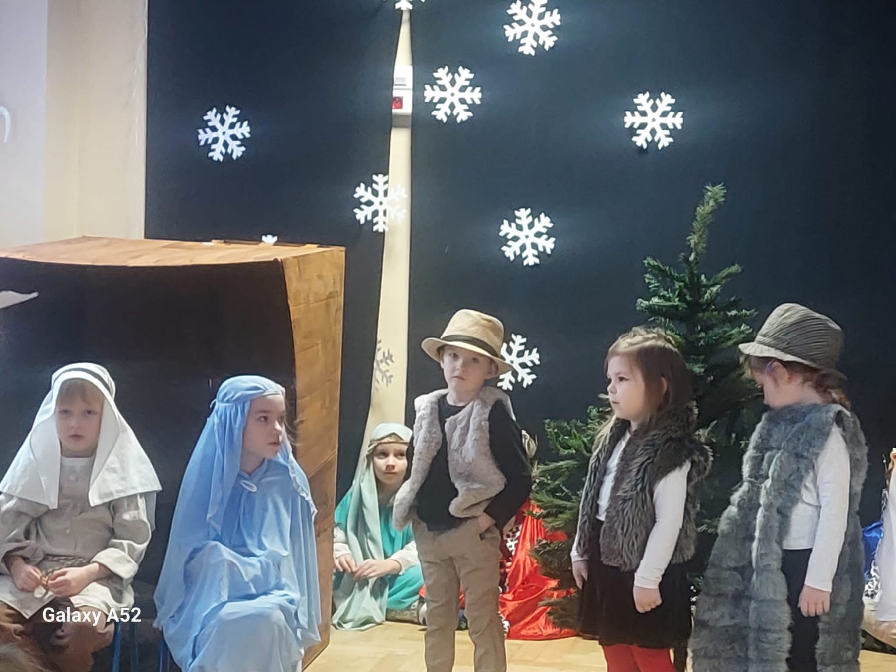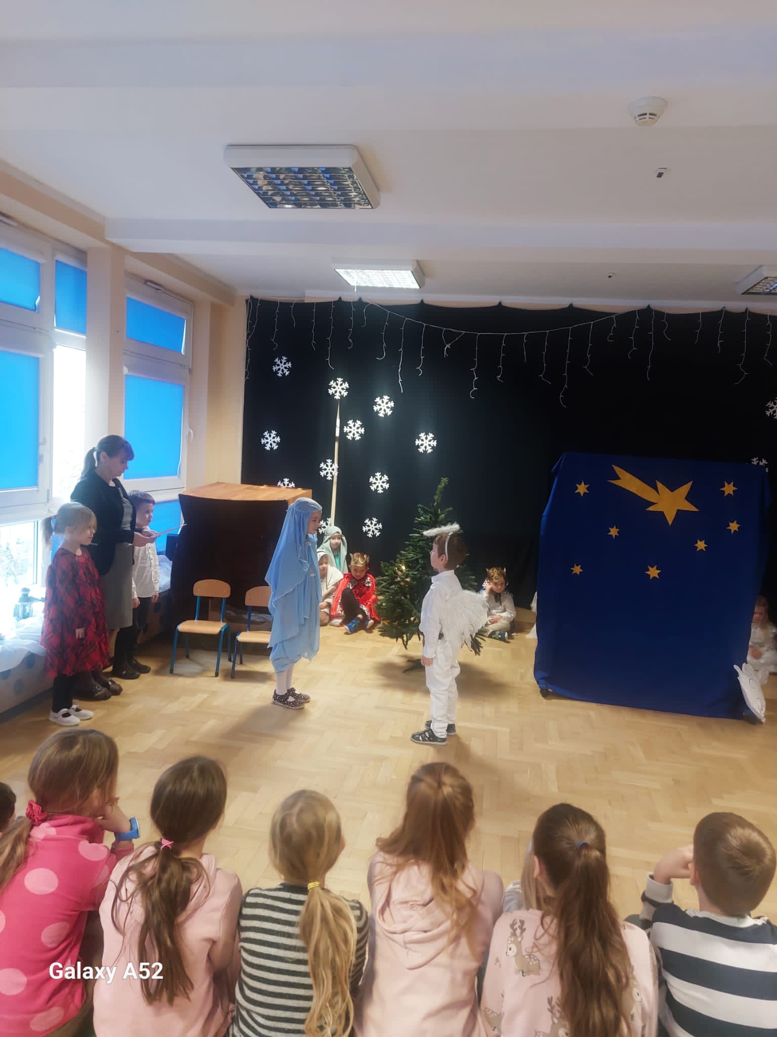 Rewizyta dzieci ze Szkoły Podstawowej nr 9 była dla nas wielką radością. Tym razem uczniowie szkoły odwiedzili naszą grupę, aby obejrzeć piękny występ jasełkowy w wykonaniu przedszkolaków z grupy III. Dziękujemy Paniom oraz wszystkim dzieciom za wspólnie spędzony czas, uśmiechy, miłą atmosferę oraz cudowne prezenty. To było wyjątkowe spotkanie, które na długo pozostanie w naszej pamięci.