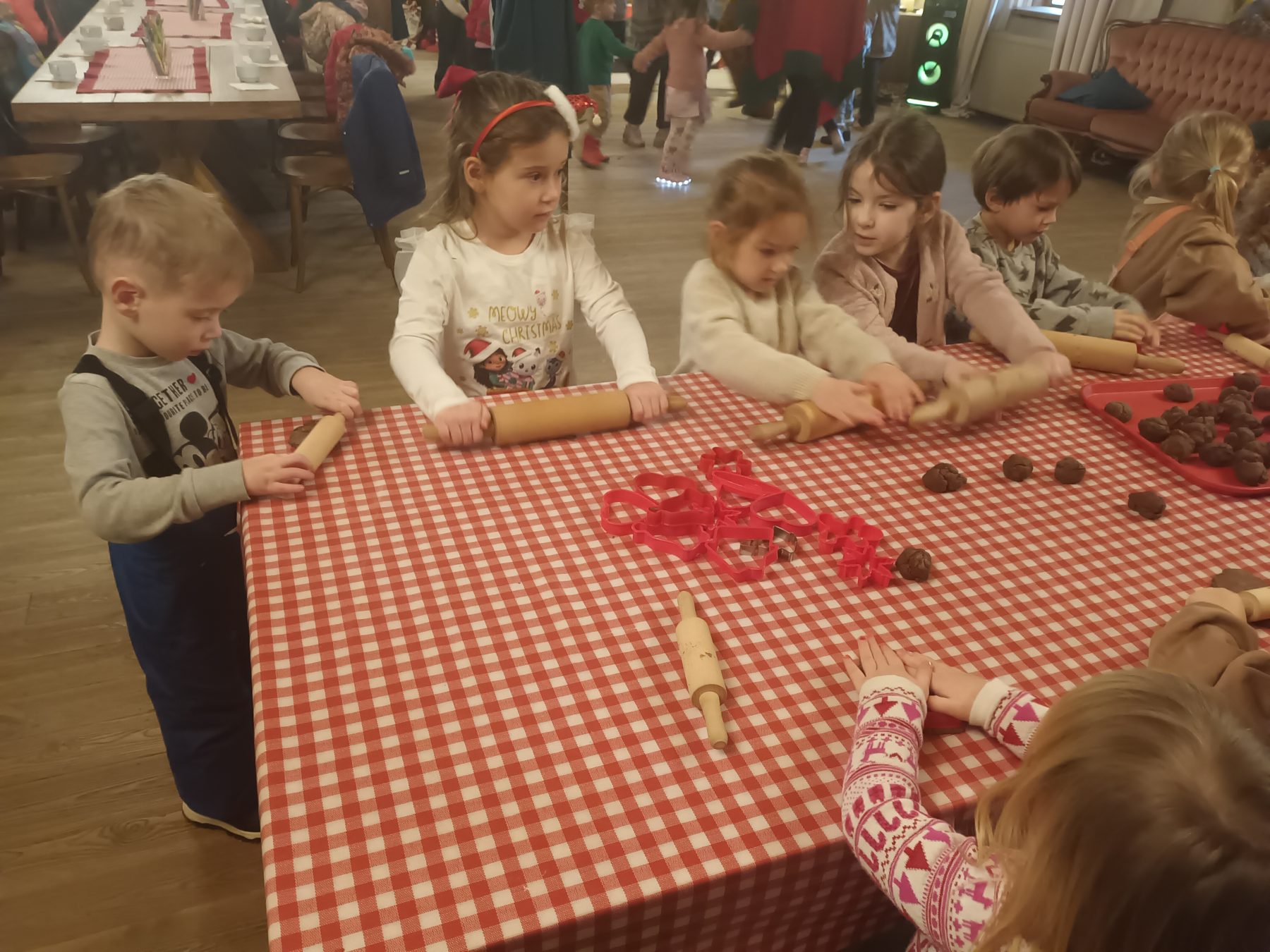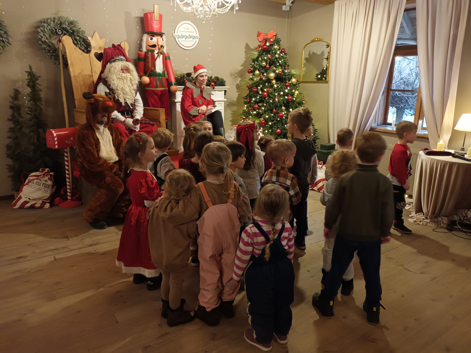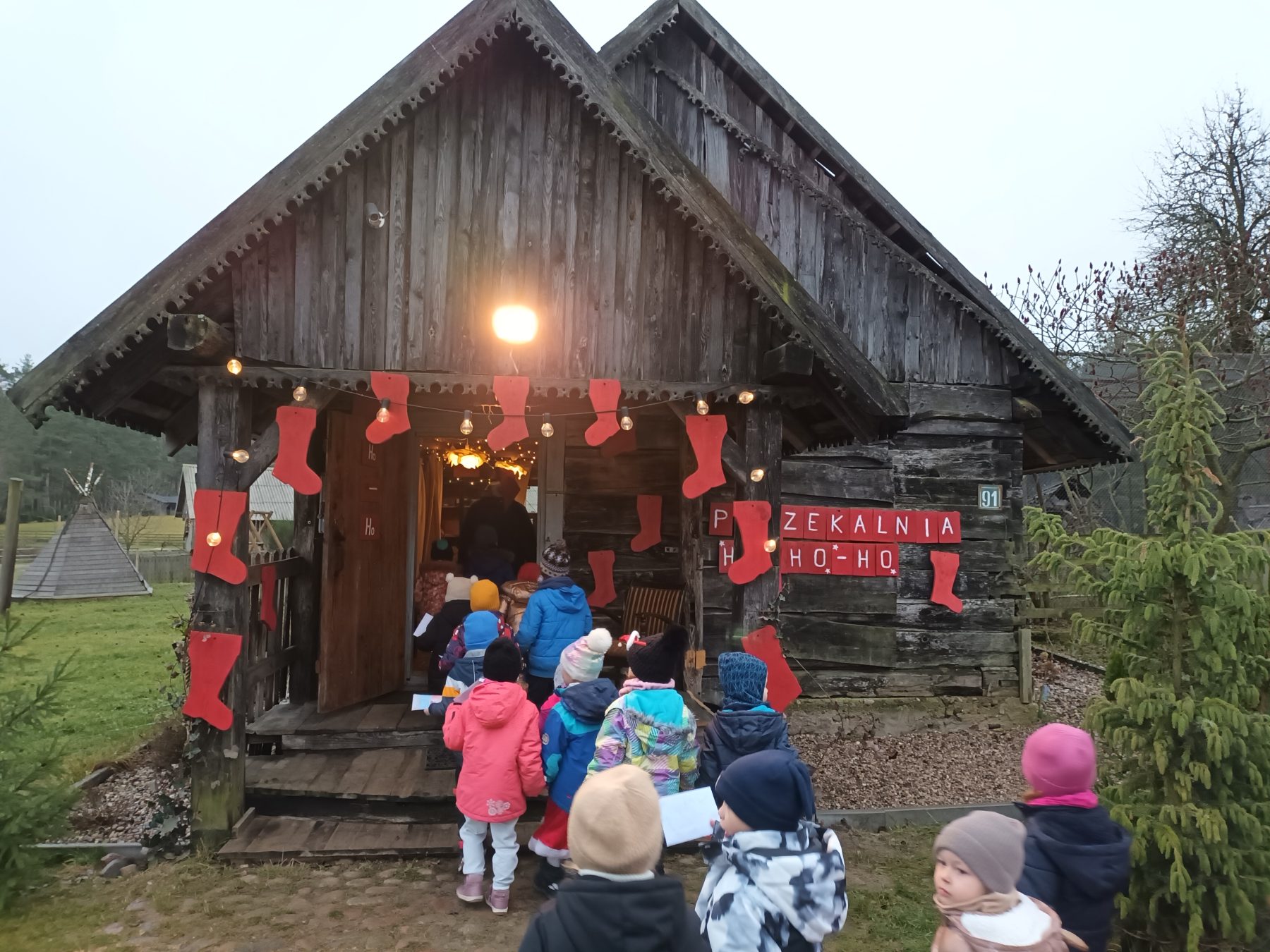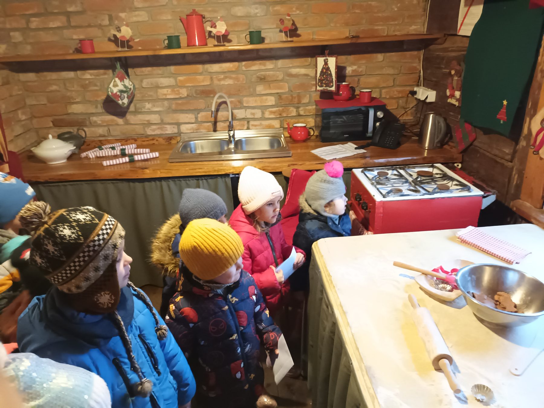 Dzieci z Grupy V odwiedziły Wioskę Świętego Mikołaja. Była to wizyta w Świątecznej Krainie pełnej niespodzianek w „Majątku Howieny” w Pomigaczach koło Białegostoku gdzie czekały na przedszkolaki wyjątkowe atrakcje. Spotkanie z Mikołajem w okresie przedświątecznym było dla dzieci dużą niespodzianką. Przedszkolaki mogły narysować listy do Św. Mikołaja, Atrakcją była też wizyta w mikołajowej poczcie. Dzieci odwiedziły też jego chatkę, a sam Mikołaj wręczył dzieciom certyfikaty. Dzieci wałkowały tam ciasto i lepiły z niego pierniki, bawiły się z Elfami i odwiedziły żywą szopkę. Podczas odwiedzin w Wiosce Świętego Mikołaja dzieci mogły poczuć magię zbliżających się Świąt! W programie czekało na dzieci wiele atrakcji, w tym warsztaty z Elfami oraz czas spędzony z Mikołajem. Możliwość zwiedzenia jego chaty oraz wizyta w Świątecznej Krainie pełnej niespodzianek!