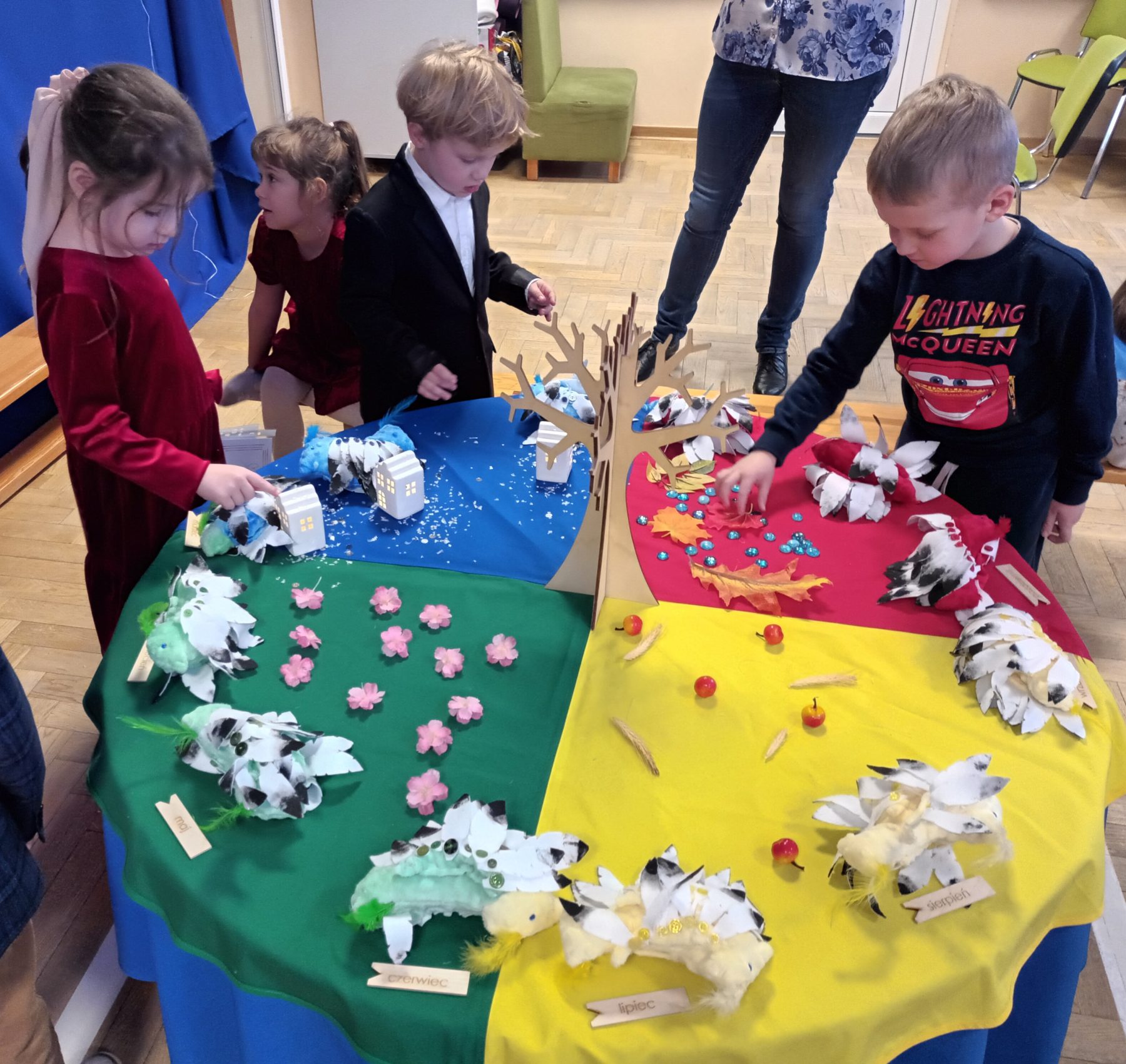 Spotkania z dziadkami są najczęściej pełne uśmiechów, wspomnień i wzruszeń. Wspólnie spędzany czas może obejmować rozmowy, czytanie ulubionych książek, gotowanie wspólnych posiłków, spacerowanie po parku, granie w gry planszowe, a nawet wyprawę do ulubionego miejsca dziadków – teatru, kina czy muzeum. Dzień Babci i Dzień Dziadka w Polsce to doskonała okazja, aby dzielić się z dziadkami radością i miłością. Każda chwila spędzona z nimi jest niezwykle cenna. Dziadkowie mają ogromne doświadczenie życiowe i mądrość, którą mogą przekazać swoim wnukom. Dla wnuków natomiast, to czas na tworzenie pięknych wspomnień, budowanie i umacnianie więzi rodzinnych oraz czerpanie nauki z doświadczenia od swoich starszych bliskich. W Dzień Babci i Dzień Dziadka nie tylko dajmy naszym najbliższym radość, miłość i wdzięczność, na jaką zasługują, ale też spędzajmy z nimi czas, słuchajmy ich historii, śmiejmy się razem, wspominajmy i cieszmy się obecnością tych niezwykłych osób w naszym życiu. Niech to święto będzie przypomnieniem o tym, jak wiele dziadkowie dla nas znaczą i jak bardzo ich kochamy. Chcąc podziękować im za poświęcony czas, wspólne zabawy, spacery, rozmowy, dzieci z Grupy V przygotowały i zaprezentowały Opowieść montessoriańską pt. ,, Staruszek czas’’ w której 12 ptaków symbolizuje 12 miesięcy i zmiany zachodzące w 4 porach roku.