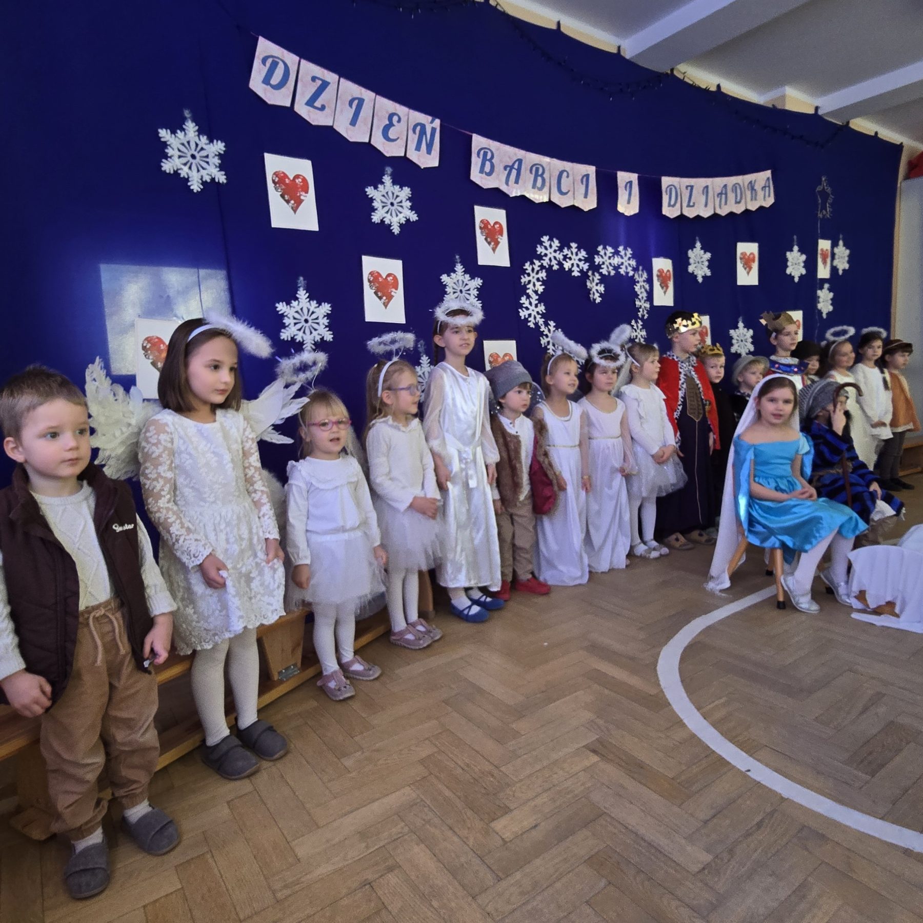 Z okazji Dnia Babci i Dziadka w naszym przedszkolu odbyło się wyjątkowe spotkanie z udziałem Babć i Dziadków. Uroczystość rozpoczęła się przedstawieniem jasełek, które – mimo że odbyły się już po świętach – były pięknym przypomnieniem bożonarodzeniowej atmosfery, pełnej radości, ciepła i wzajemnej życzliwości.