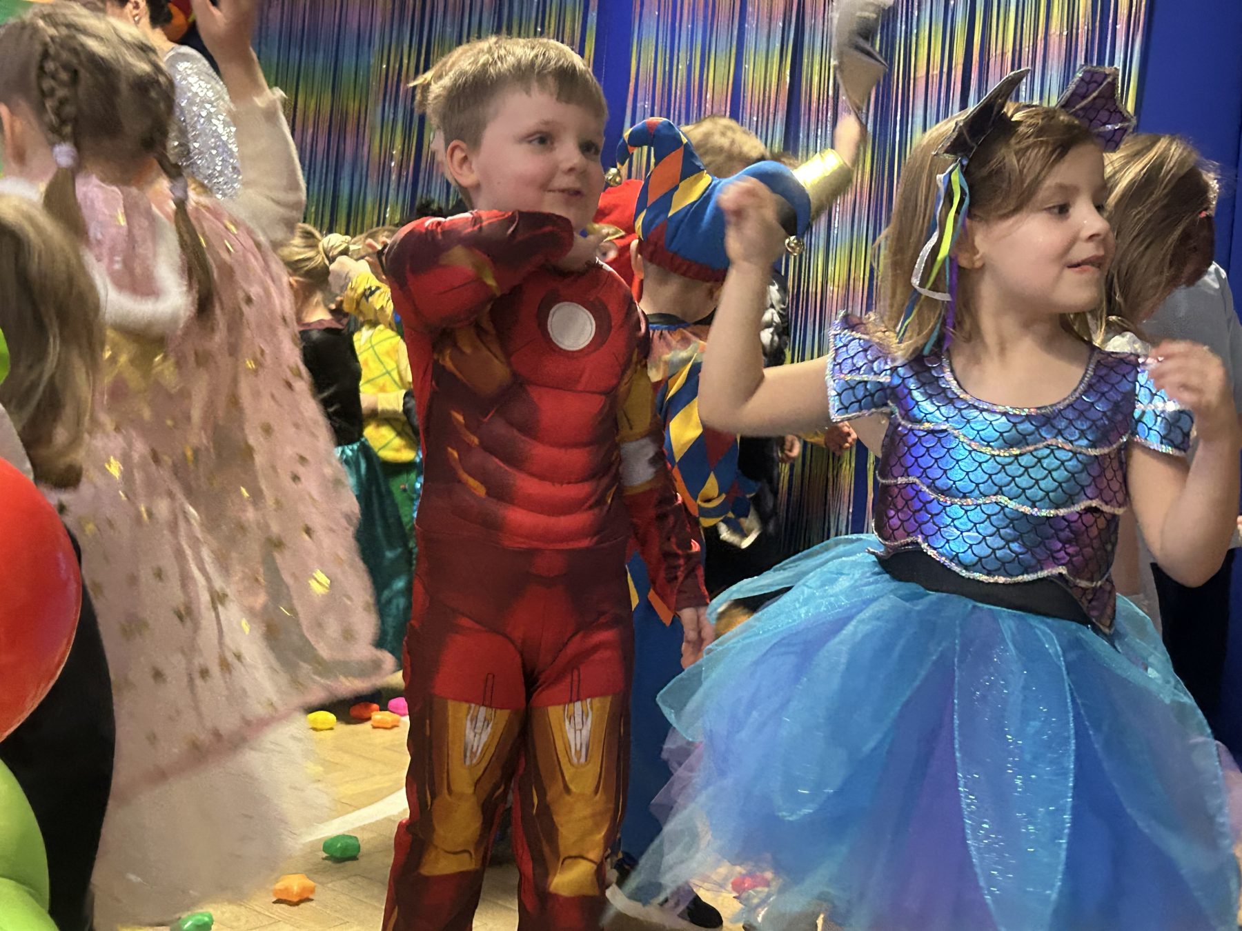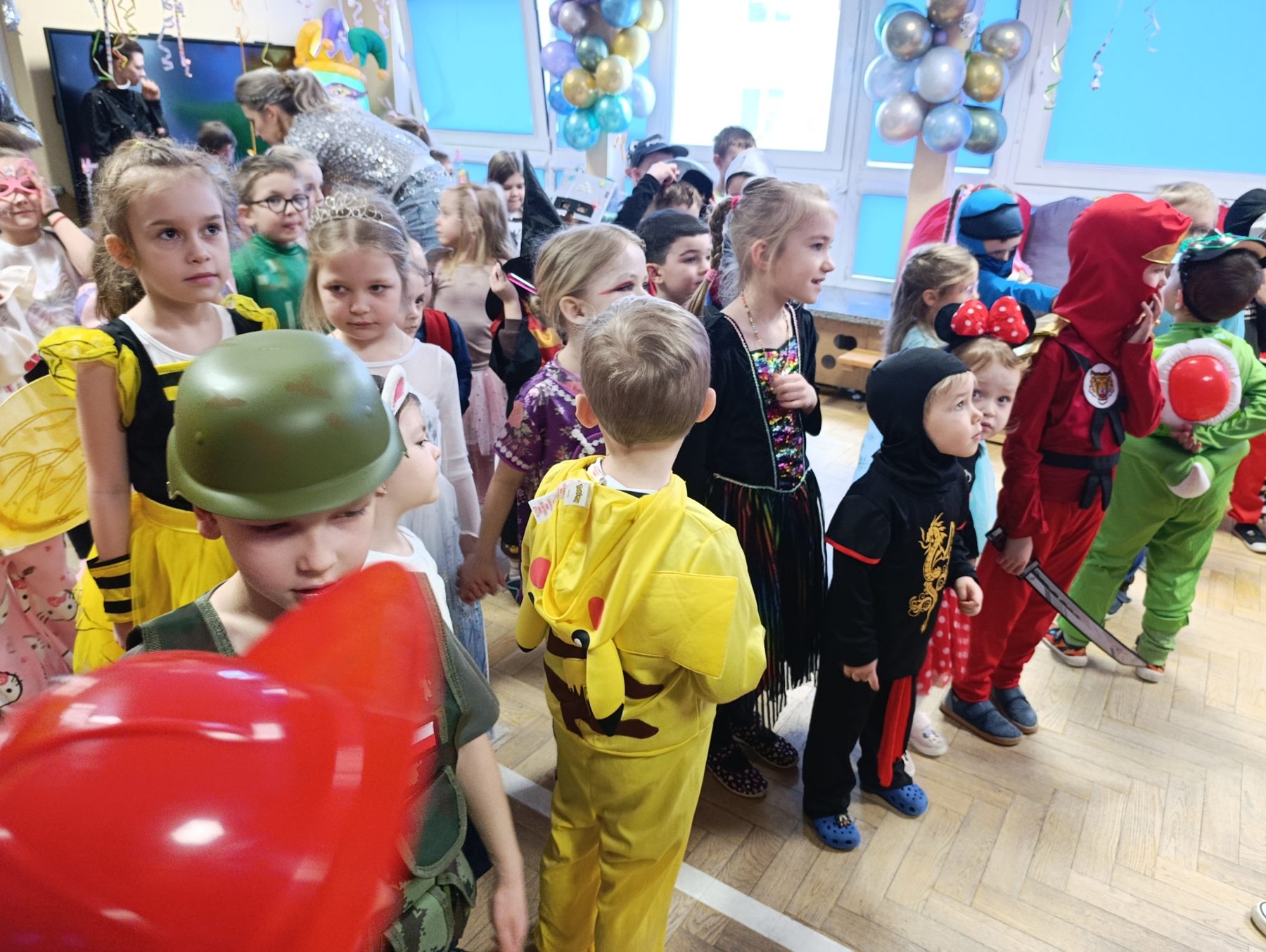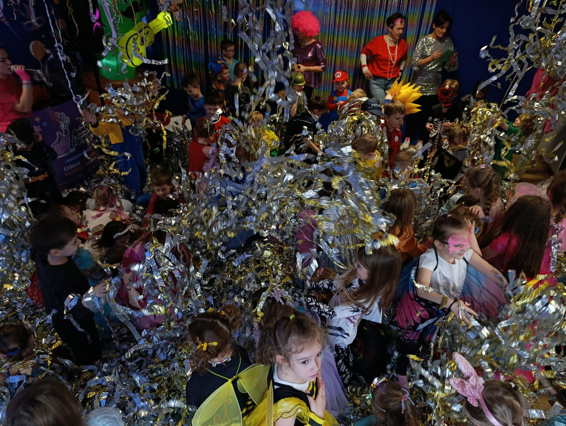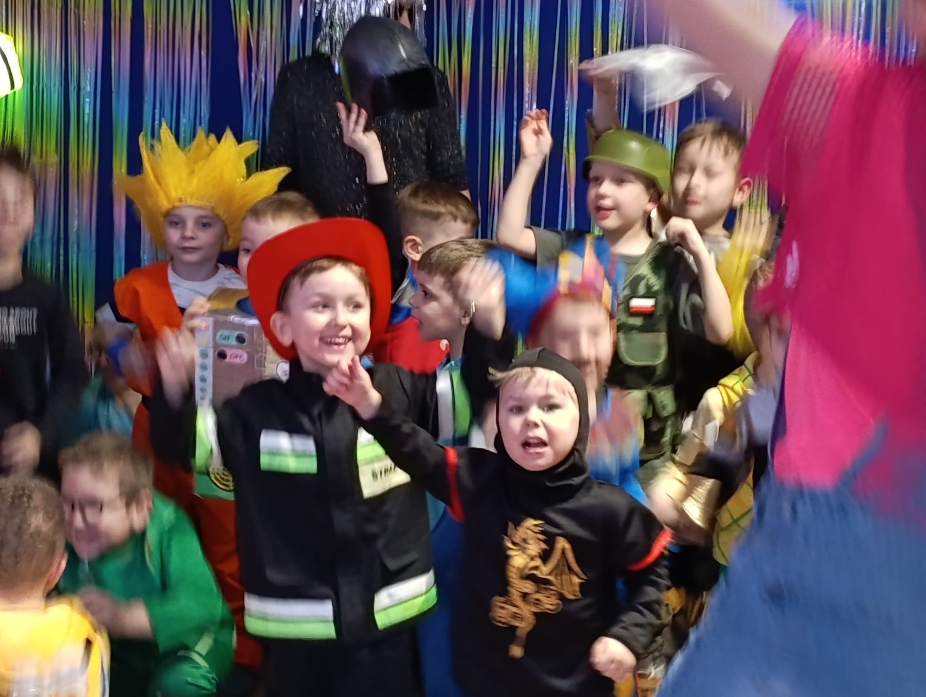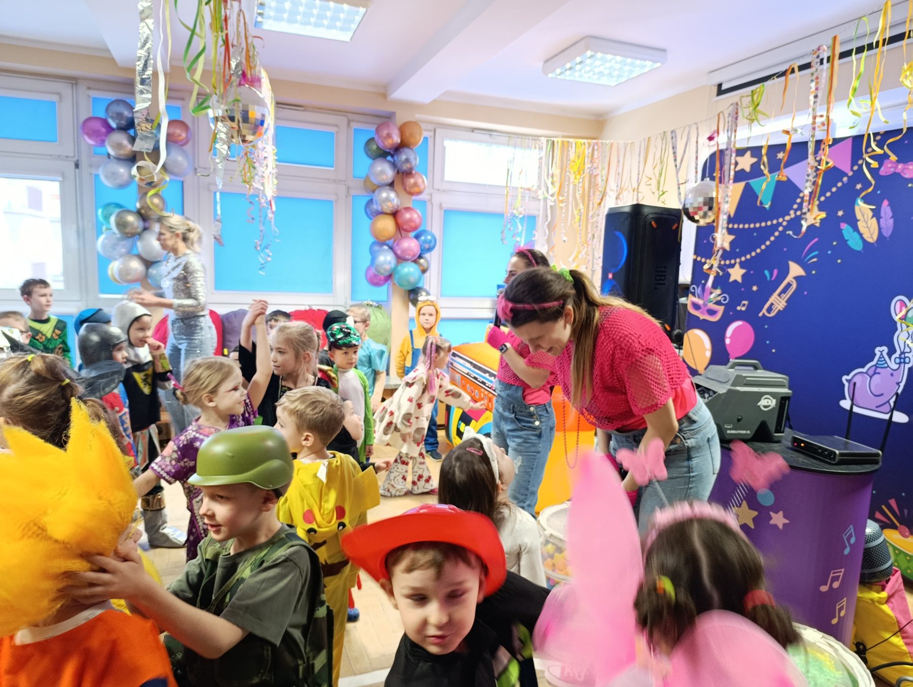 Bal karnawałowy w naszym przedszkolu to prawdziwa feeria kolorów, muzyki i dziecięcej radości! Tego wyjątkowego dnia sale zamieniają się w bajkową krainę pełną księżniczek, superbohaterów, zwierzątek i magicznych postaci. Przy dźwiękach wesołej muzyki dzieci tańczą, śmieją się i biorą udział w radosnych konkursach oraz zabawach ruchowych. W powietrzu wirują kolorowe serpentyny, konfetti i balony, tworząc atmosferę prawdziwej karnawałowej magii. To czas beztroskiej zabawy, rozwijania wyobraźni i wspólnego świętowania, który na długo pozostaje w dziecięcych wspomnieniach.