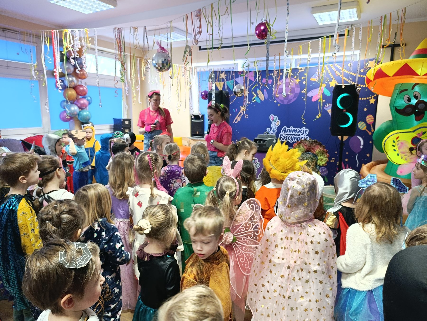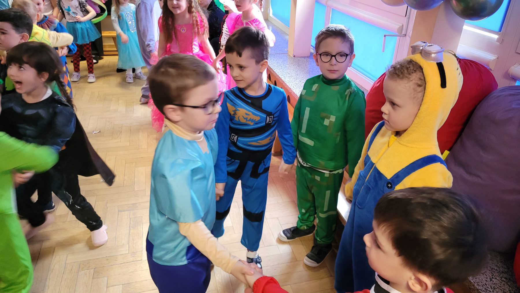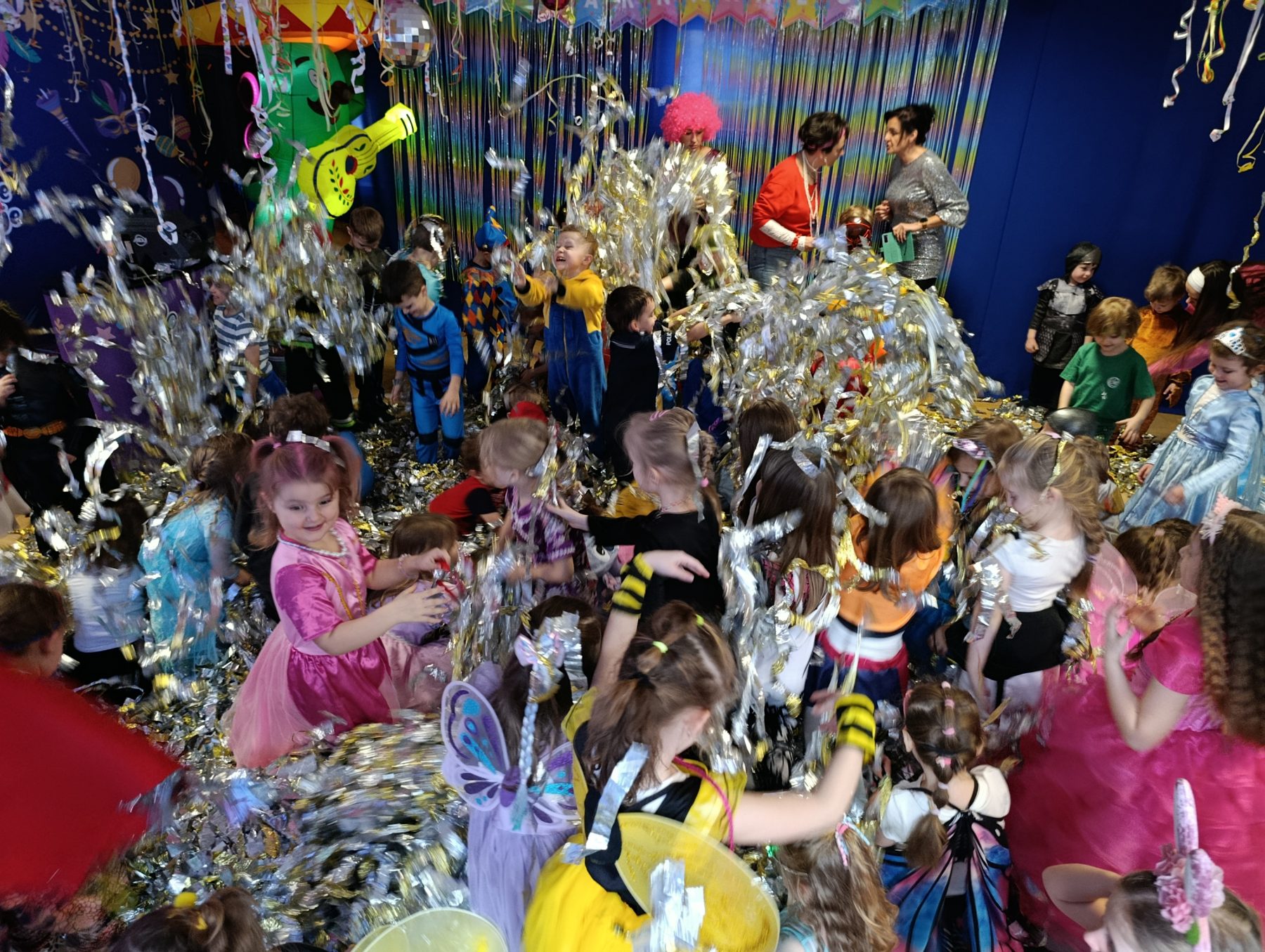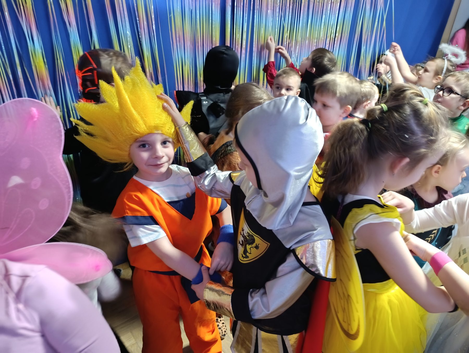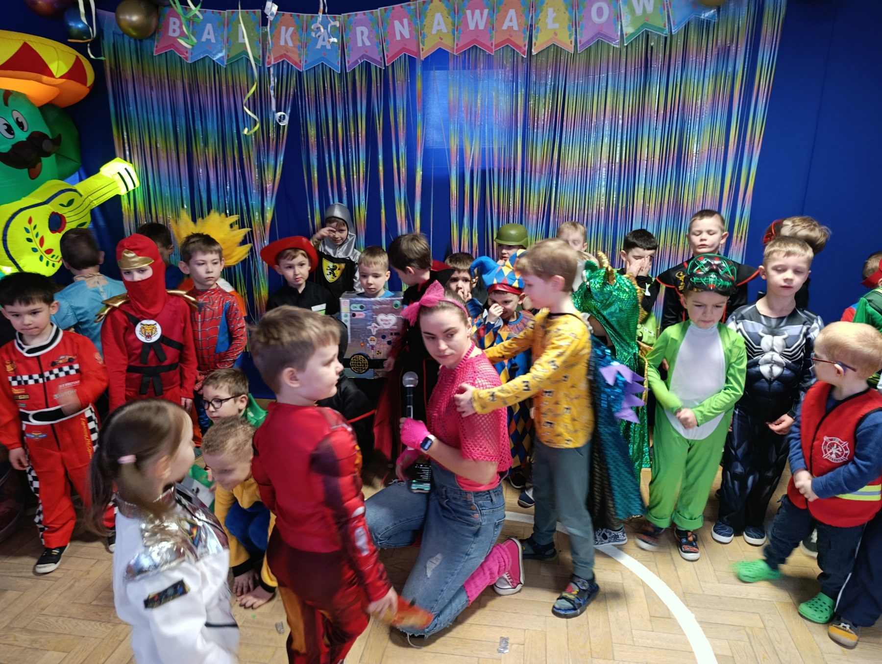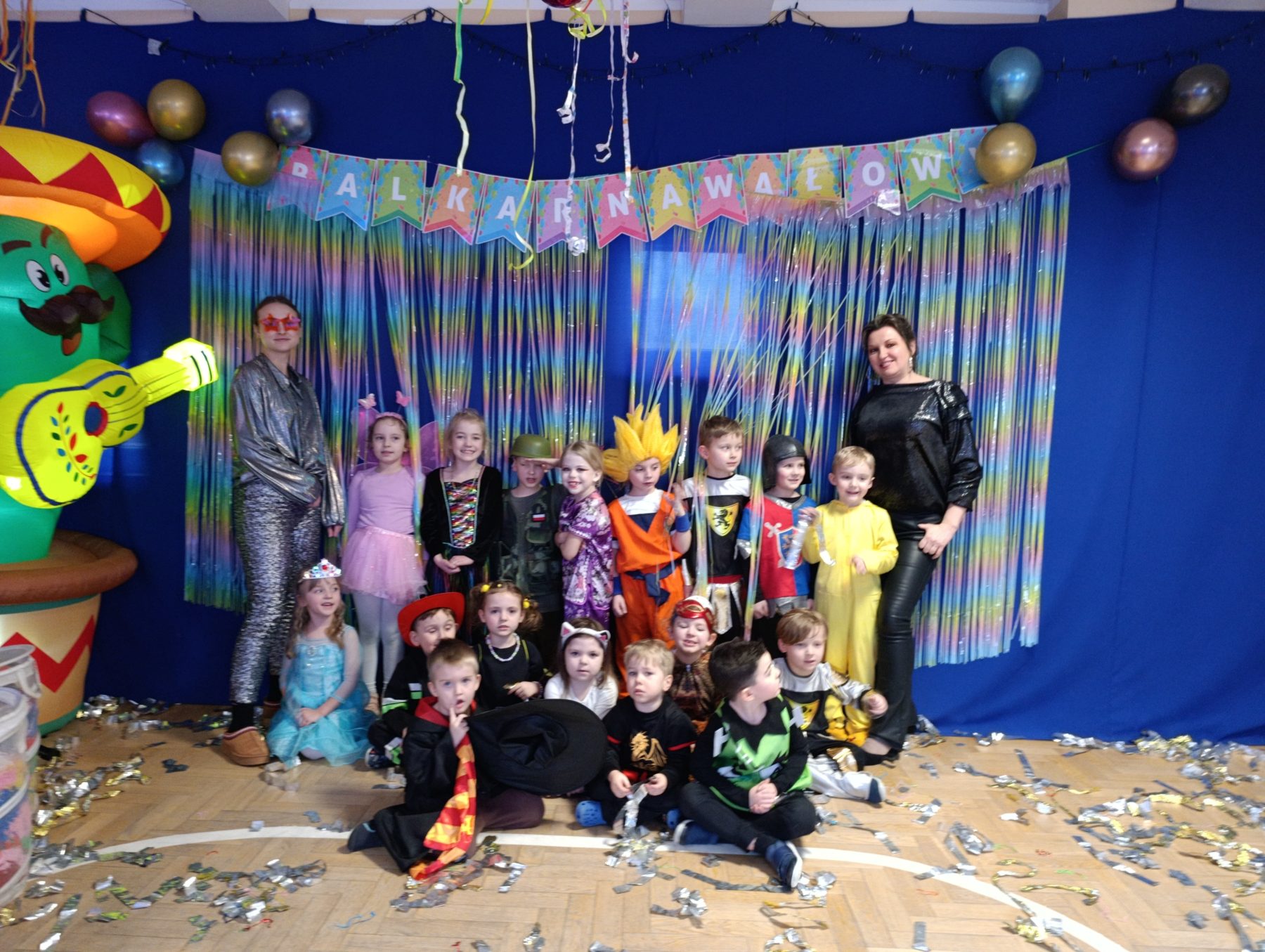 Bal karnawałowy w naszym przedszkolu to prawdziwa feeria kolorów, muzyki i dziecięcej radości! Tego wyjątkowego dnia sale zamieniają się w bajkową krainę pełną księżniczek, superbohaterów, zwierzątek i magicznych postaci. Przy dźwiękach wesołej muzyki dzieci tańczą, śmieją się i biorą udział w radosnych konkursach oraz zabawach ruchowych. W powietrzu wirują kolorowe serpentyny, konfetti i balony, tworząc atmosferę prawdziwej karnawałowej magii. To czas beztroskiej zabawy, rozwijania wyobraźni i wspólnego świętowania, który na długo pozostaje w dziecięcych wspomnieniach.