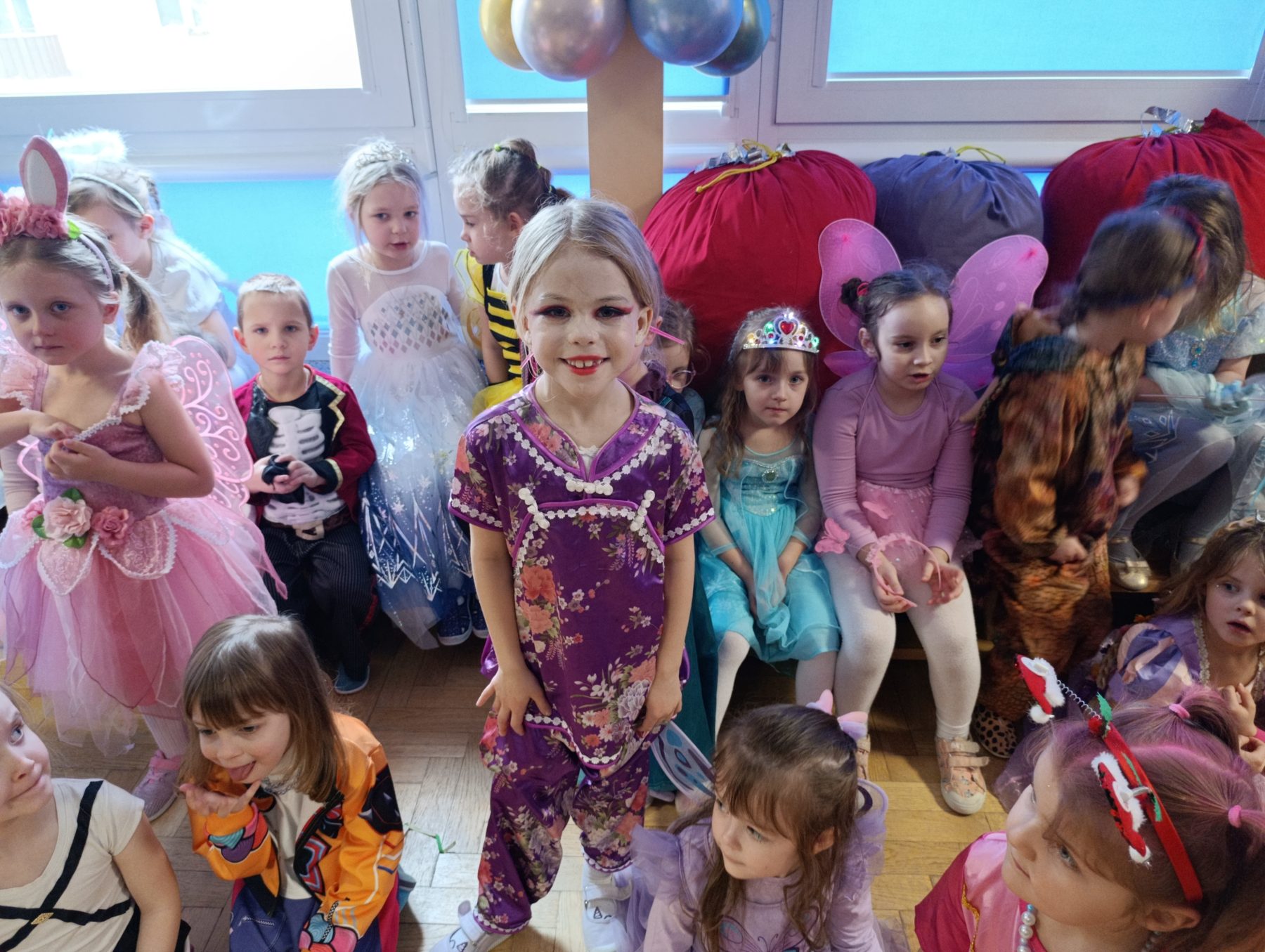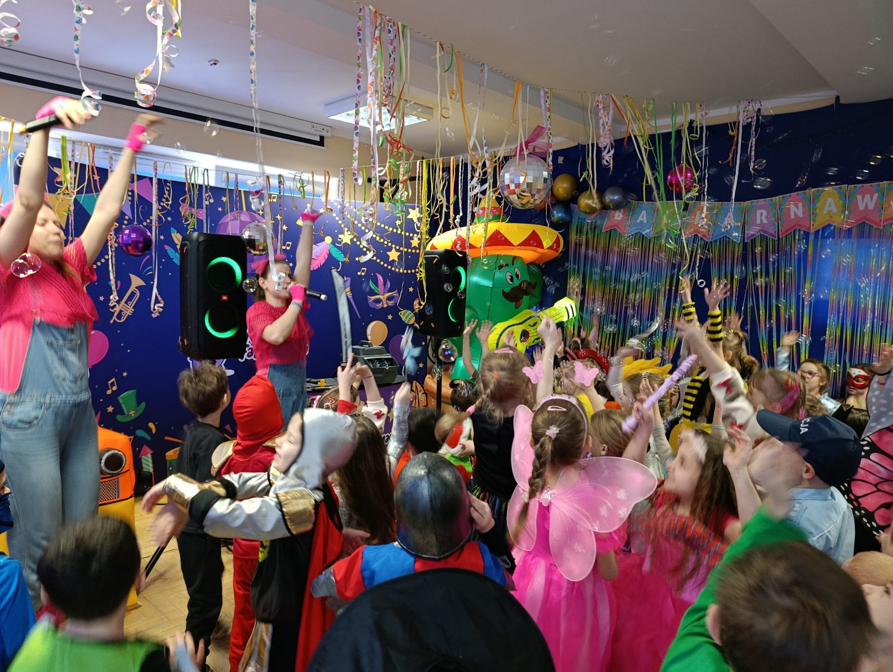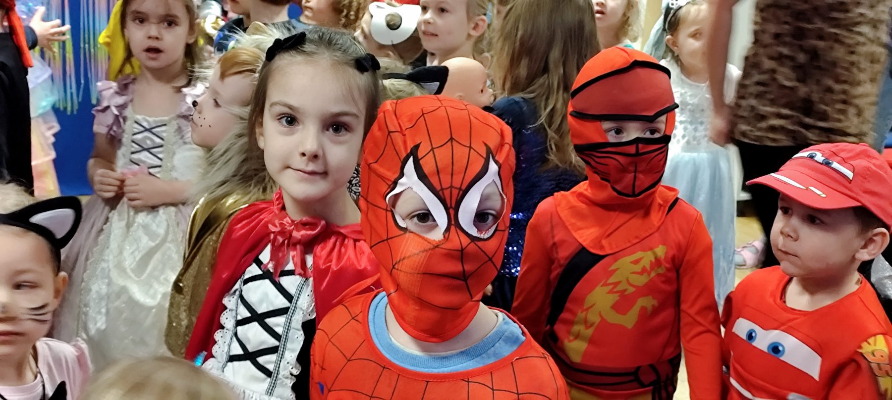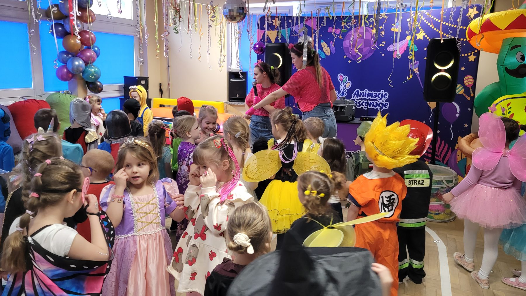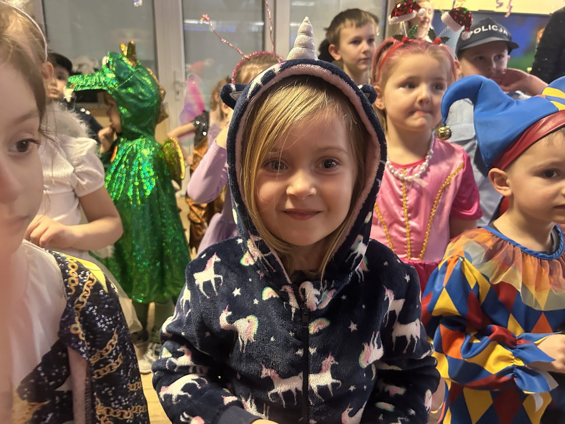 Bal karnawałowy w naszym przedszkolu to prawdziwa feeria kolorów, muzyki i dziecięcej radości! Tego wyjątkowego dnia sale zamieniają się w bajkową krainę pełną księżniczek, superbohaterów, zwierzątek i magicznych postaci. Przy dźwiękach wesołej muzyki dzieci tańczą, śmieją się i biorą udział w radosnych konkursach oraz zabawach ruchowych. W powietrzu wirują kolorowe serpentyny, konfetti i balony, tworząc atmosferę prawdziwej karnawałowej magii. To czas beztroskiej zabawy, rozwijania wyobraźni i wspólnego świętowania, który na długo pozostaje w dziecięcych wspomnieniach.