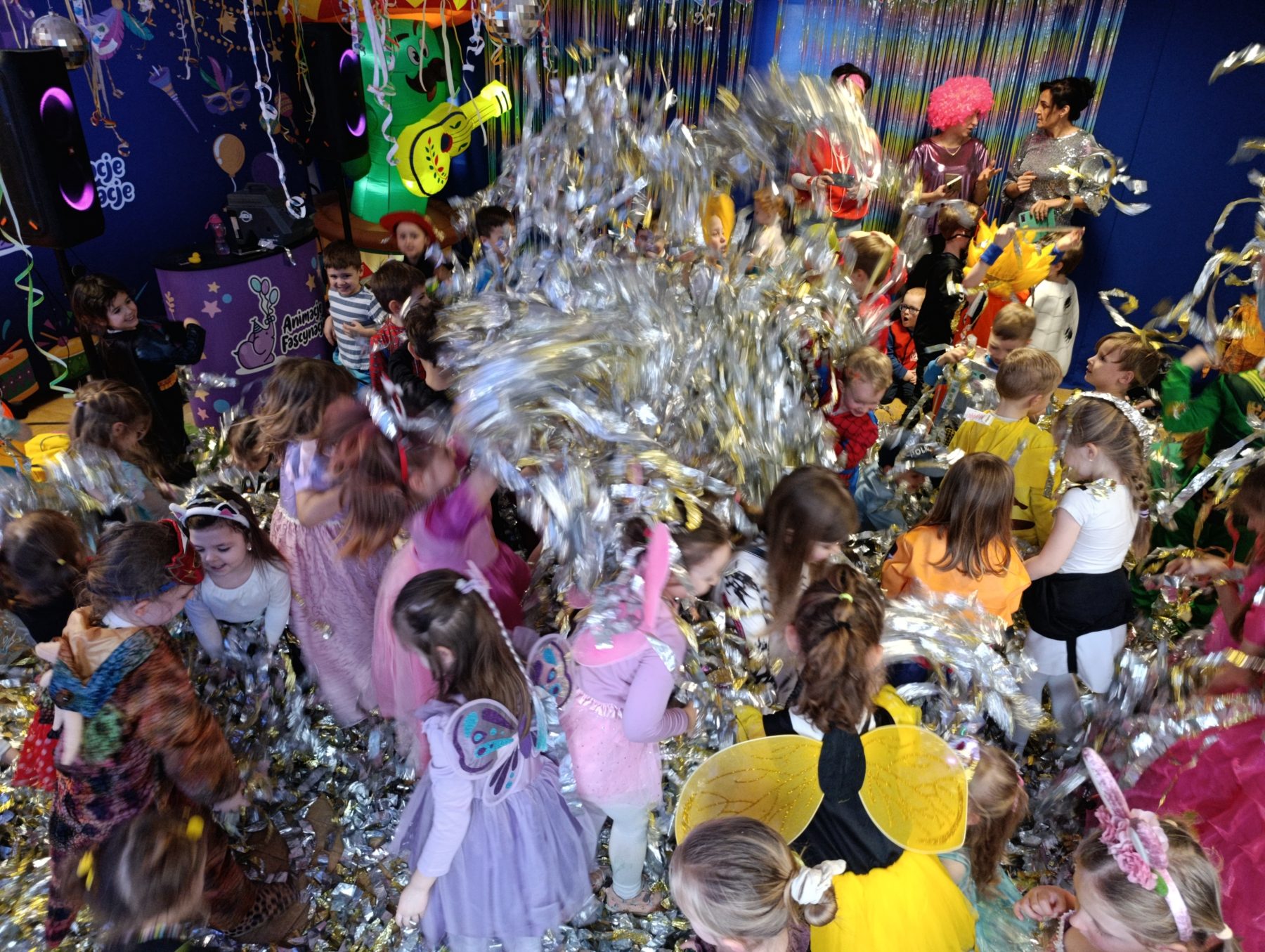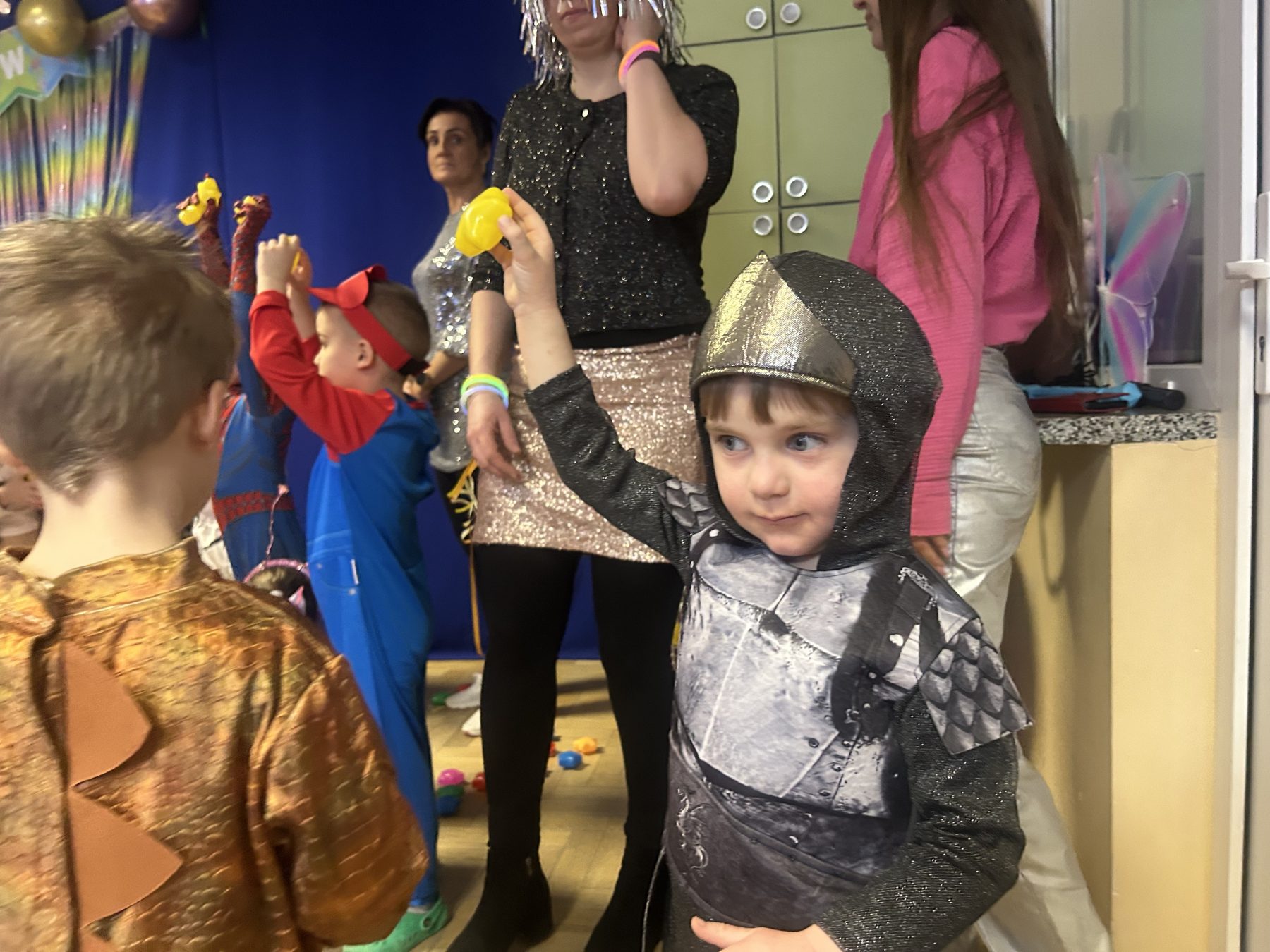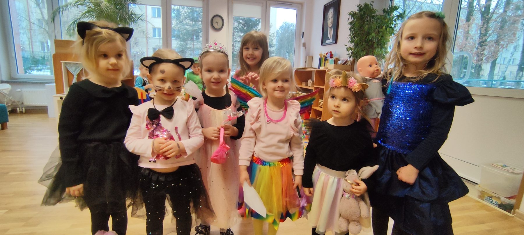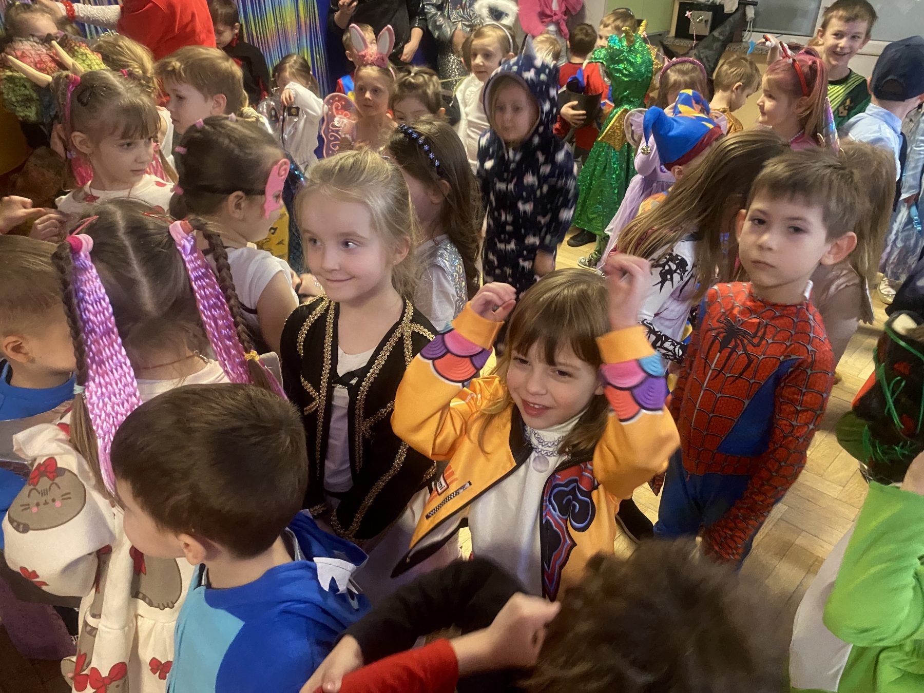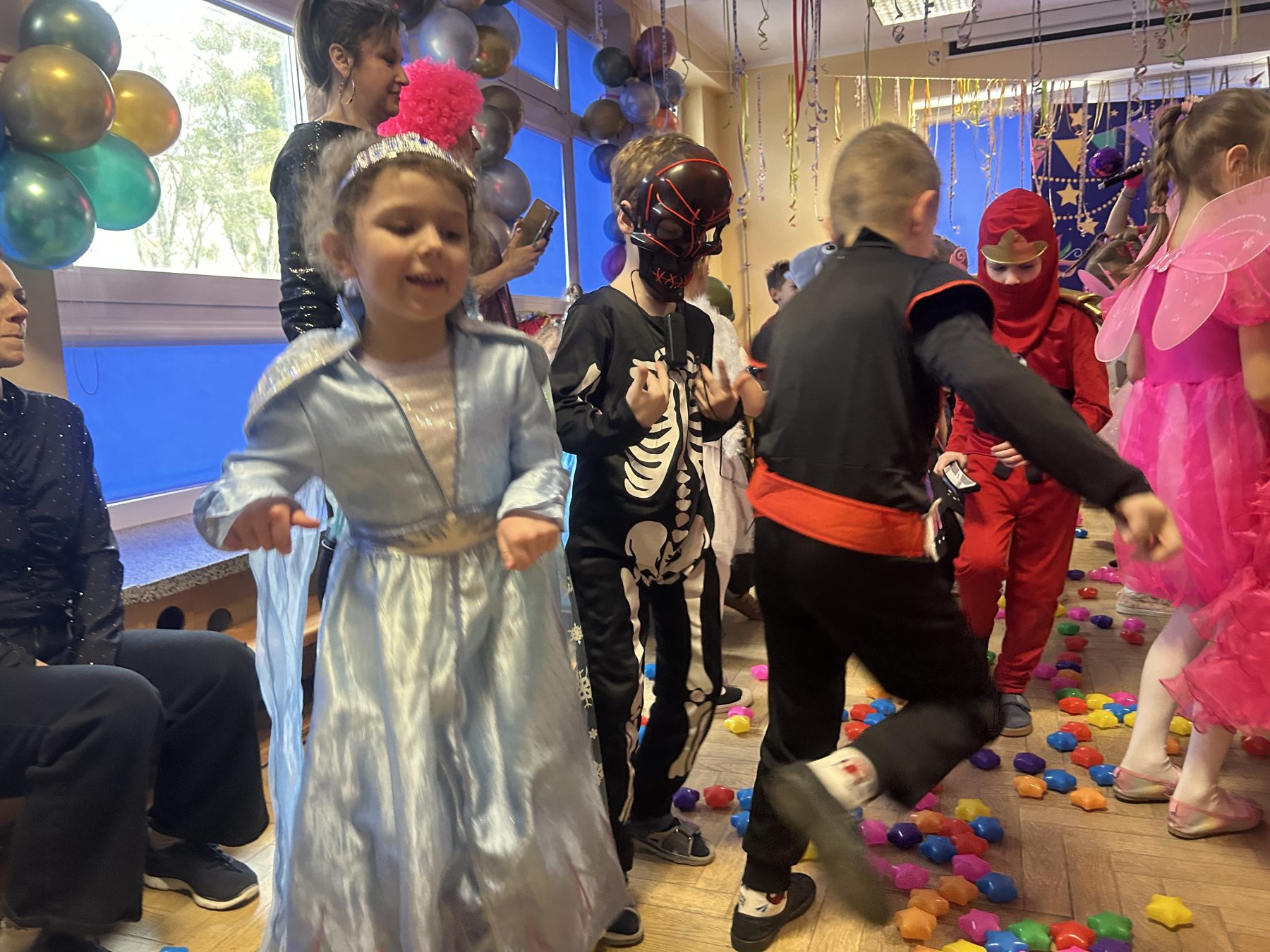 Bal karnawałowy w naszym przedszkolu to prawdziwa feeria kolorów, muzyki i dziecięcej radości! Tego wyjątkowego dnia sale zamieniają się w bajkową krainę pełną księżniczek, superbohaterów, zwierzątek i magicznych postaci. Przy dźwiękach wesołej muzyki dzieci tańczą, śmieją się i biorą udział w radosnych konkursach oraz zabawach ruchowych. W powietrzu wirują kolorowe serpentyny, konfetti i balony, tworząc atmosferę prawdziwej karnawałowej magii. To czas beztroskiej zabawy, rozwijania wyobraźni i wspólnego świętowania, który na długo pozostaje w dziecięcych wspomnieniach.