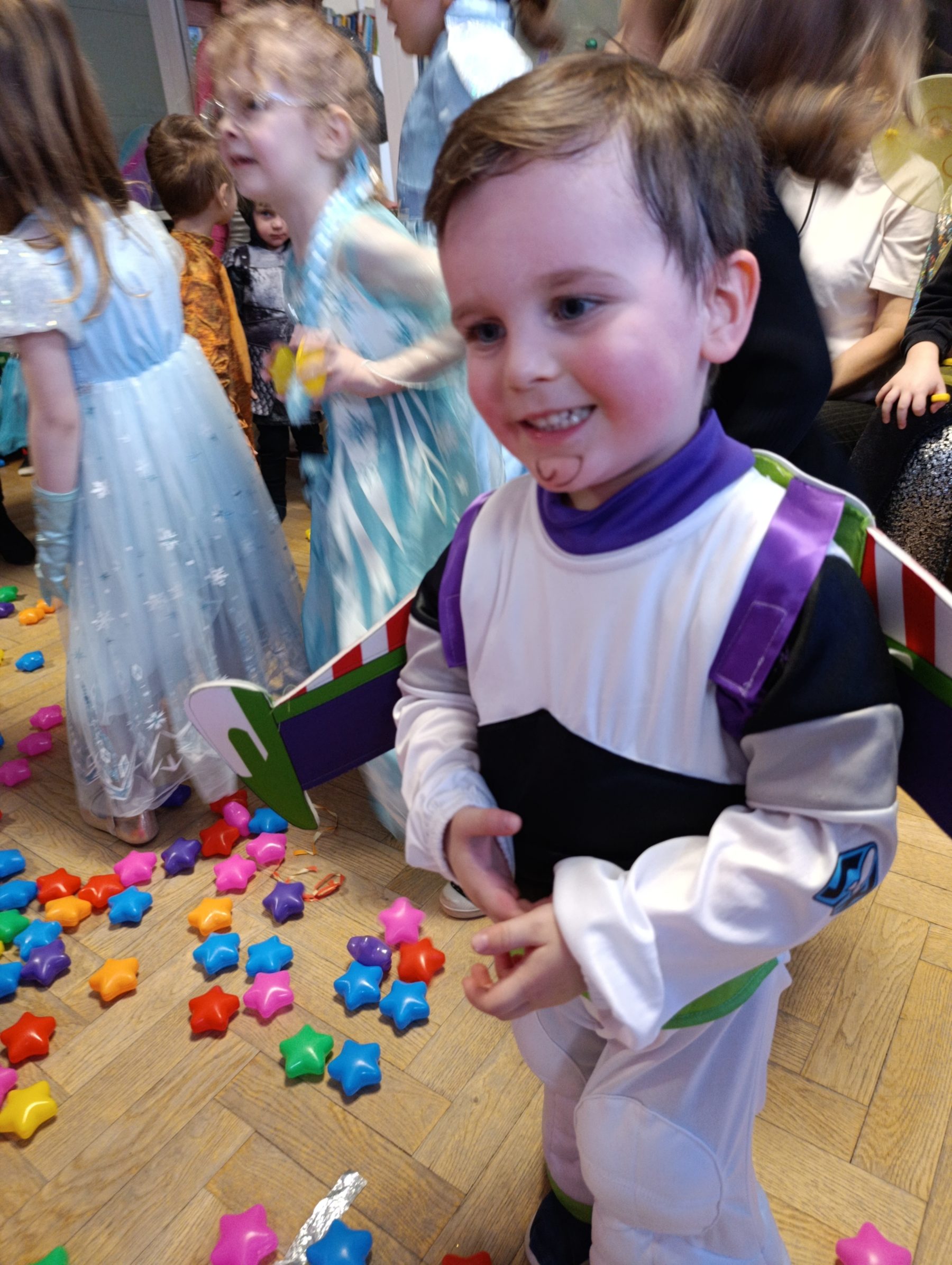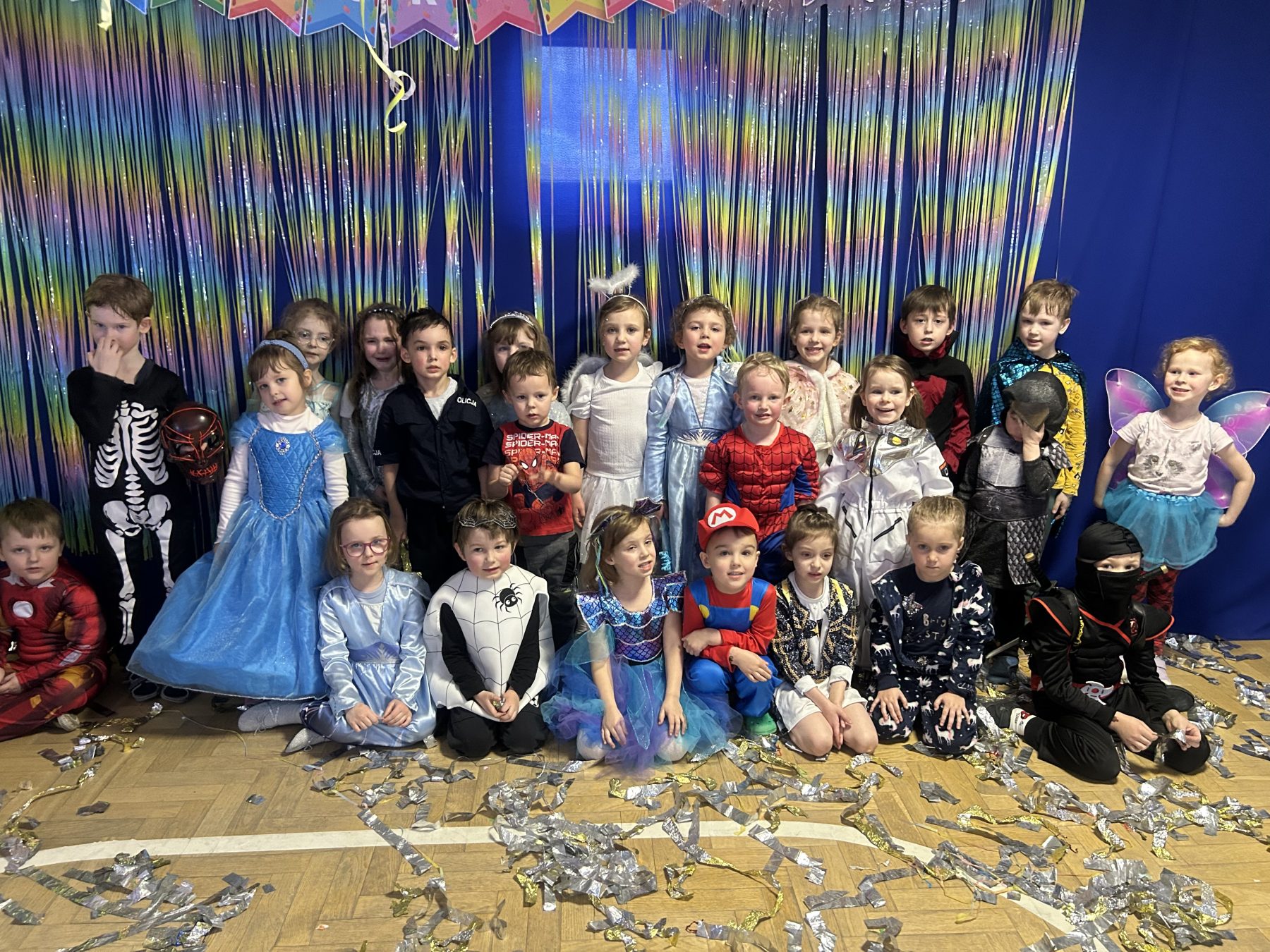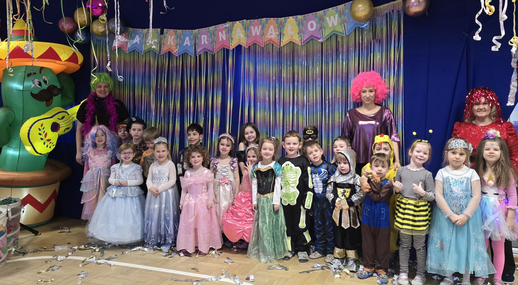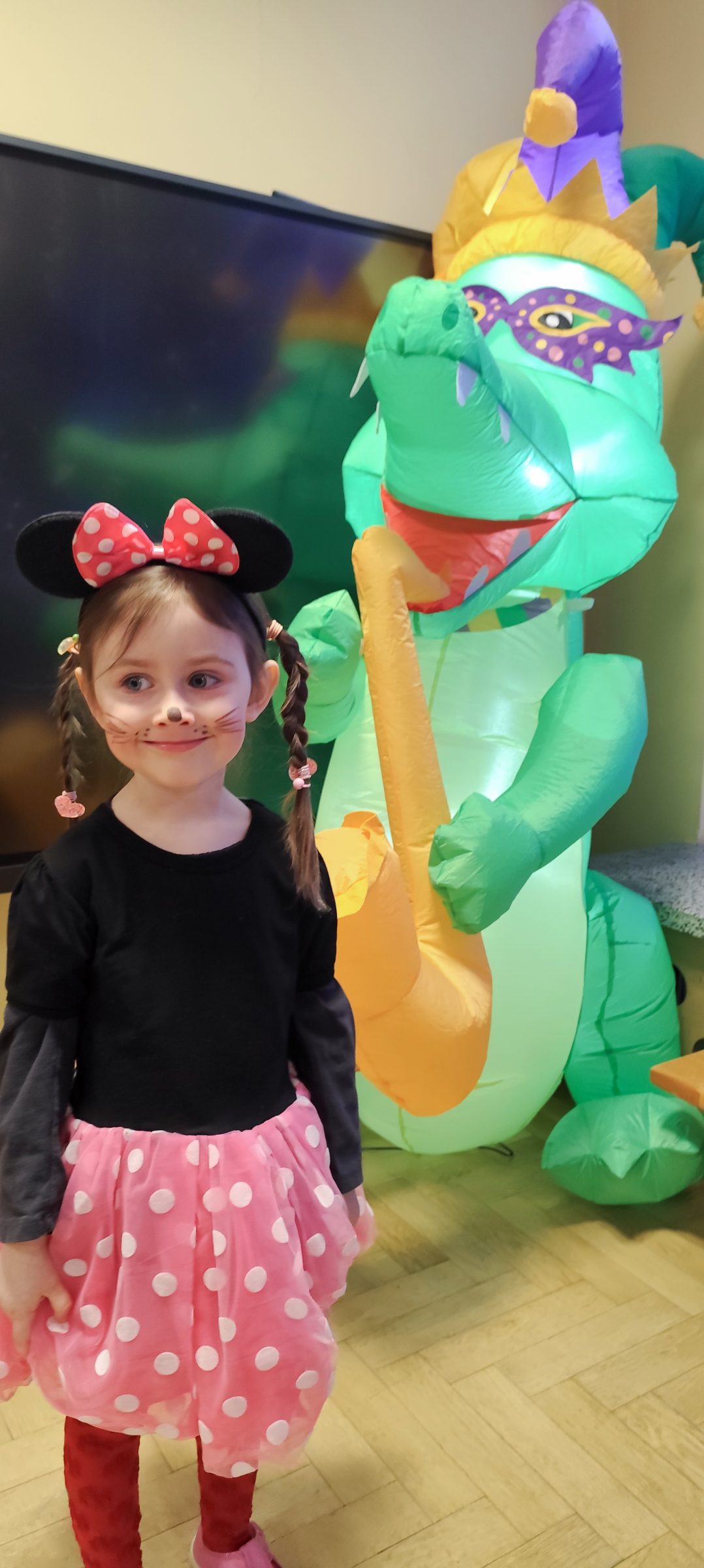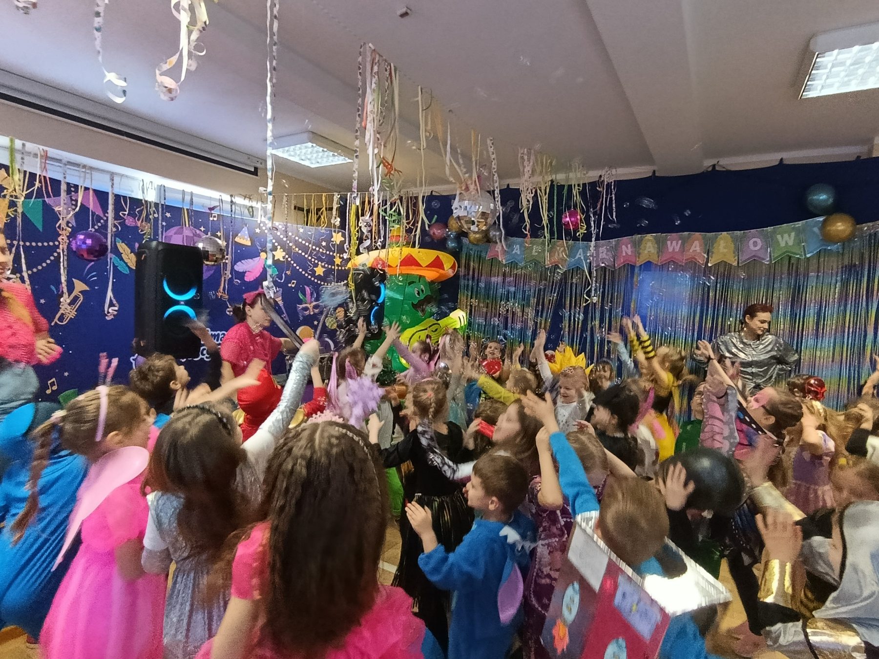 Bal karnawałowy w naszym przedszkolu to prawdziwa feeria kolorów, muzyki i dziecięcej radości! Tego wyjątkowego dnia sale zamieniają się w bajkową krainę pełną księżniczek, superbohaterów, zwierzątek i magicznych postaci. Przy dźwiękach wesołej muzyki dzieci tańczą, śmieją się i biorą udział w radosnych konkursach oraz zabawach ruchowych. W powietrzu wirują kolorowe serpentyny, konfetti i balony, tworząc atmosferę prawdziwej karnawałowej magii. To czas beztroskiej zabawy, rozwijania wyobraźni i wspólnego świętowania, który na długo pozostaje w dziecięcych wspomnieniach.
