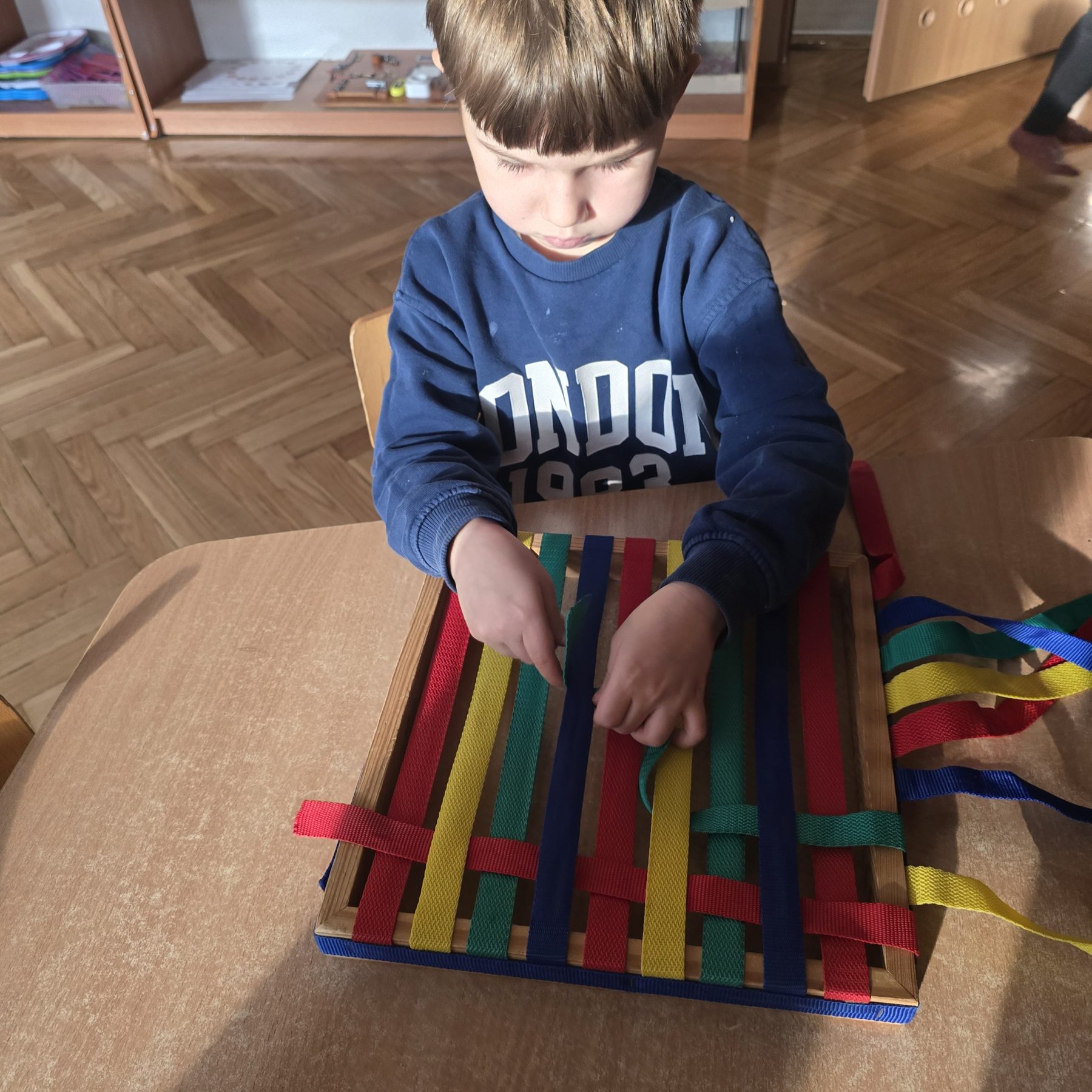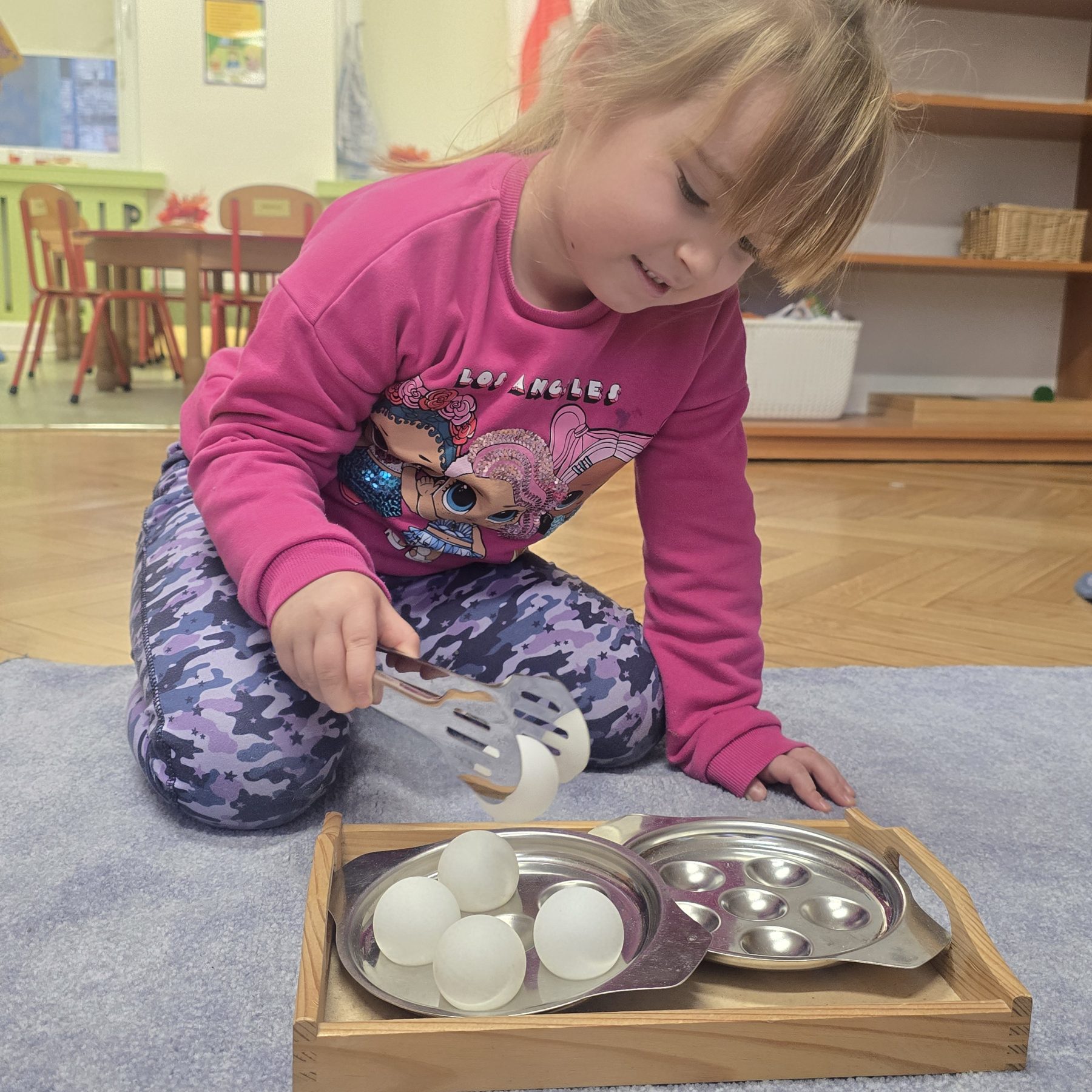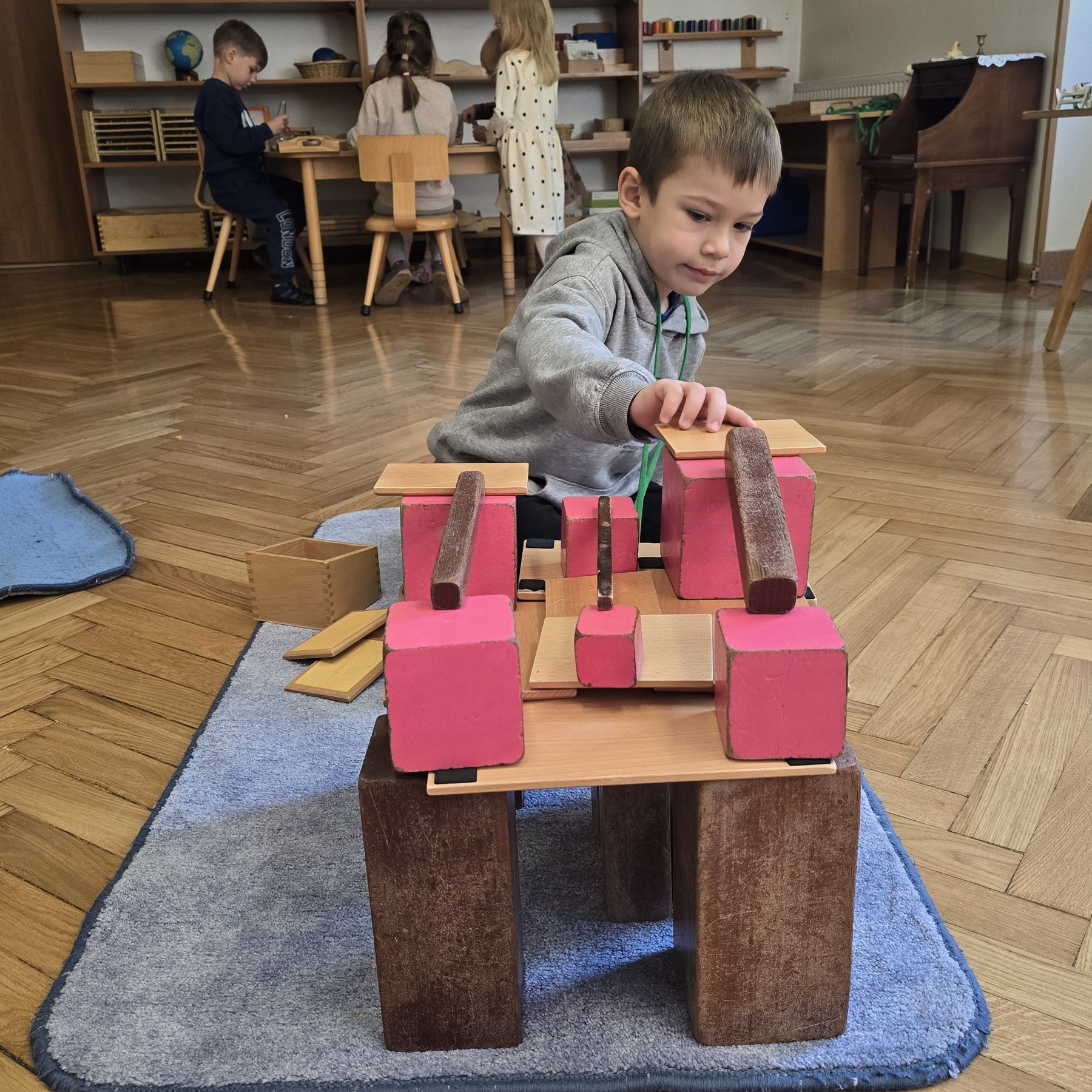 Praca własna to czas, w którym dzieci samodzielnie wybierają materiał i aktywność, pracują w swoim tempie oraz rozwijają zainteresowania zgodnie z indywidualnymi potrzebami. W specjalnie przygotowanym otoczeniu uczą się koncentracji, wytrwałości oraz odpowiedzialności za podjęte zadanie. Dzięki pracy własnej dzieci rozwijają samodzielność, wiarę we własne możliwości oraz wewnętrzną motywację do nauki. Uczą się planowania, podejmowania decyzji i doprowadzania rozpoczętych działań do końca. To fundament budowania pewności siebie, kompetencji społecznych oraz radości z odkrywania świata.
