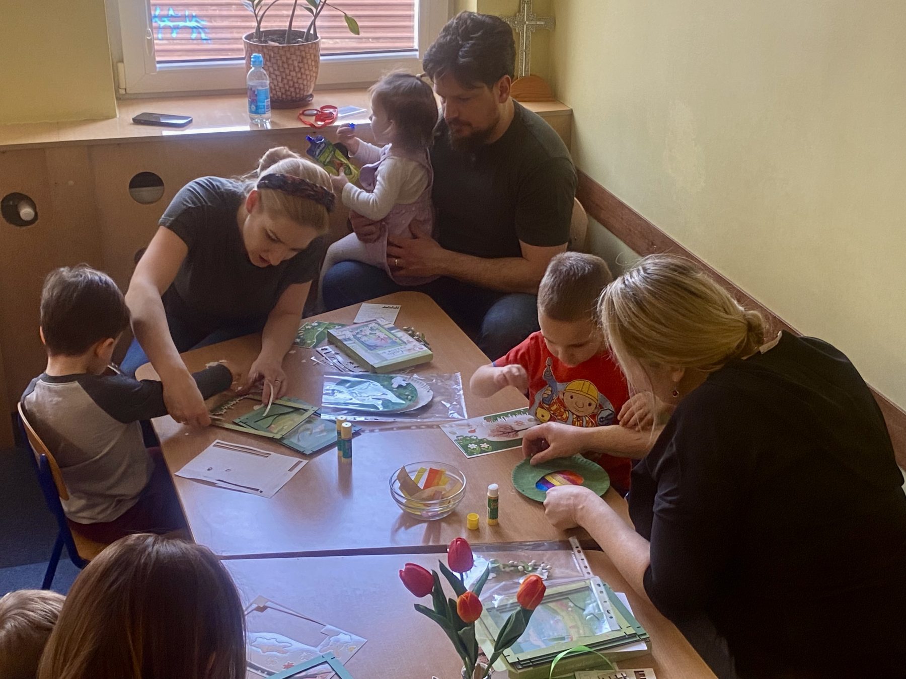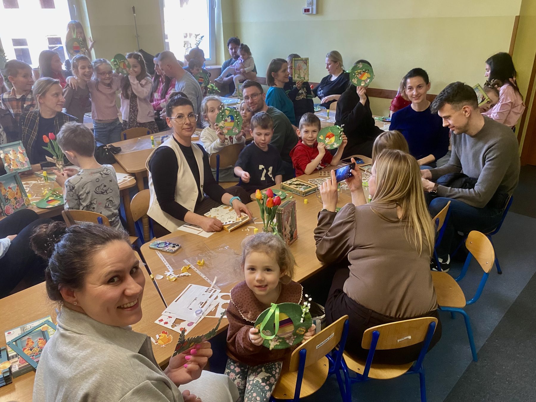 Dnia 17.03.2026 r. odbyły się warsztaty wielkanocne. Podczas spotkania dzieci wspólnie z rodzicami wykonały piękne świąteczne ozdoby. Wspólne działania sprzyjały rozmowom, współpracy a także wzmacnianiu więzi rodzinnych. Na zakończenie wszyscy podziwiali powstałe dzieła, które staną się dekoracją domu oraz pamiątką tego dnia.
