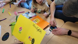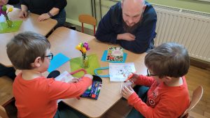 W naszej grupie odbyły się wyjątkowe warsztaty wielkanocne z udziałem rodziców. Spotkanie rozpoczęło się od radosnych występów dzieci, które zaśpiewały piosenki o tematyce wiosennej, wprowadzając wszystkich w ciepły i wiosenny nastrój. Następnie dzieci wraz z rodzicami przystąpiły do wspólnego tworzenia ozdób wielkanocnych. Powstały piękne i kolorowe dekoracje, pełne kreatywności i zaangażowania.