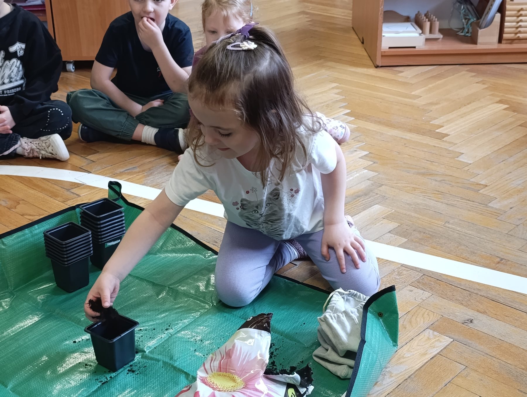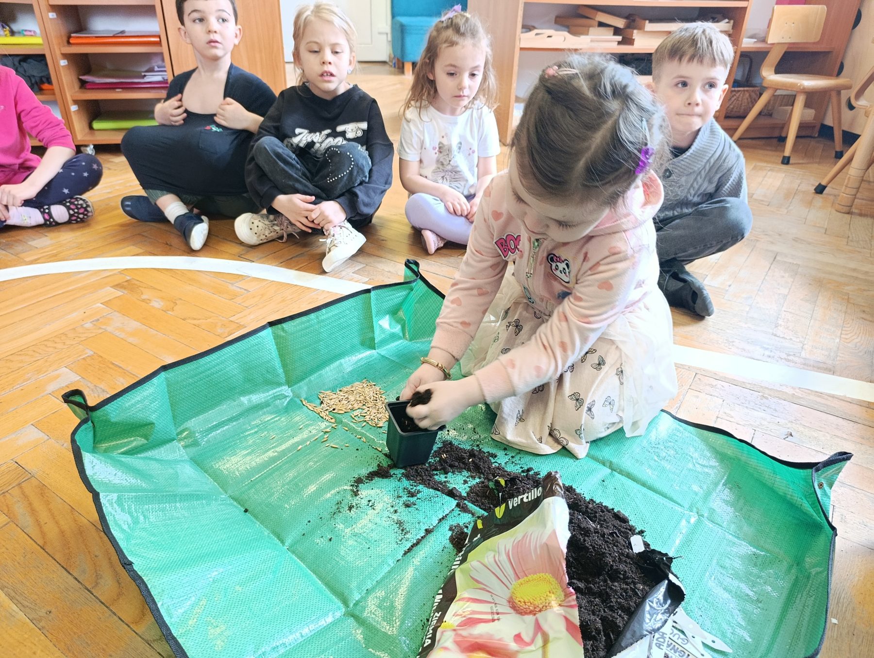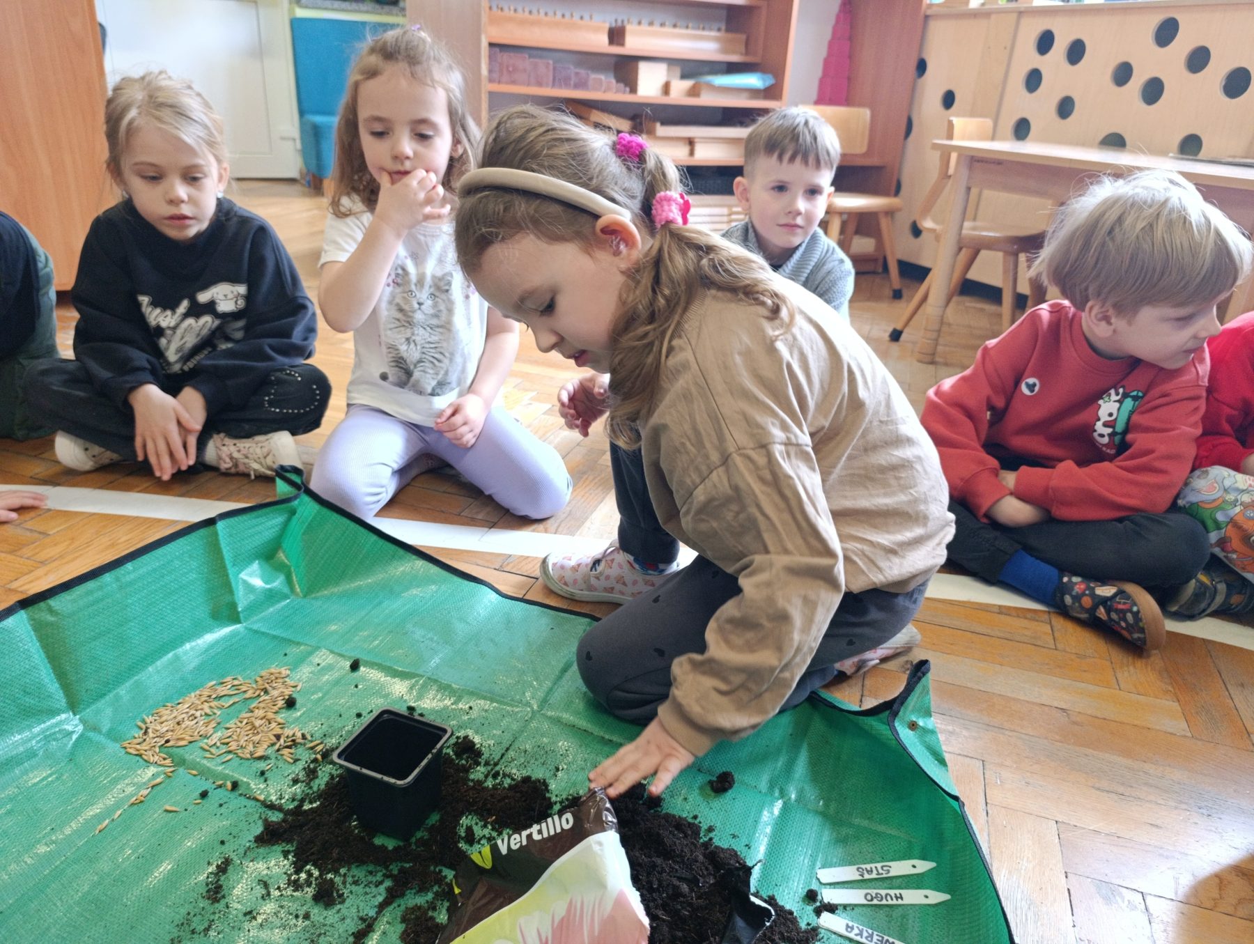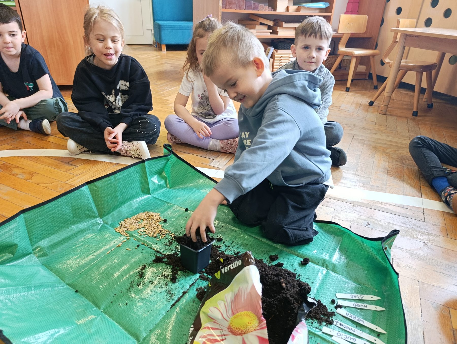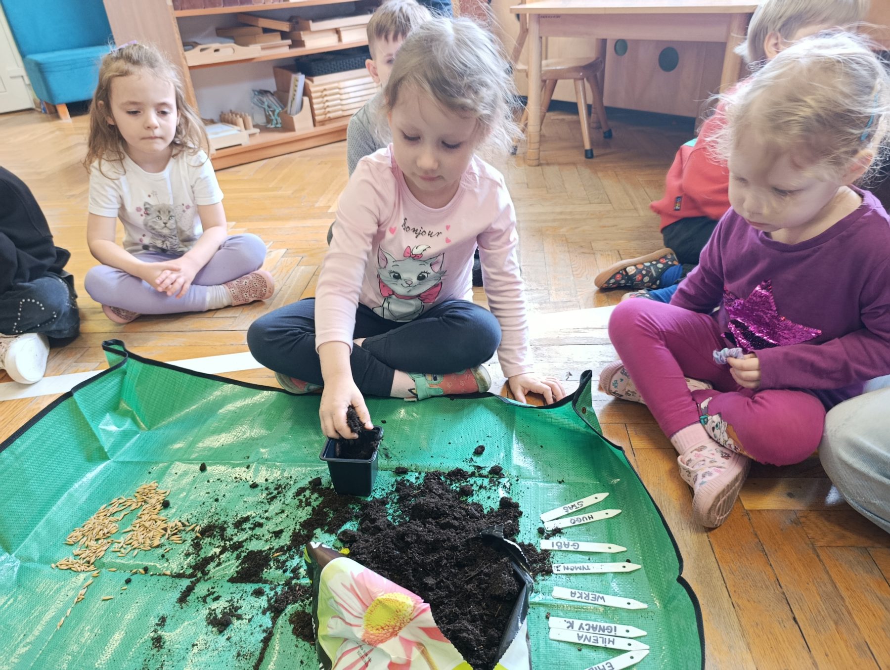 W dniu dzisiejszym w naszym przedszkolu odbyły się zajęcia przyrodnicze, podczas których dzieci miały okazję samodzielnie wysiać owies. Każde dziecko otrzymało swoją doniczkę, ziemię oraz nasiona, dzięki czemu mogło krok po kroku poznać proces sadzenia roślin.