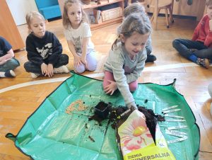 Podczas zajęć przedszkolaki z dużym zaangażowaniem i radością przygotowywały swoje małe uprawy. Była to nie tylko świetna zabawa, ale również cenna lekcja odpowiedzialności i troski o rośliny. Dzieci dowiedziały się, czego potrzebuje roślina do wzrostu oraz jak należy o nią dbać.